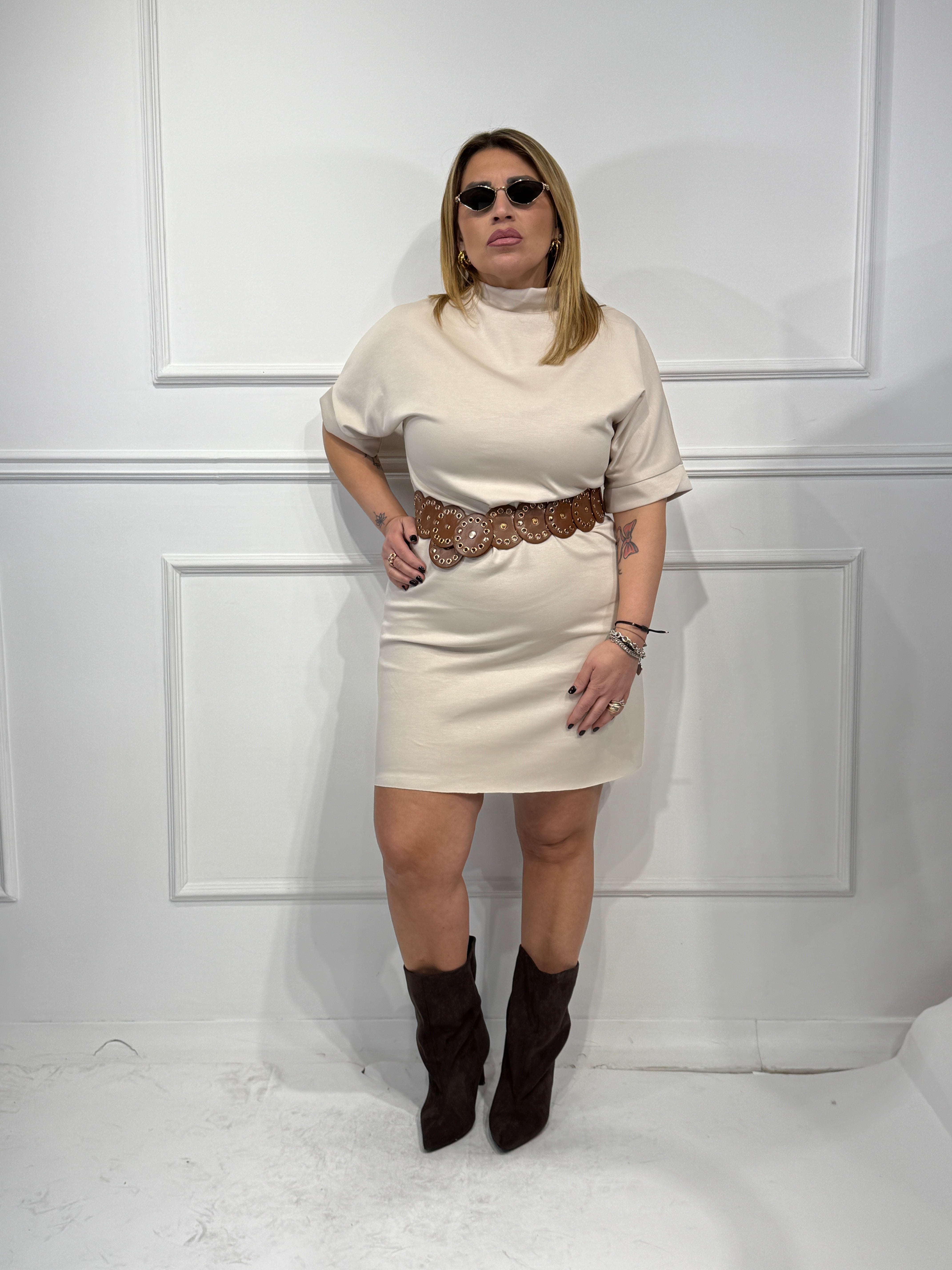 Abitino con citura in vita mezza manica elastico taglia unica veste fino ad una 48