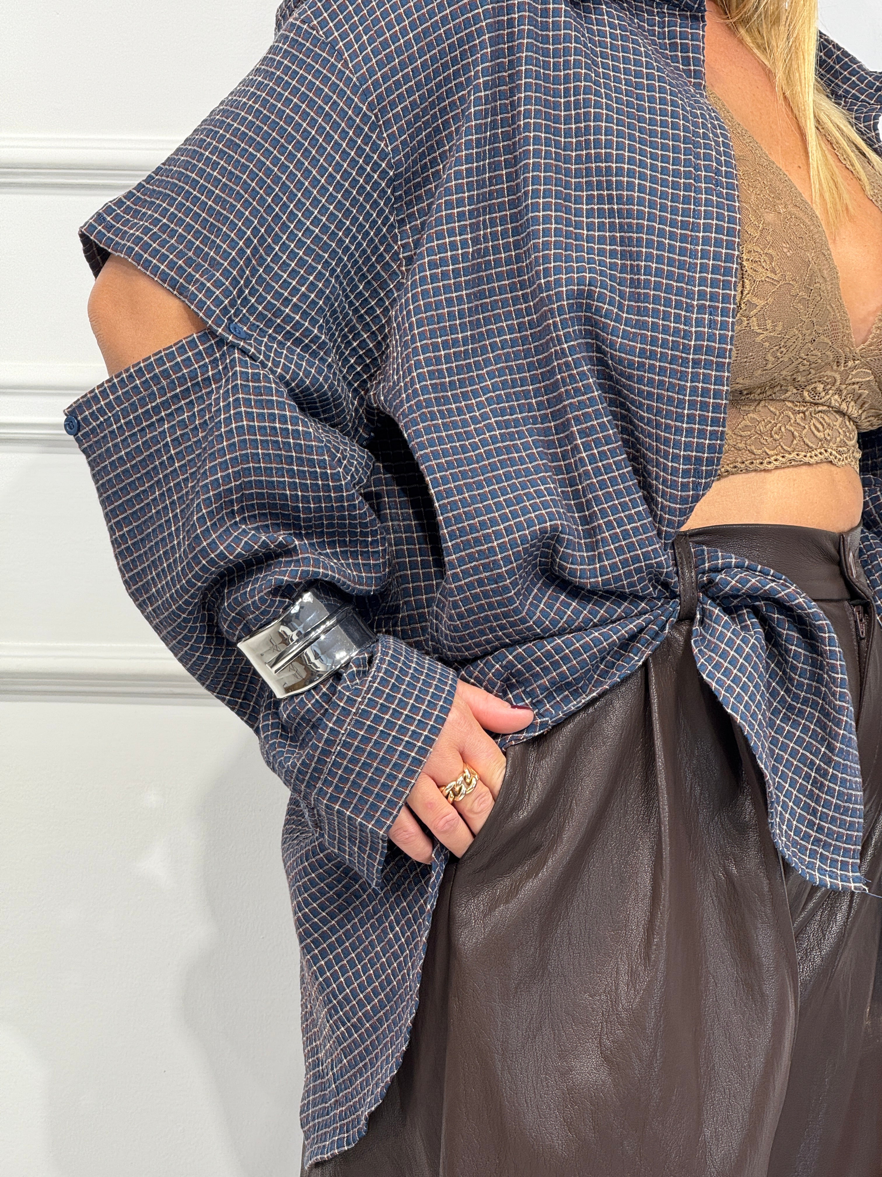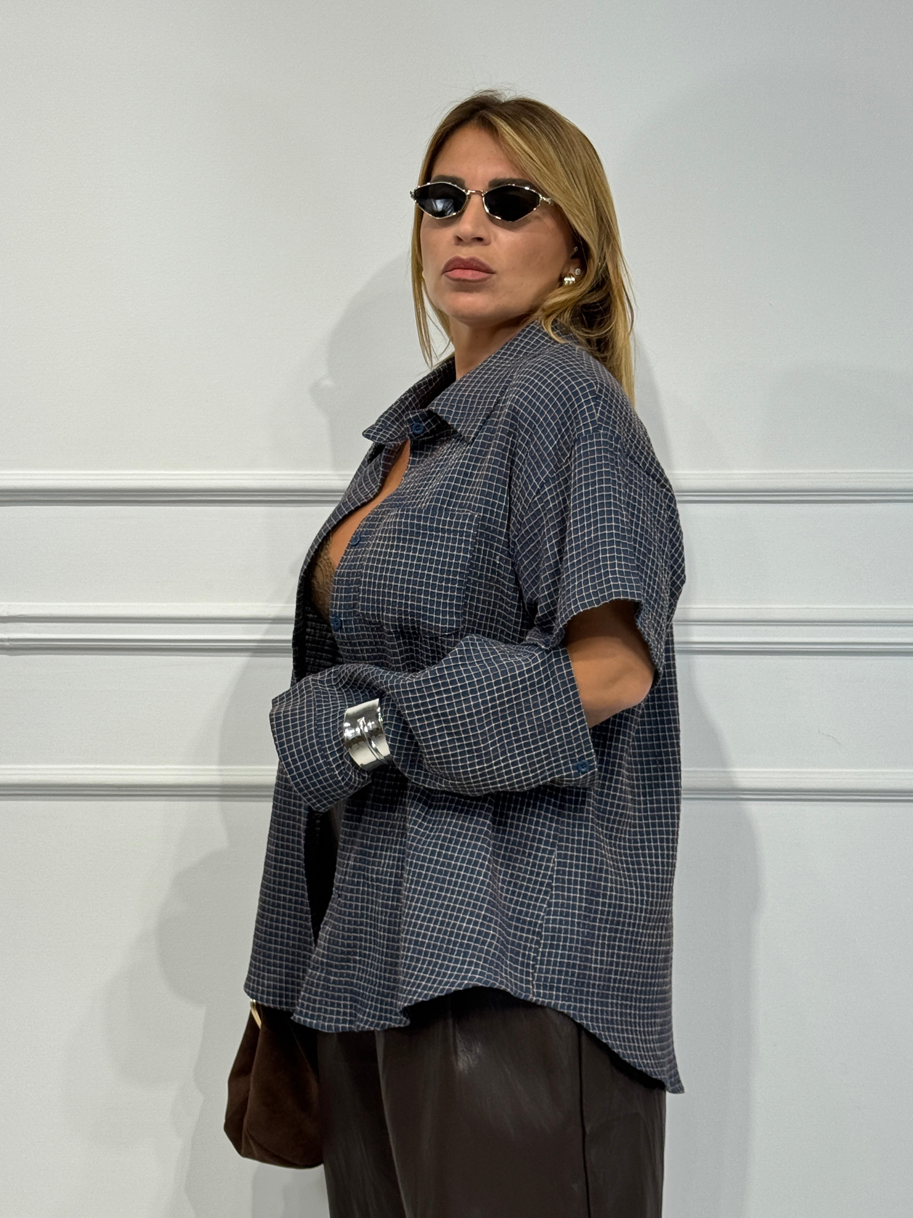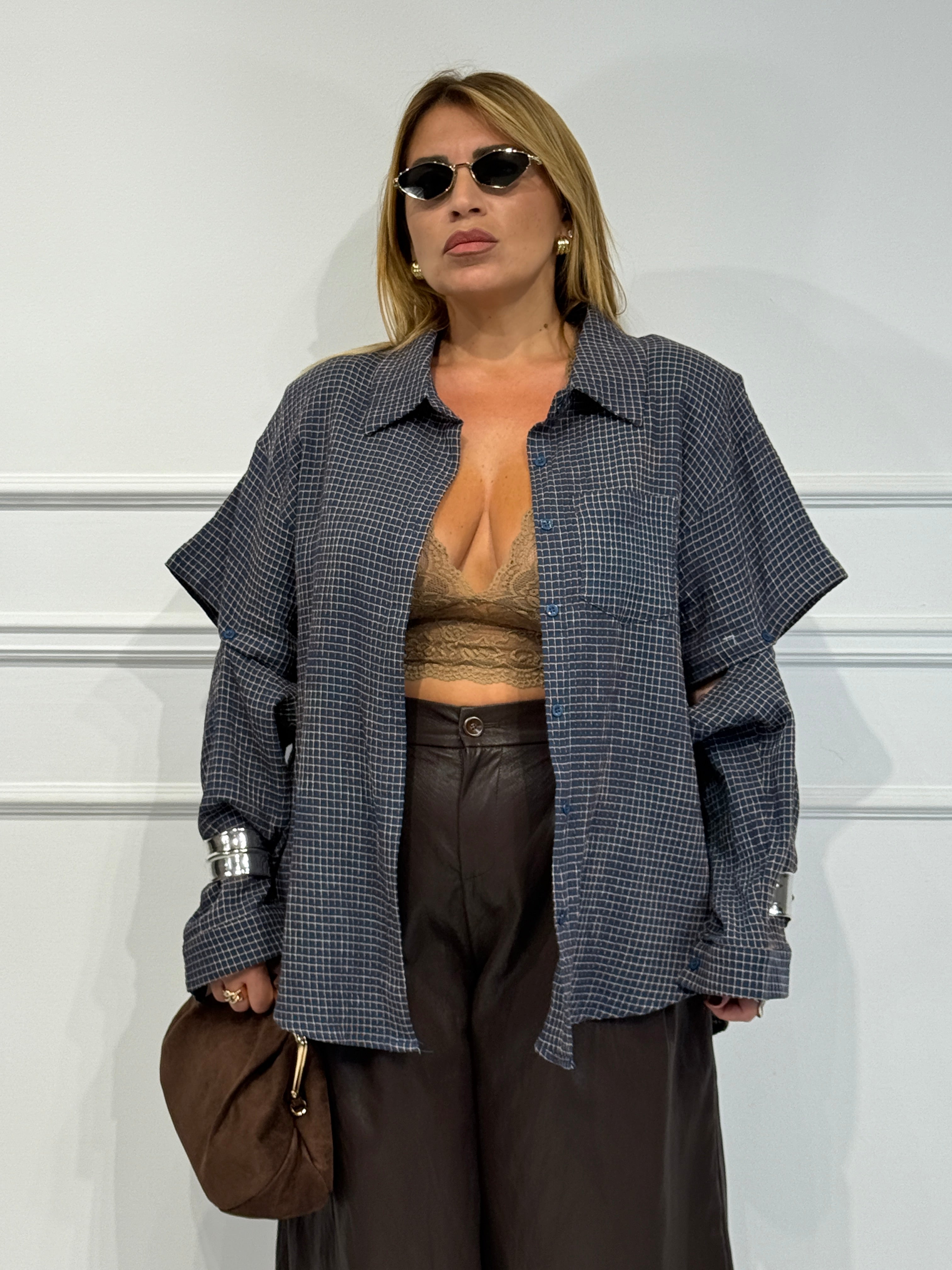 Camicia quadretti over size con spalline manica removibile taglia unica veste fino ad una 48