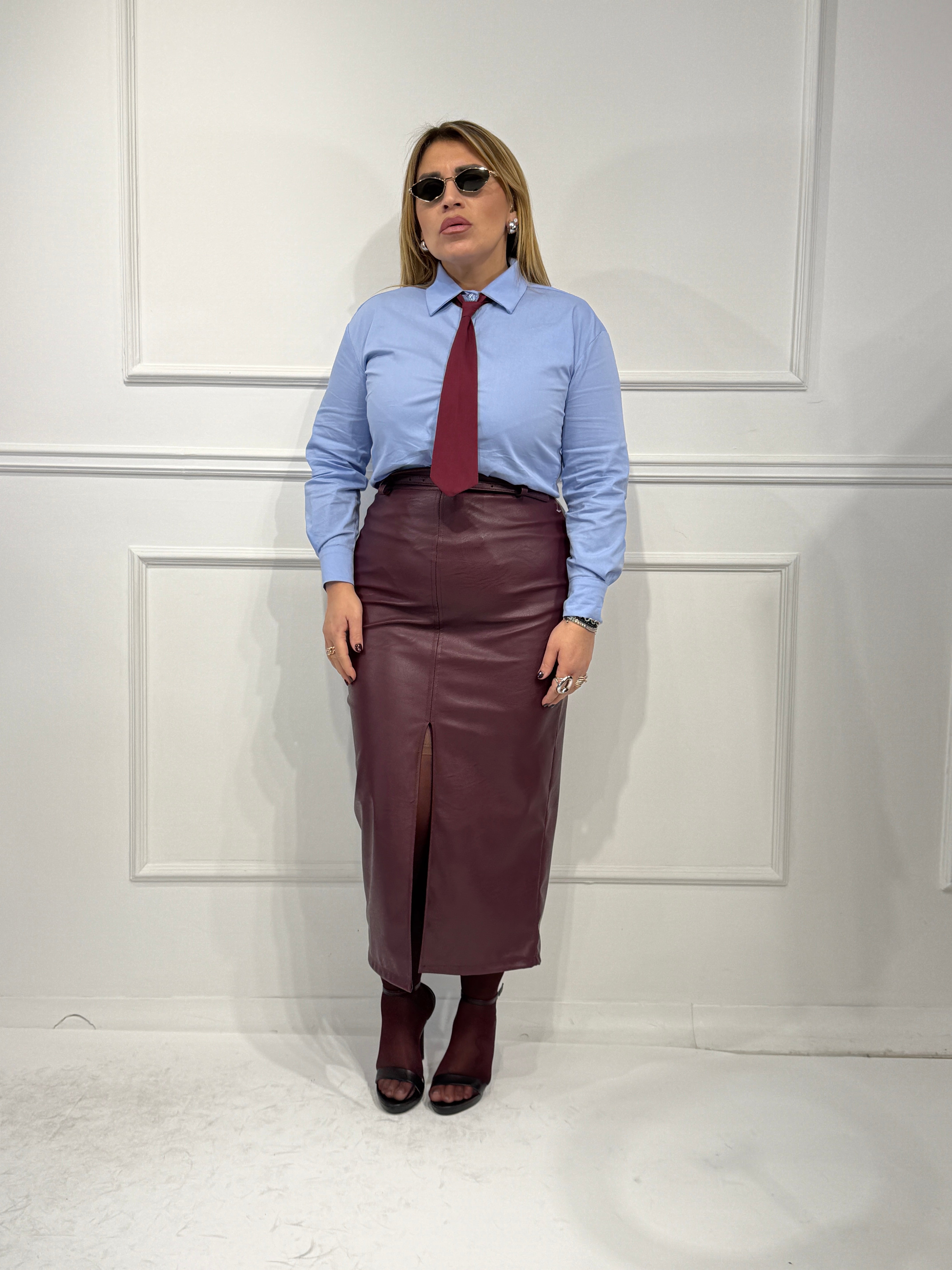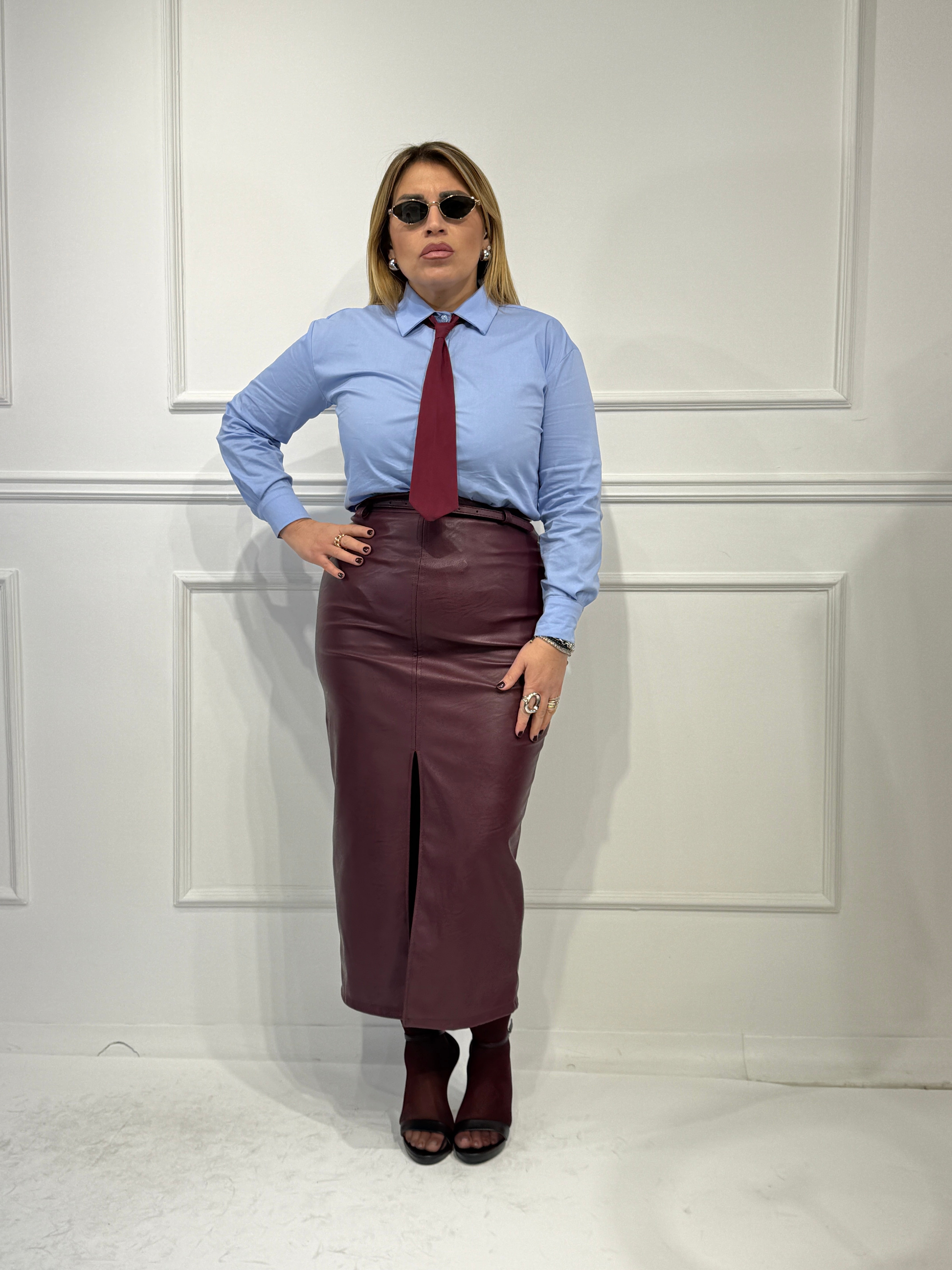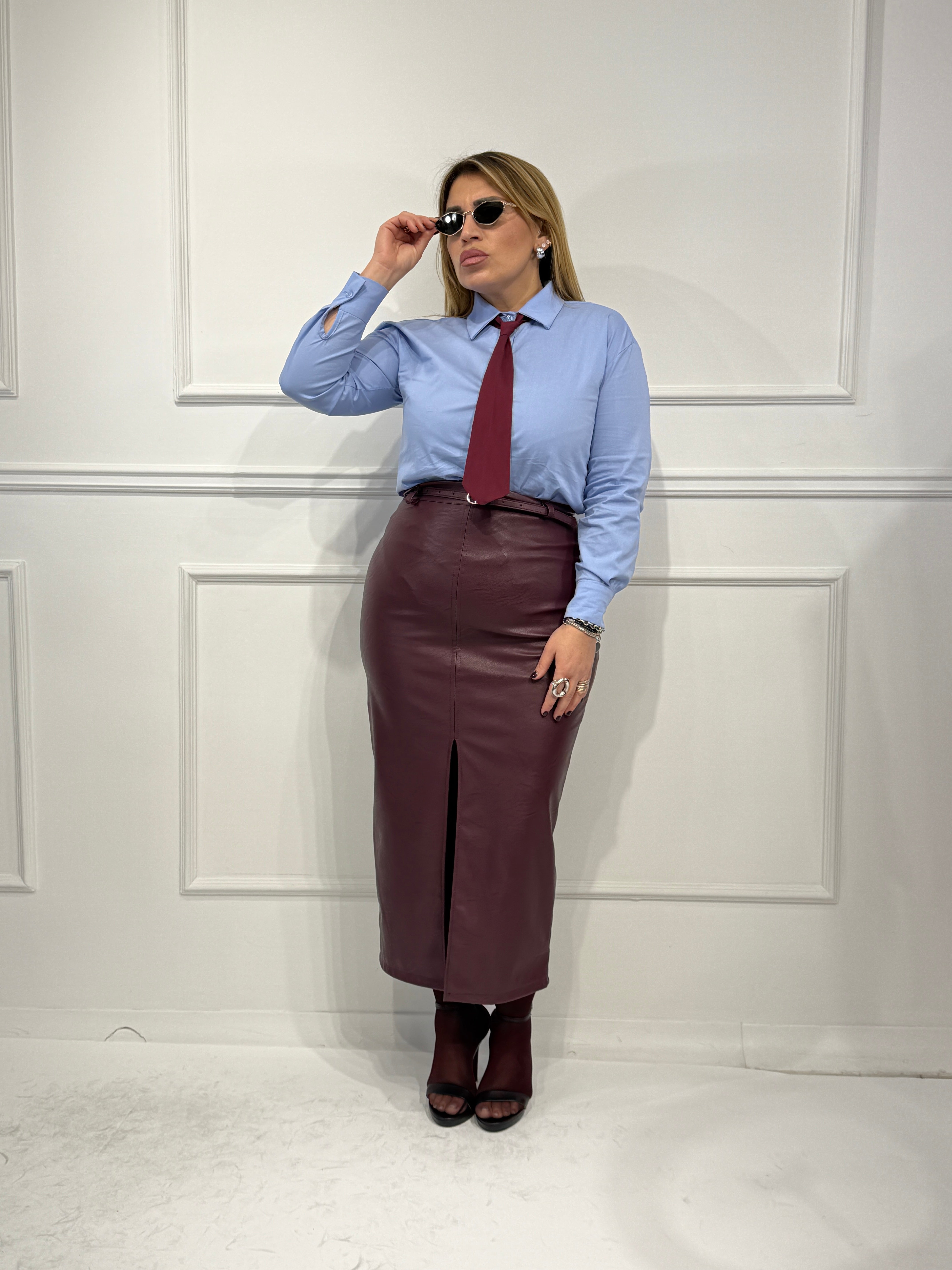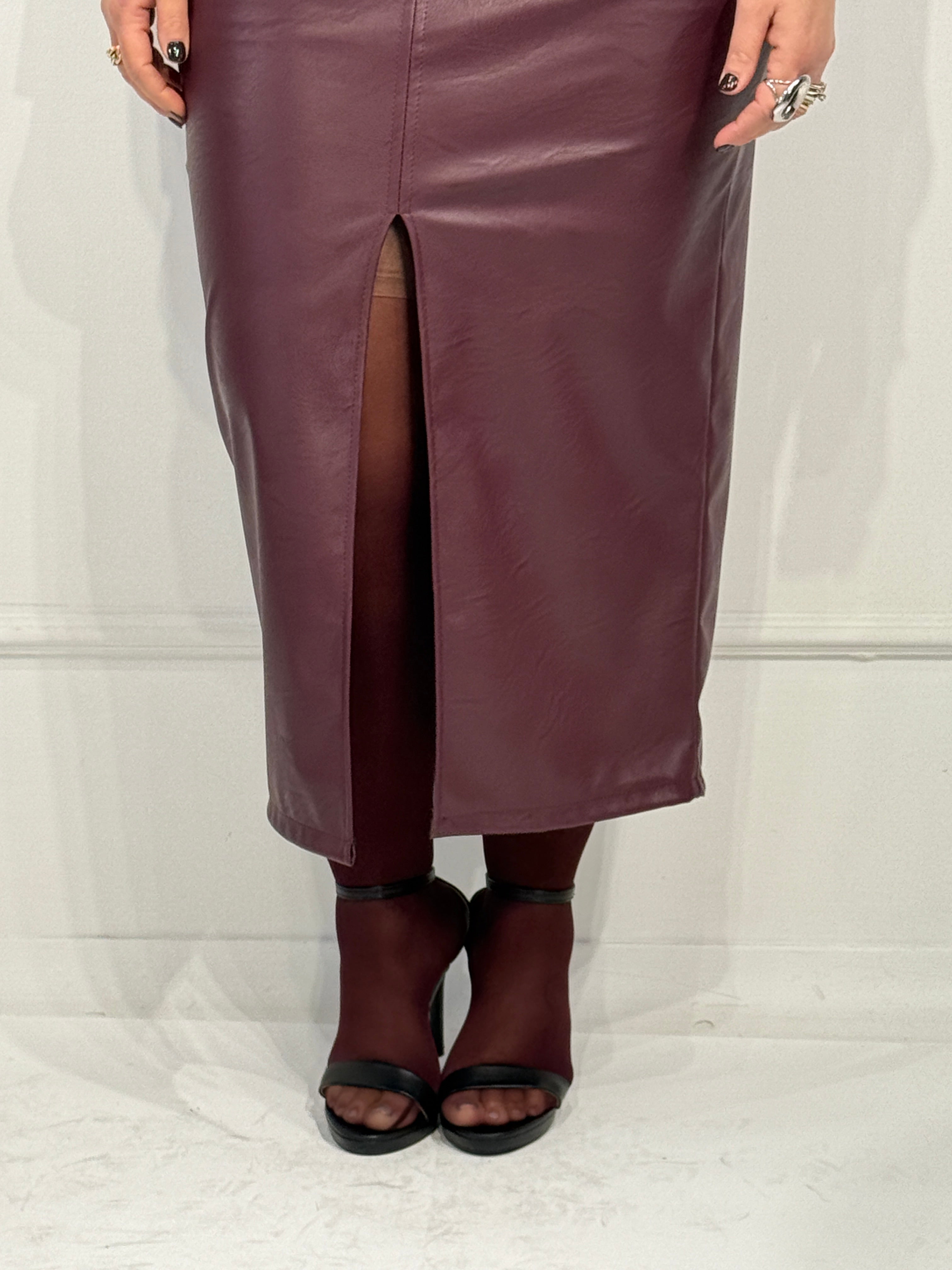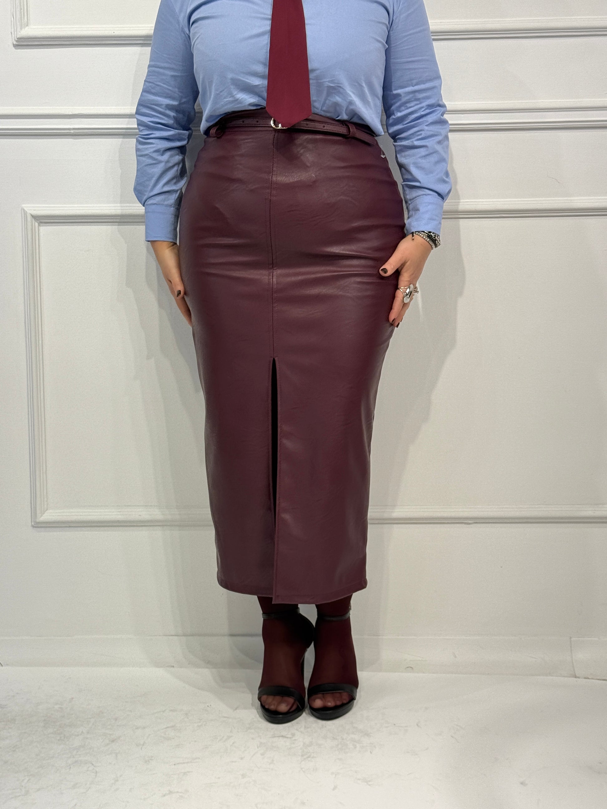 Gonna in ecopelle,qualita' premium,longuette con spacco centrale,cintura inclusa taglie disponibili SML,colori nero marrone bordo'