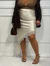 Gonna in raso con pizzo al fondo,taglio trasversale con spacco.Taglia disponibile SM ML