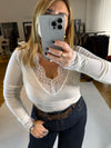 Maglia in cashmere manica lunga semitrasparente con scollo e polsini in pizzo