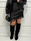 Mini Gonna in raso con pizzo la fondo taglio trasversale.Taglia unica veste fino a 46 .