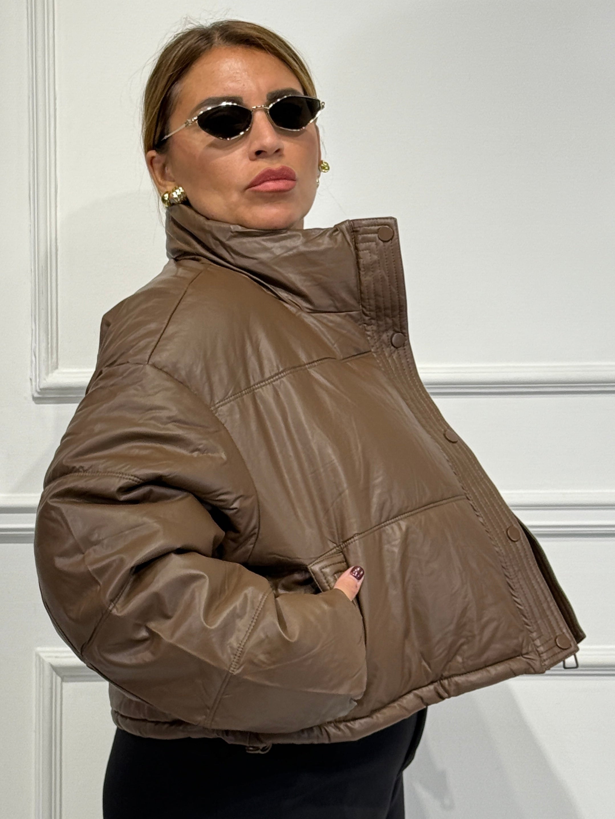 Bomber ecopelle cropped con zip e ciappe disponibile taglia SM ML