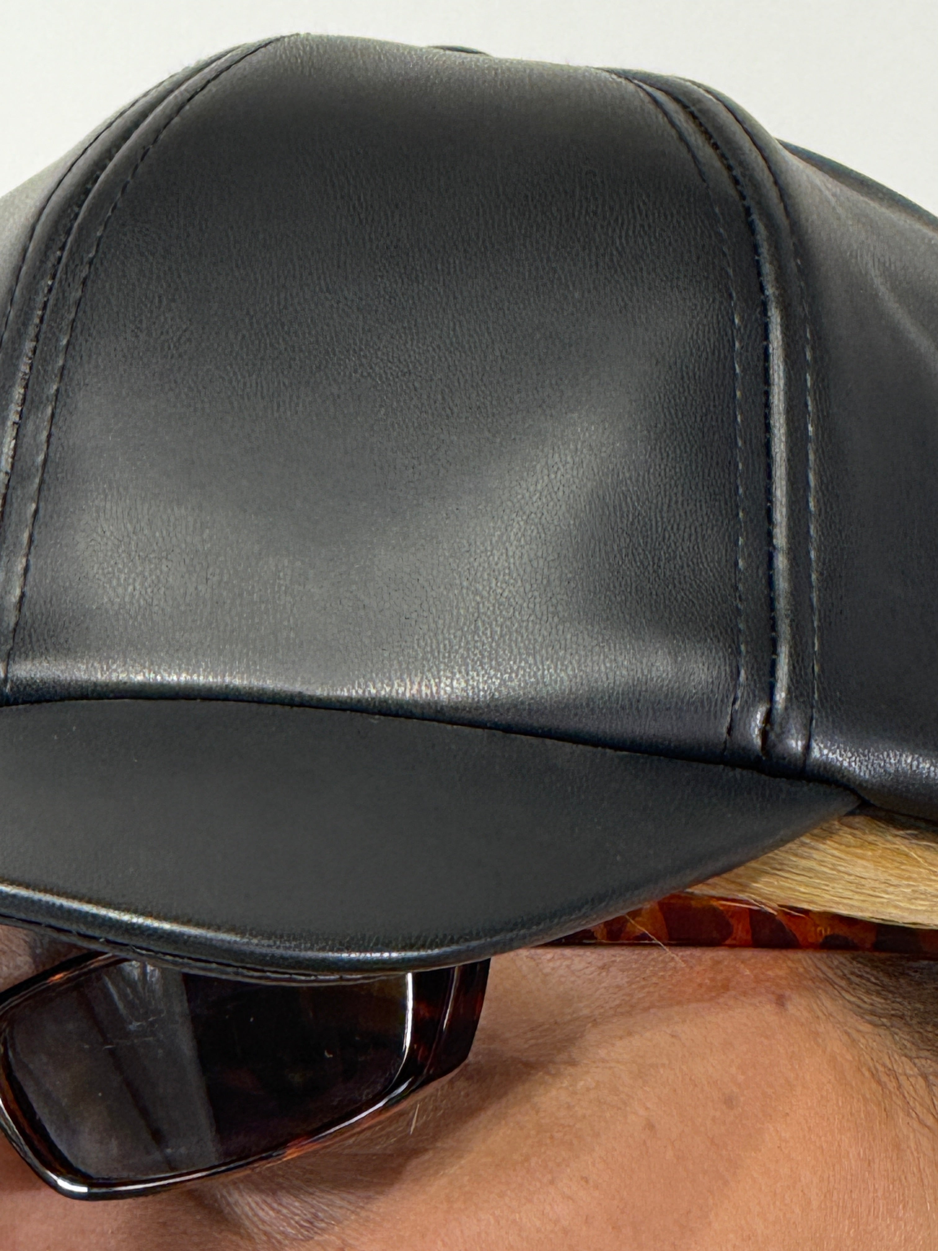 Cappello con visiera in ecopelle. Diponibile Nero e Marrone