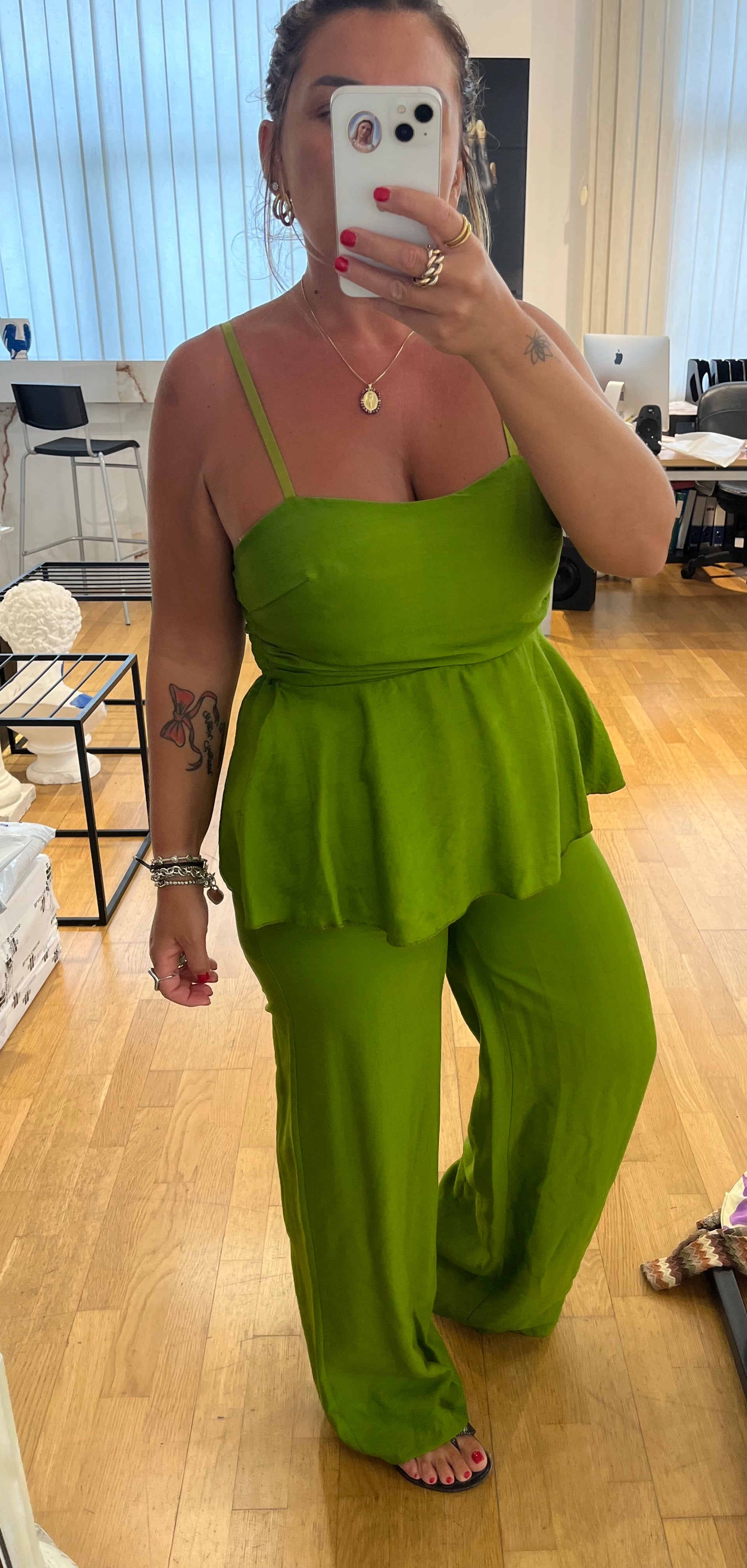 Coordinato composto da top con elastico sul retro e bretella regolabile,pantalone con elastico in vita ,taglia unica veste da una 40 fino ad una 46
