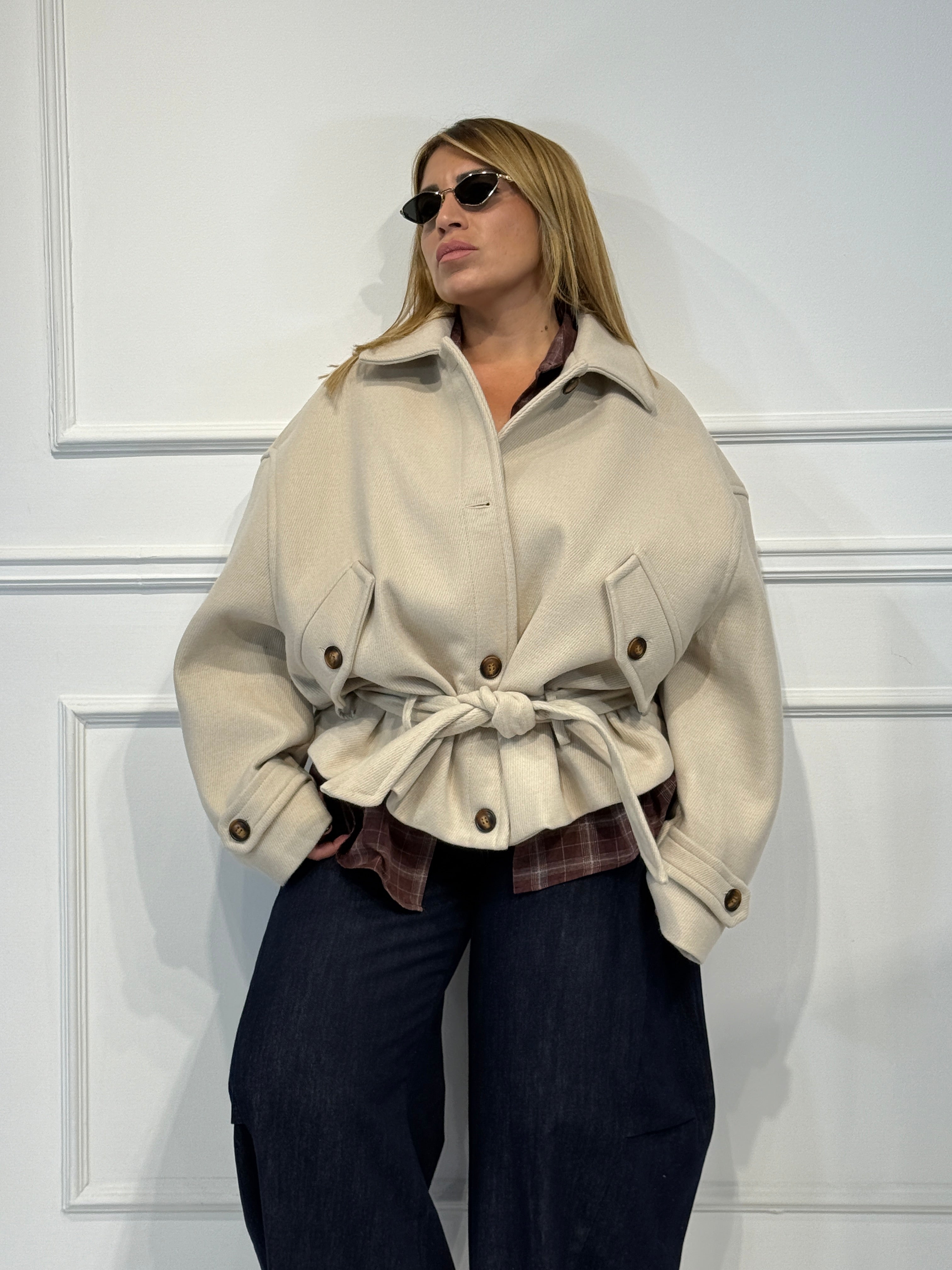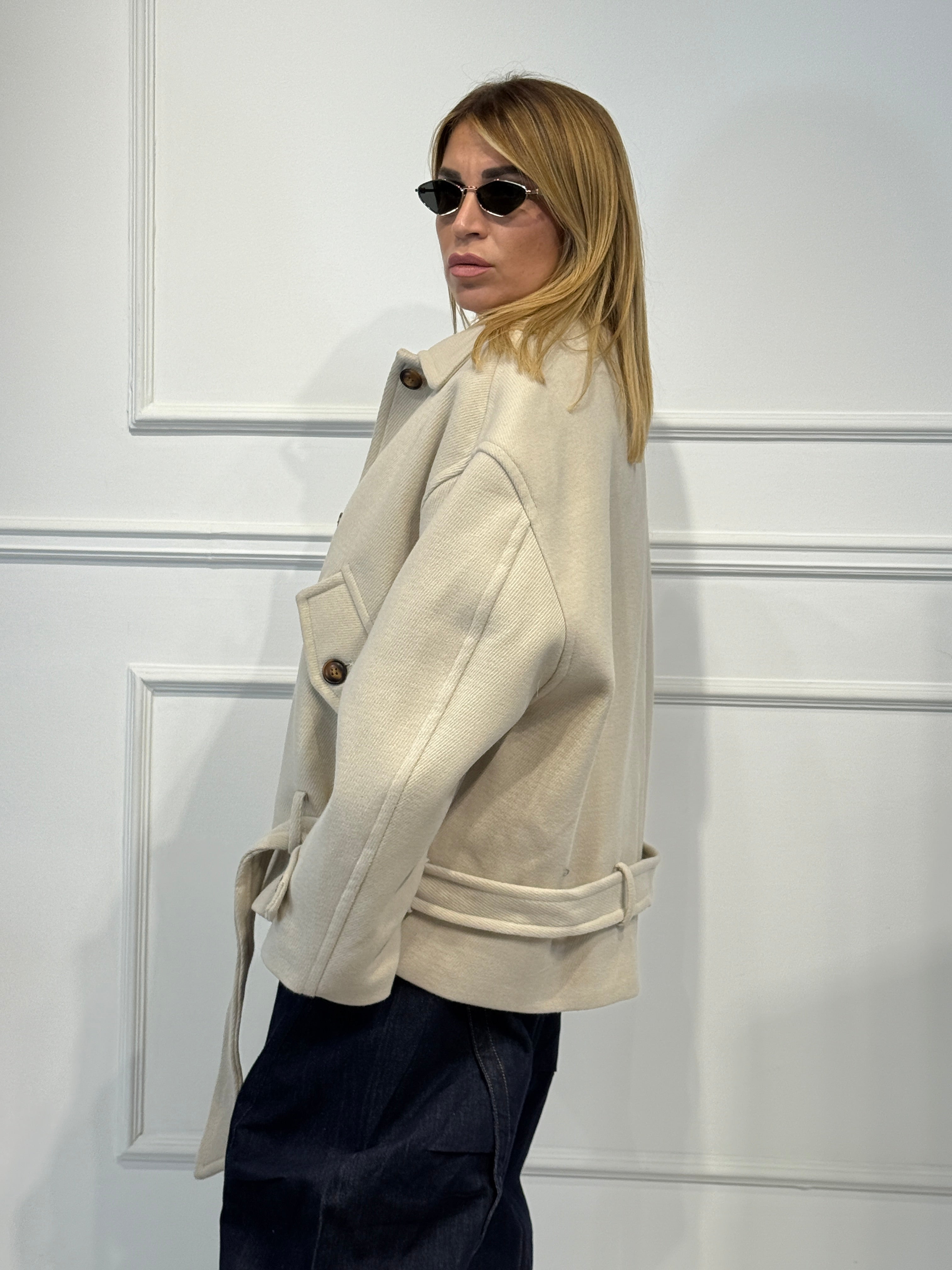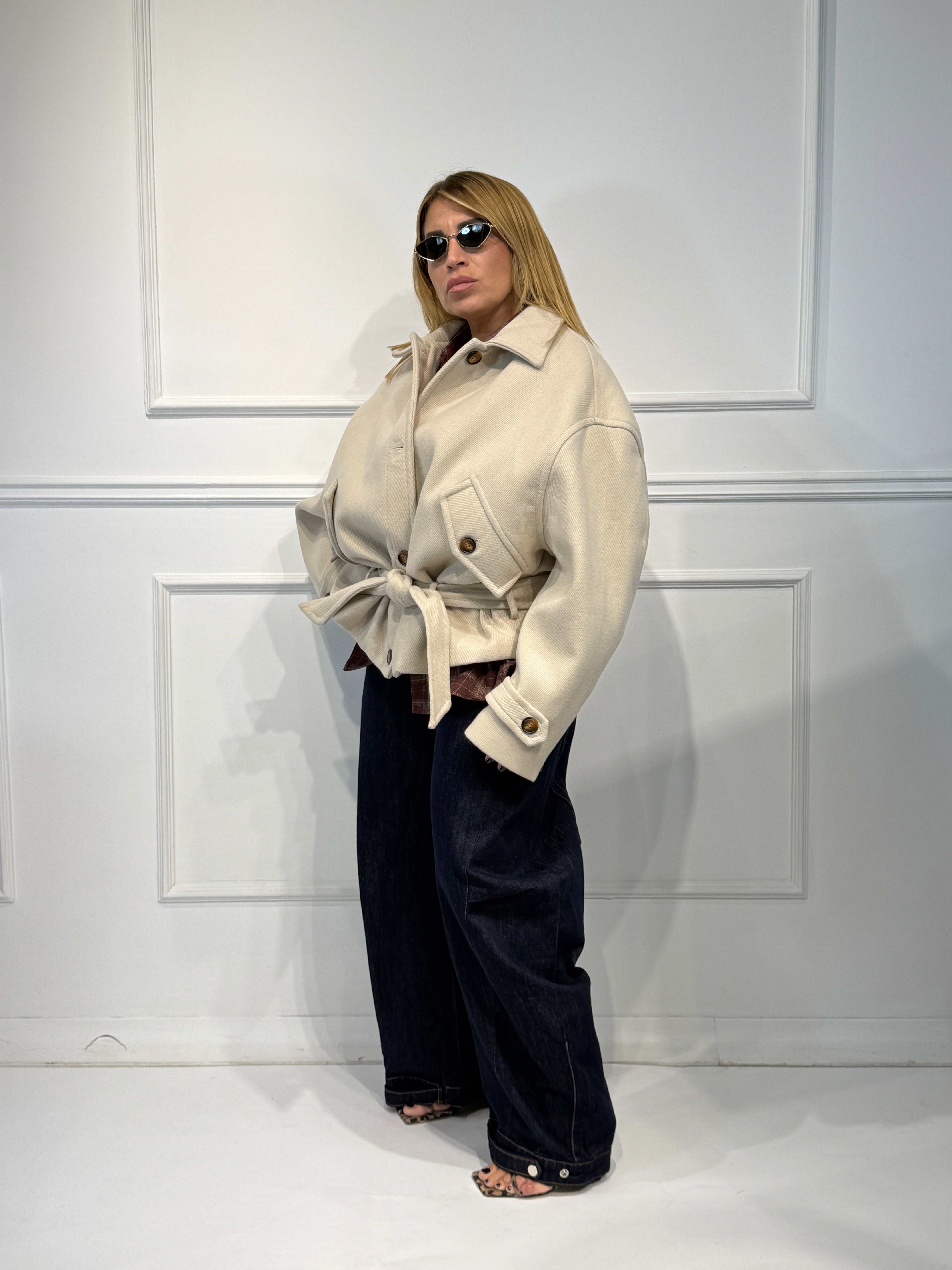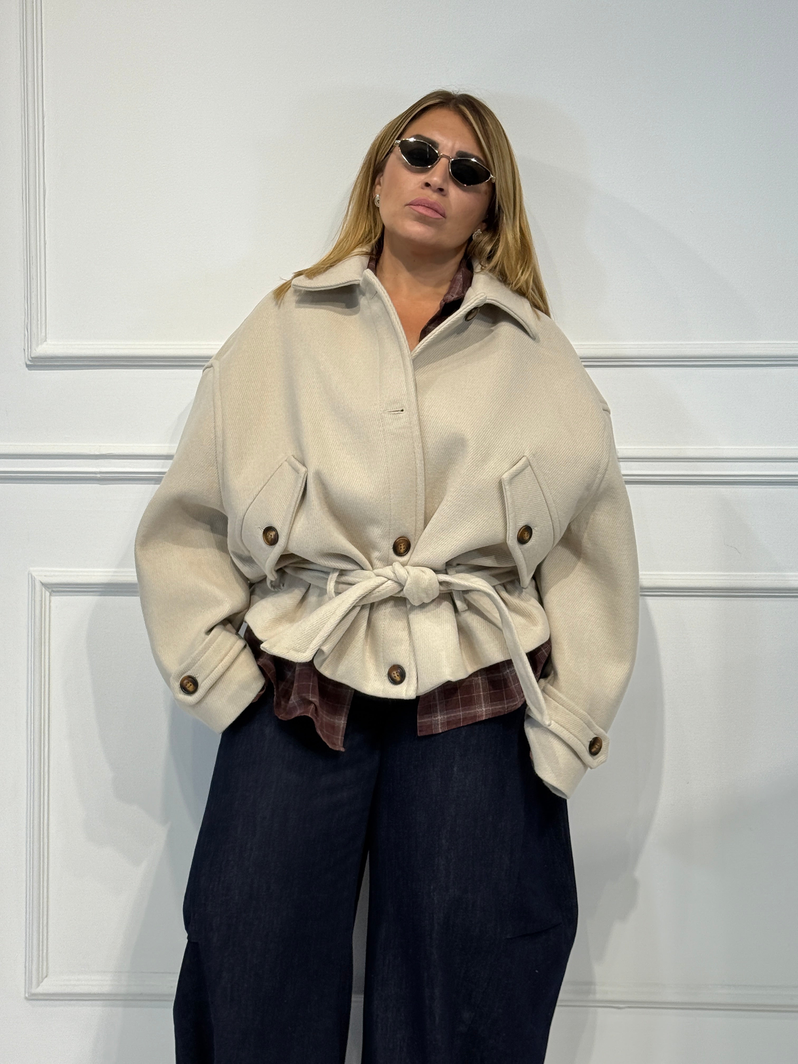 Giacca in panno super over size con cintura a fondo taglia unica veste fino a 50/52