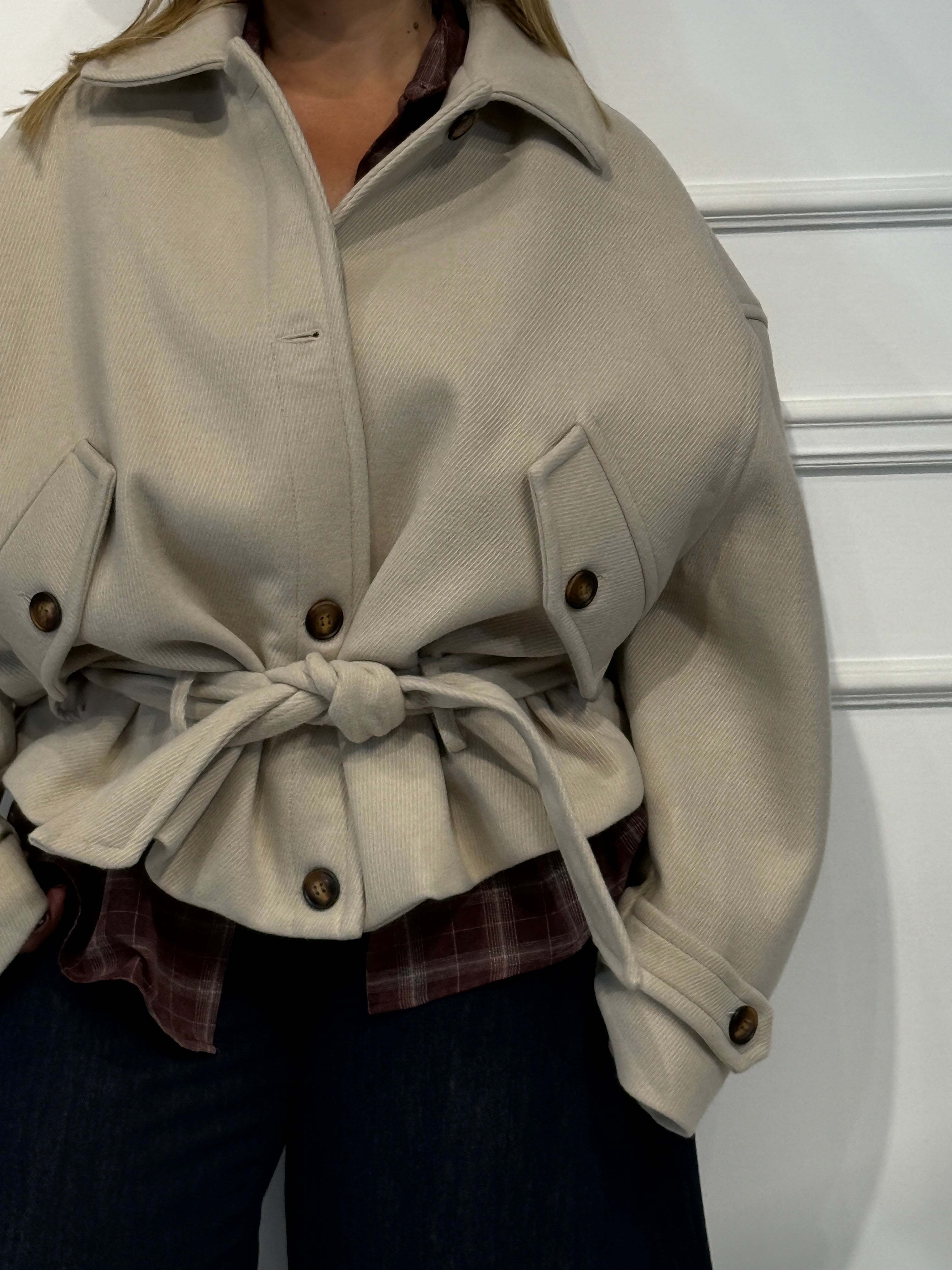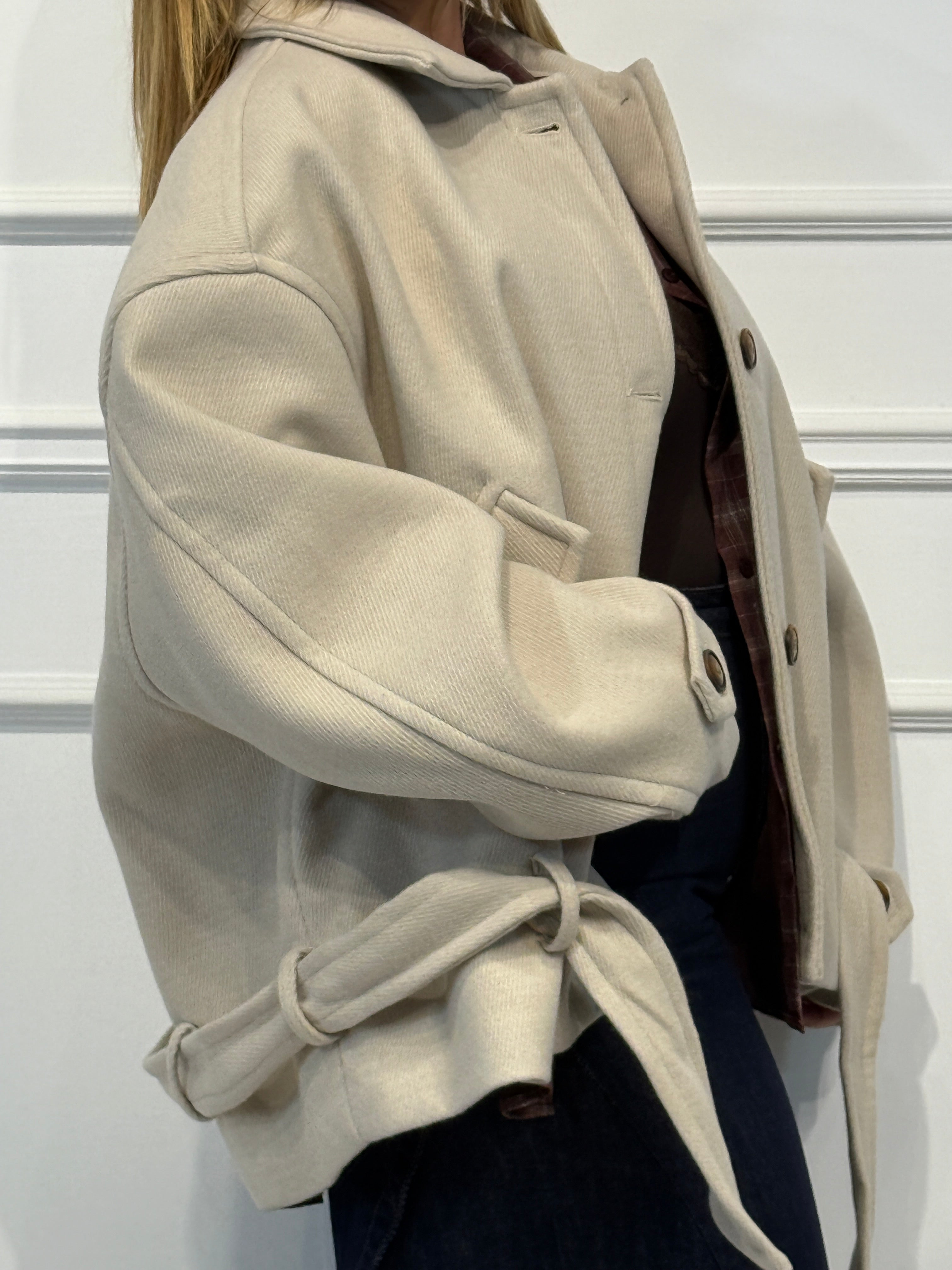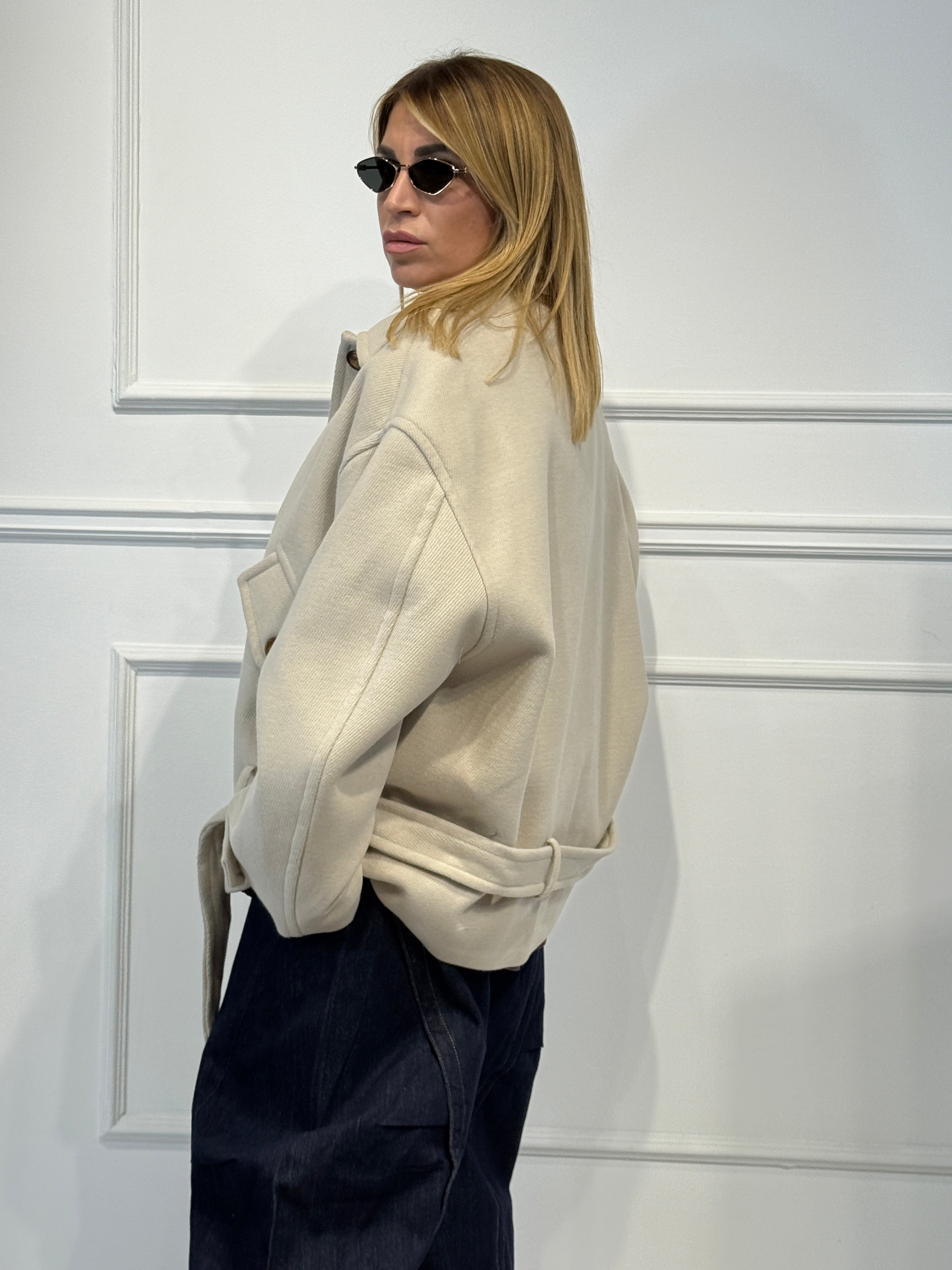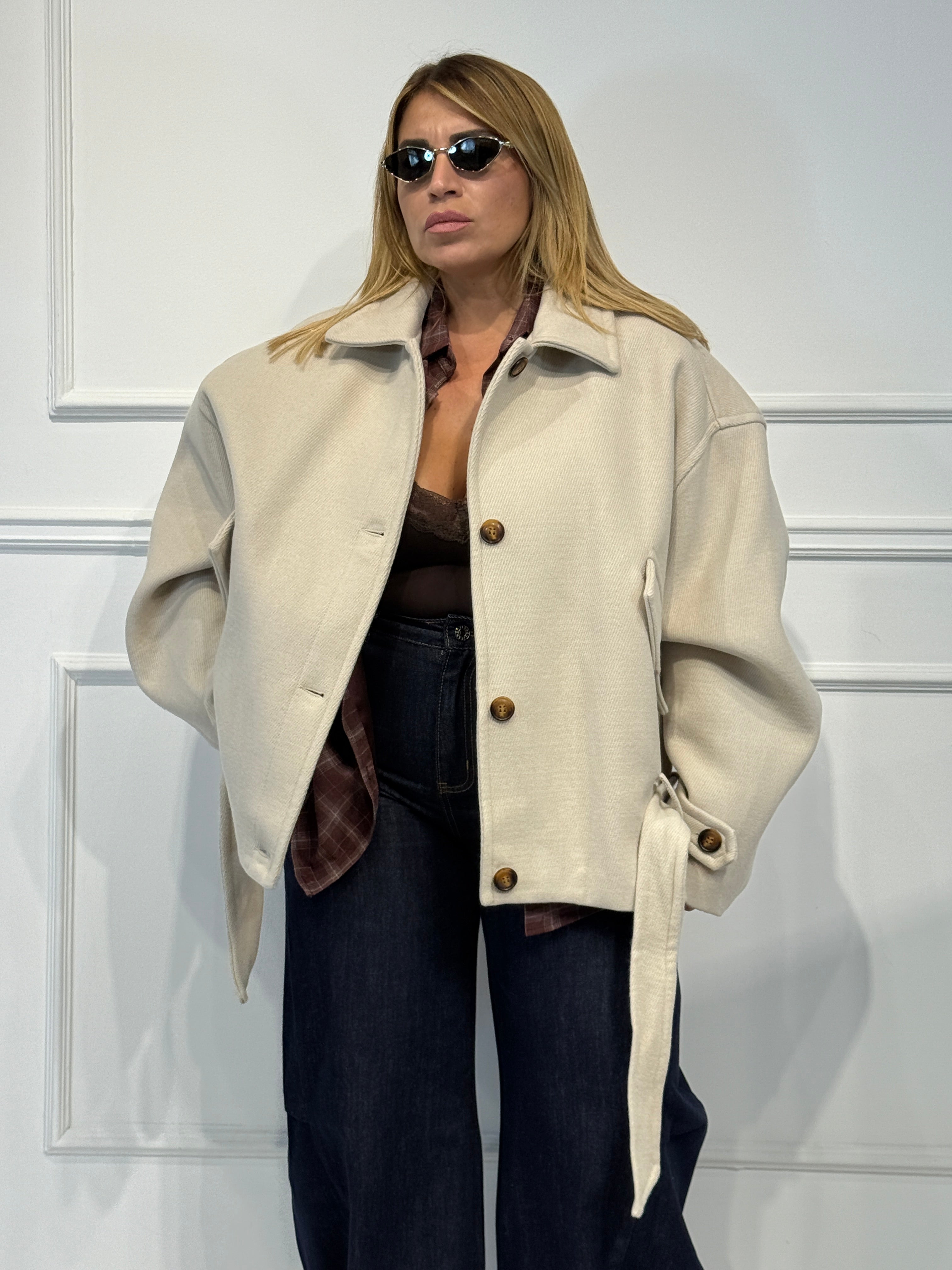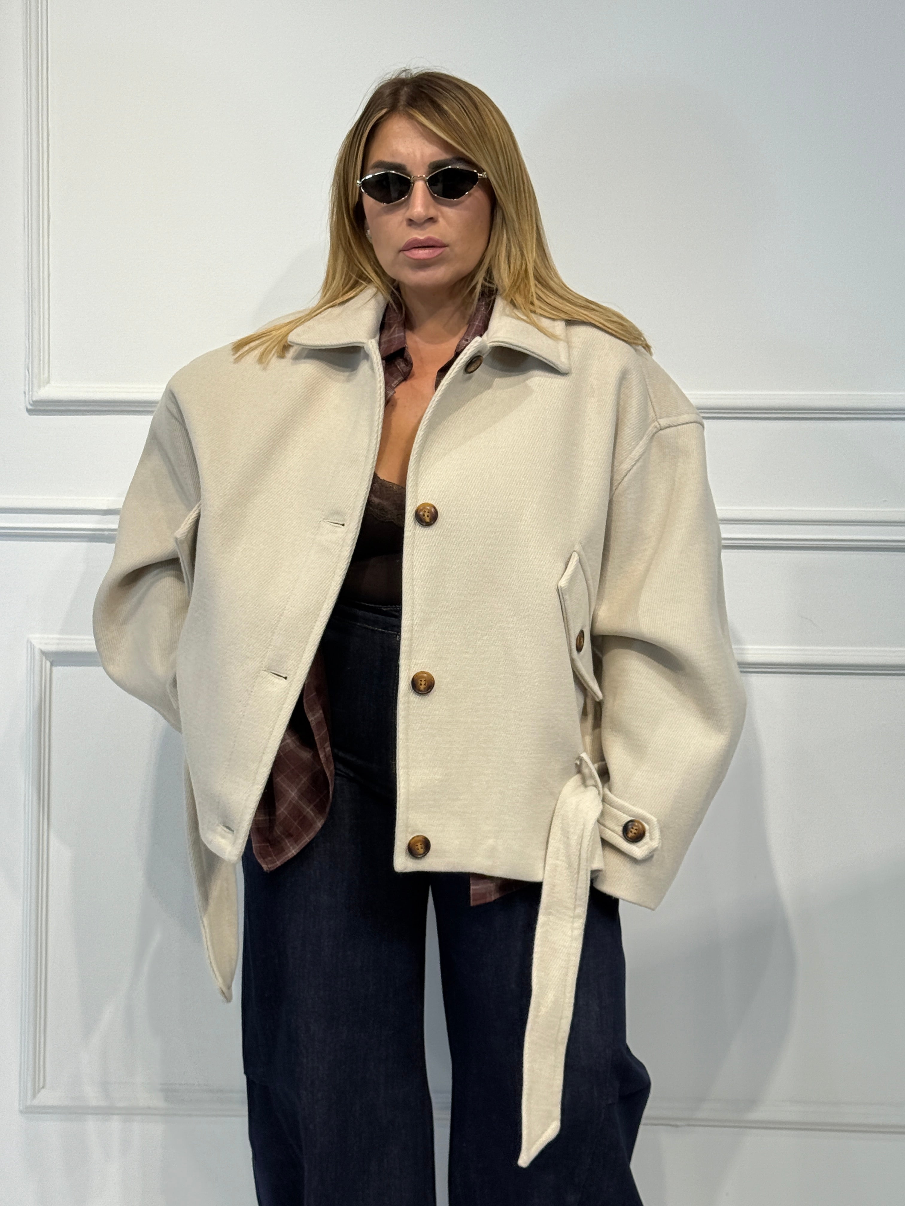 Giacca in panno super over size con cintura a fondo taglia unica veste fino a 50/52