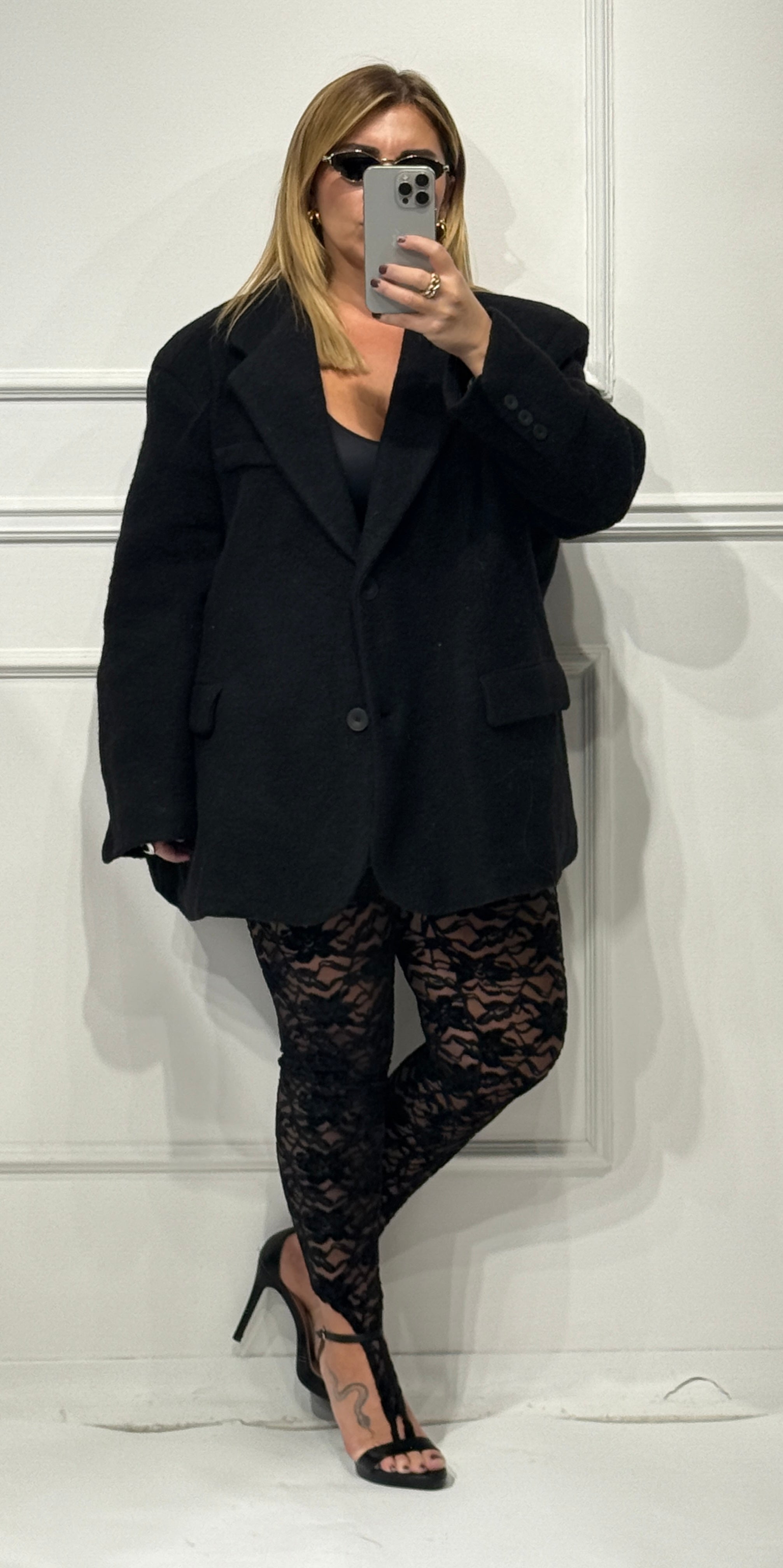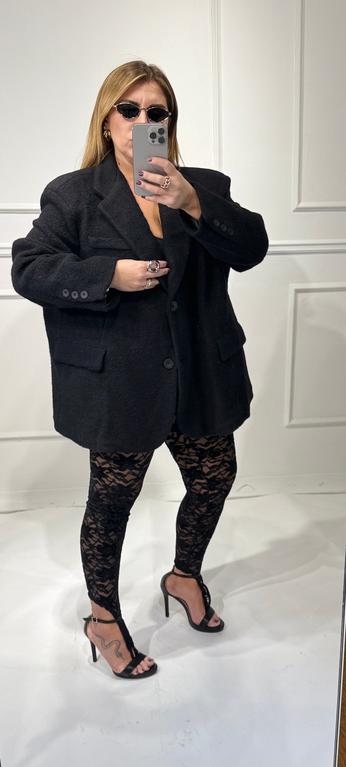 Leggins in Macrame' elastico con ricami in rilievo in velluto