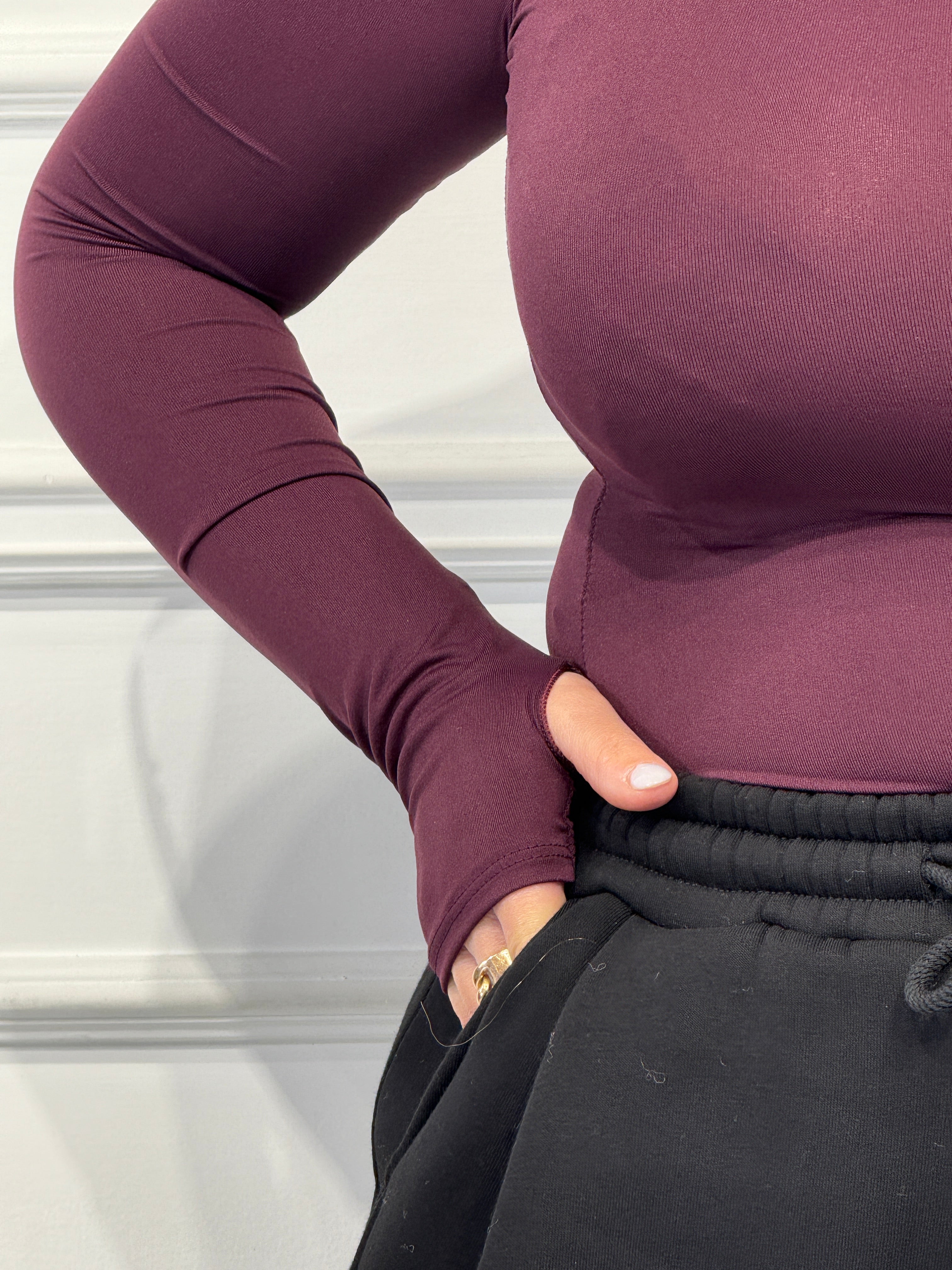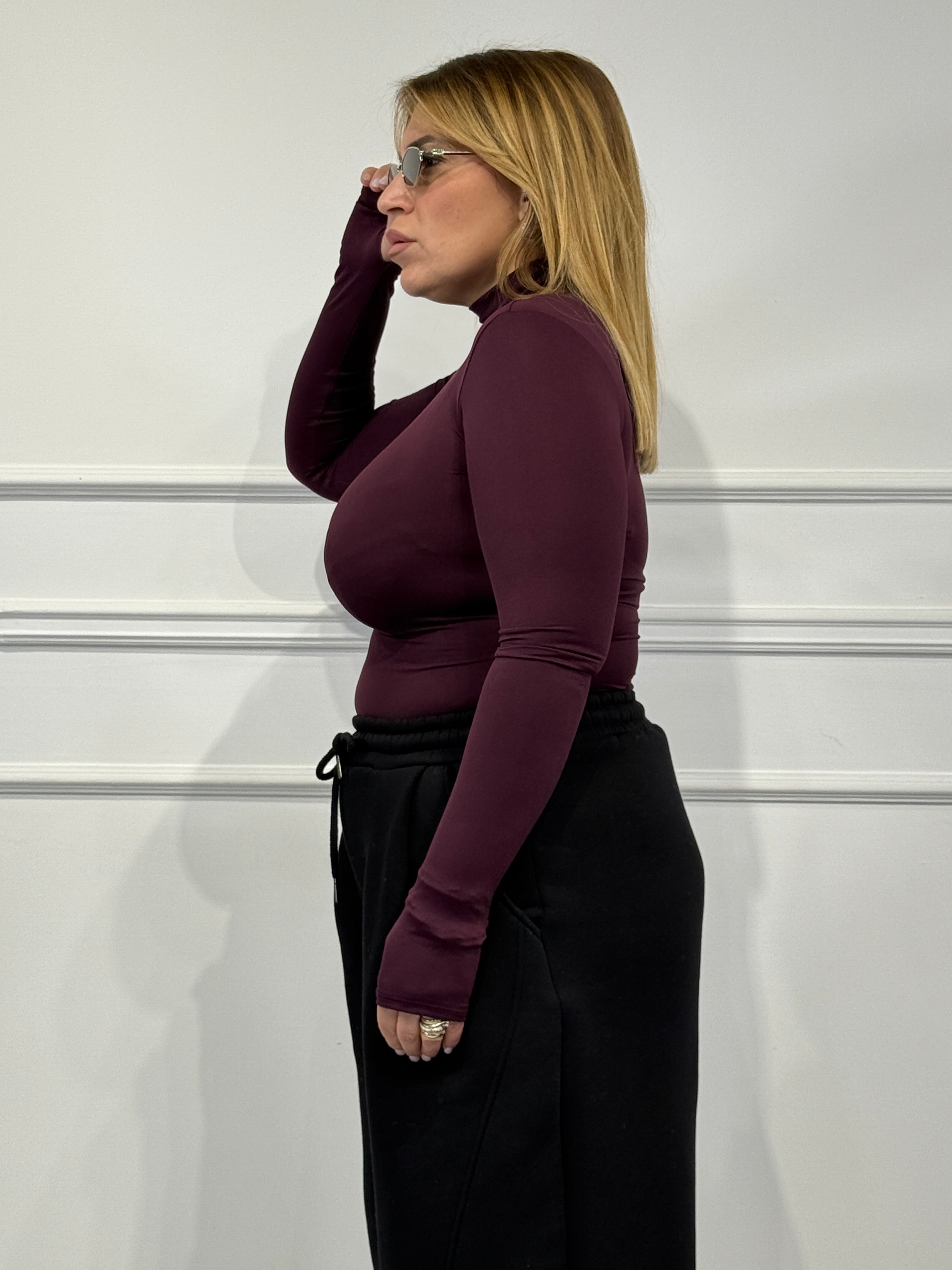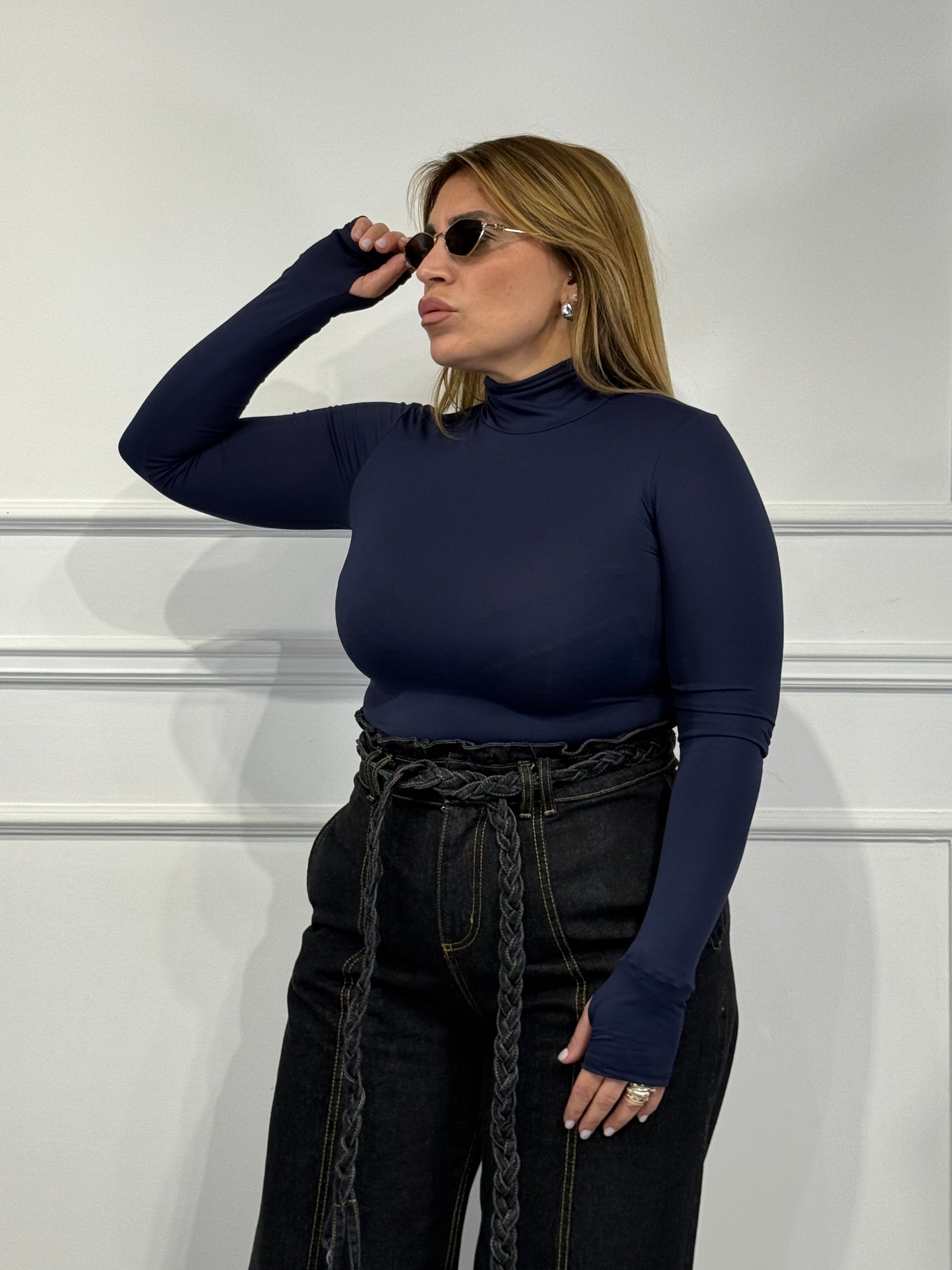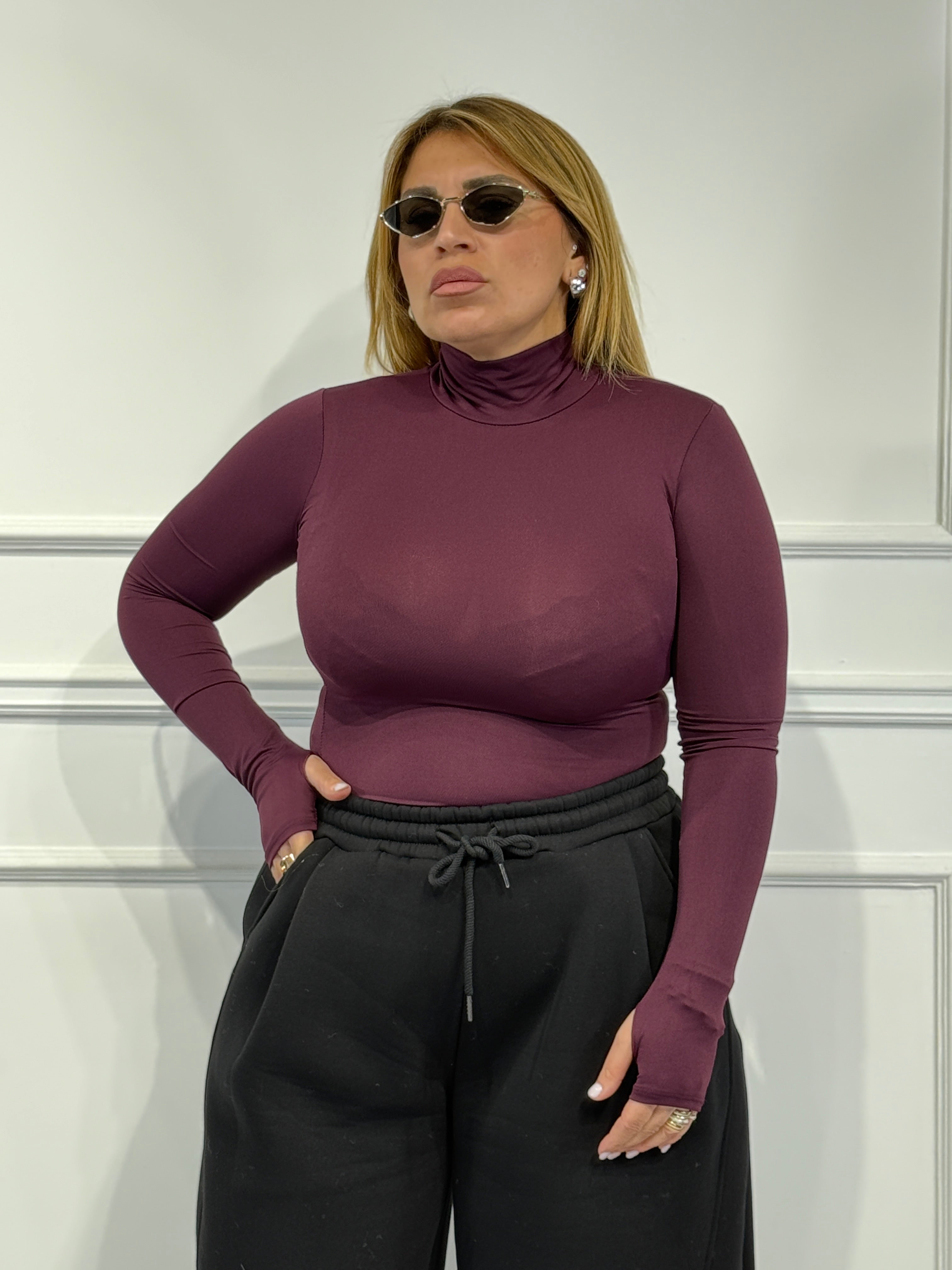 Maglia in Lycra manica lunga a guanto semitrasparente con collo alto