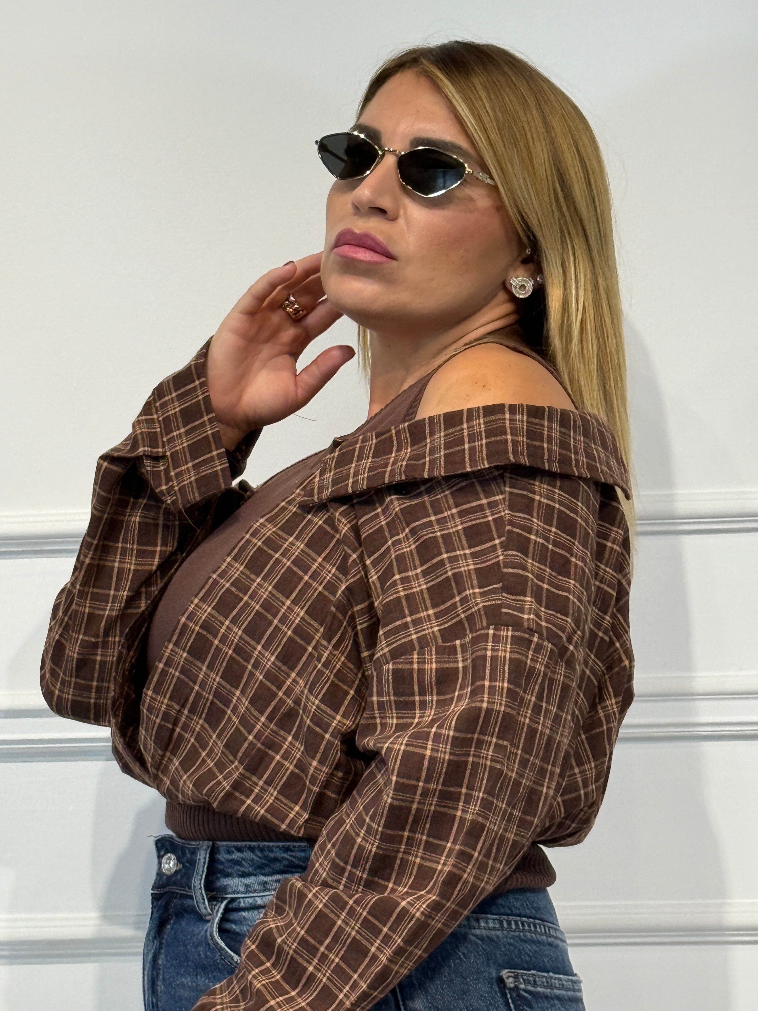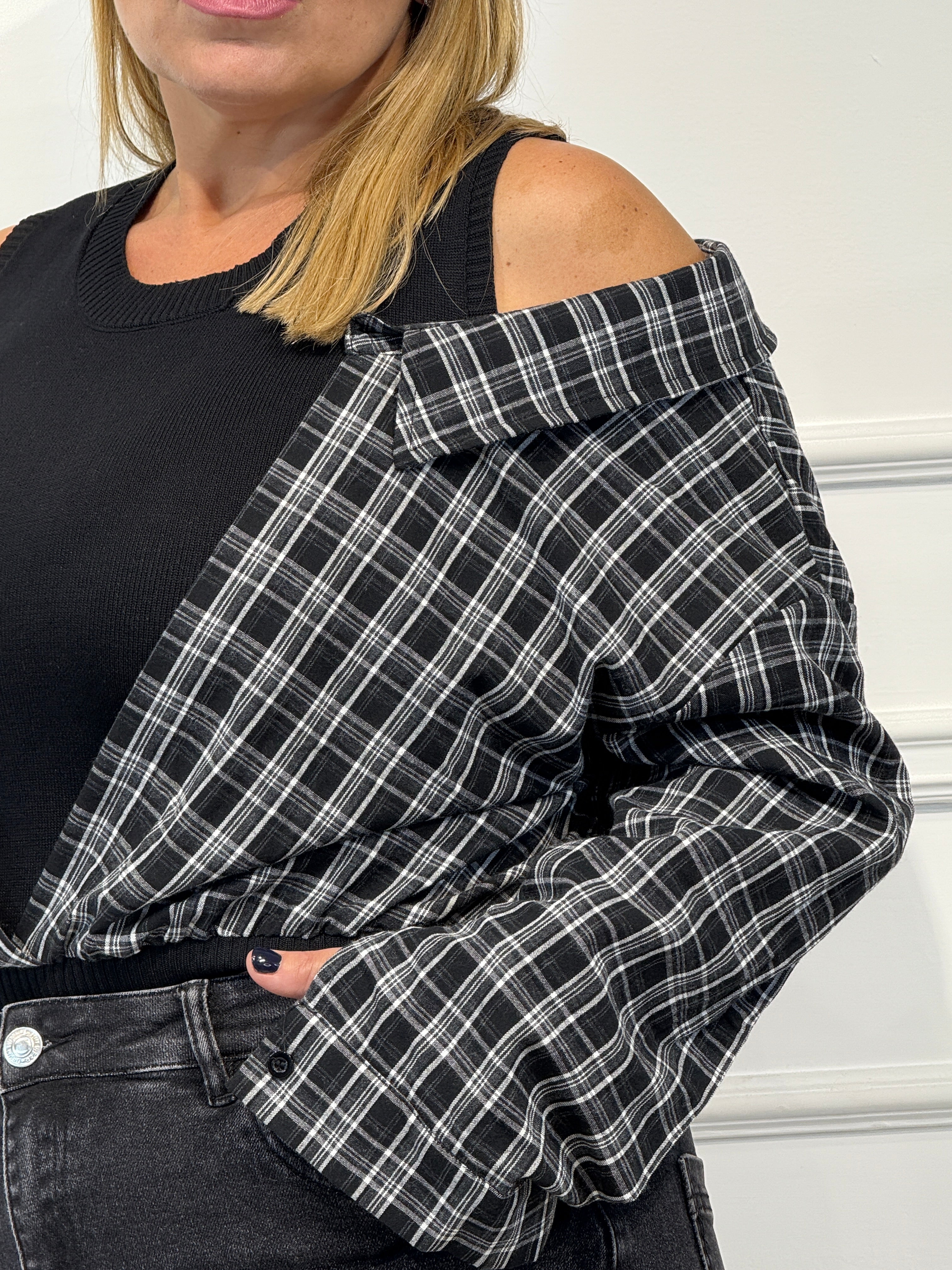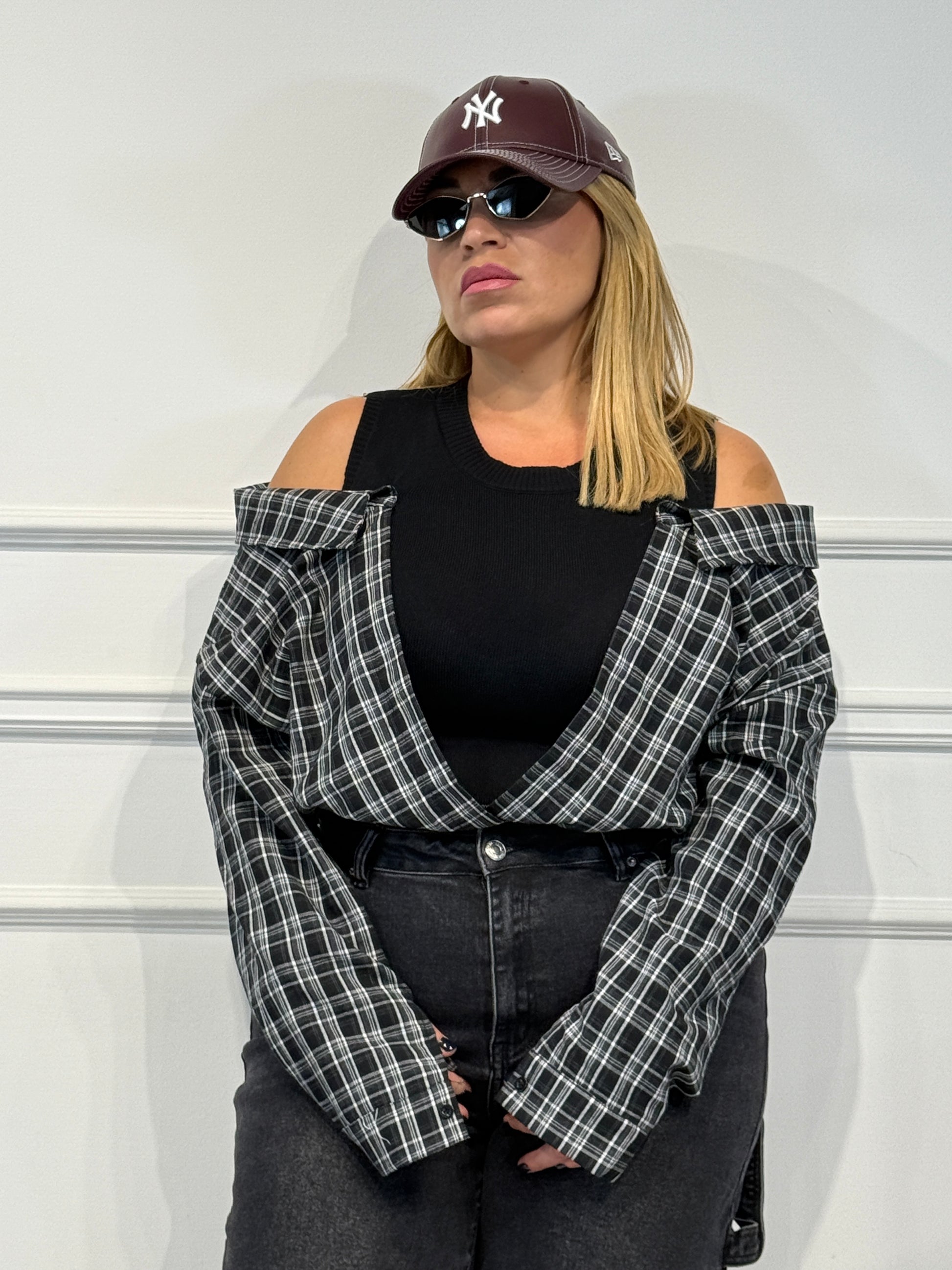 Maglia composta da canotta con camicia check unita con spalla scoperta