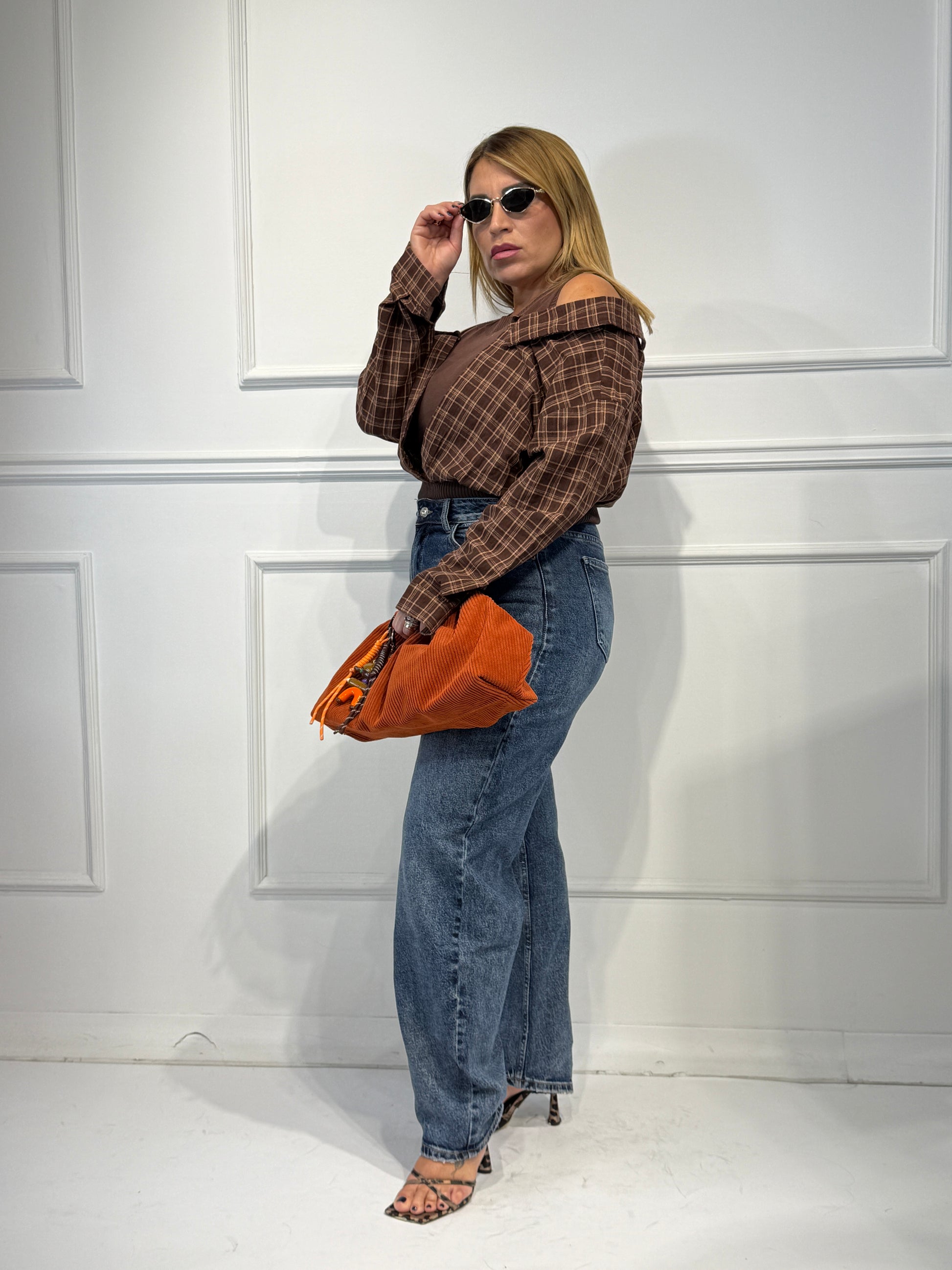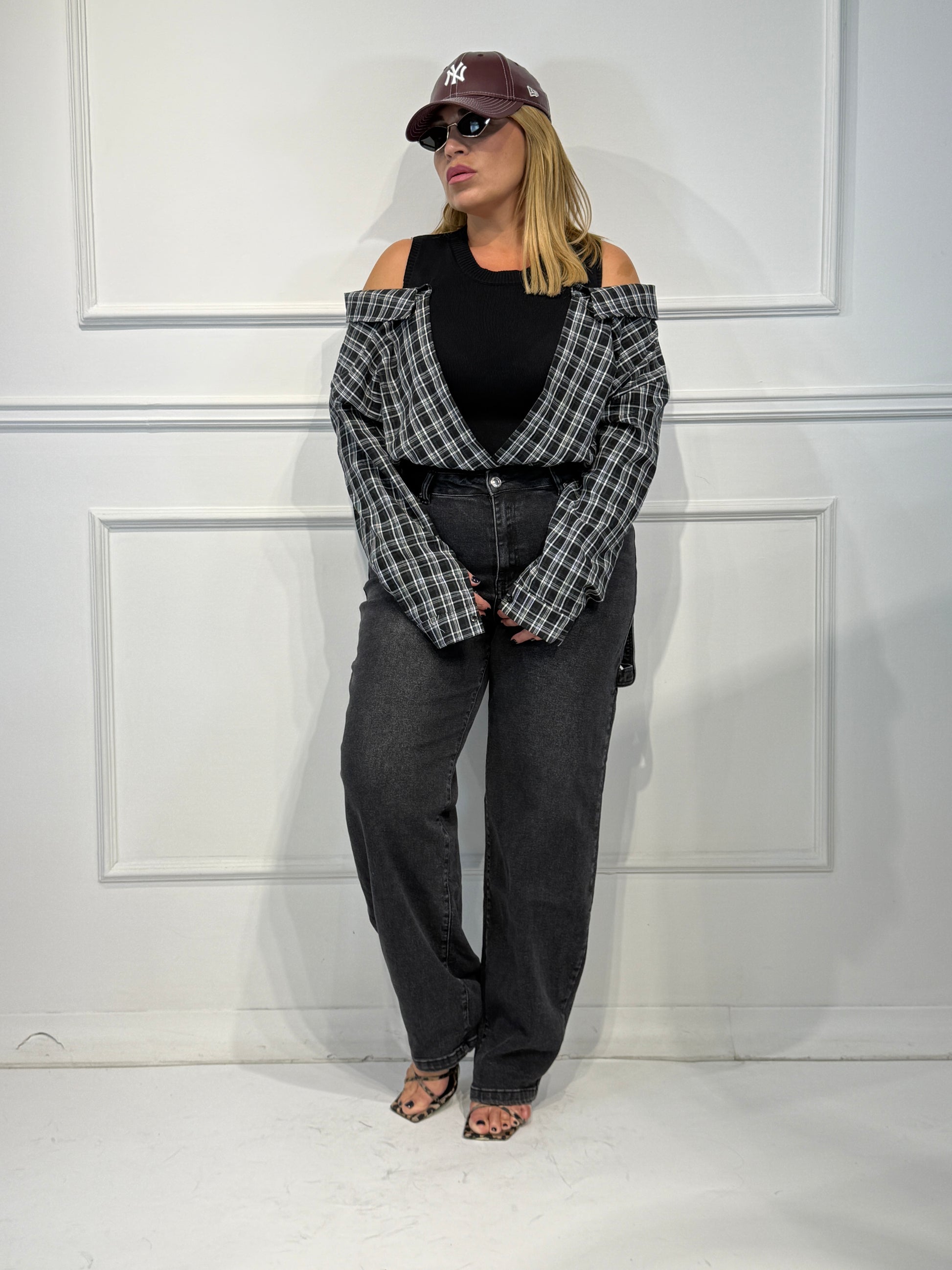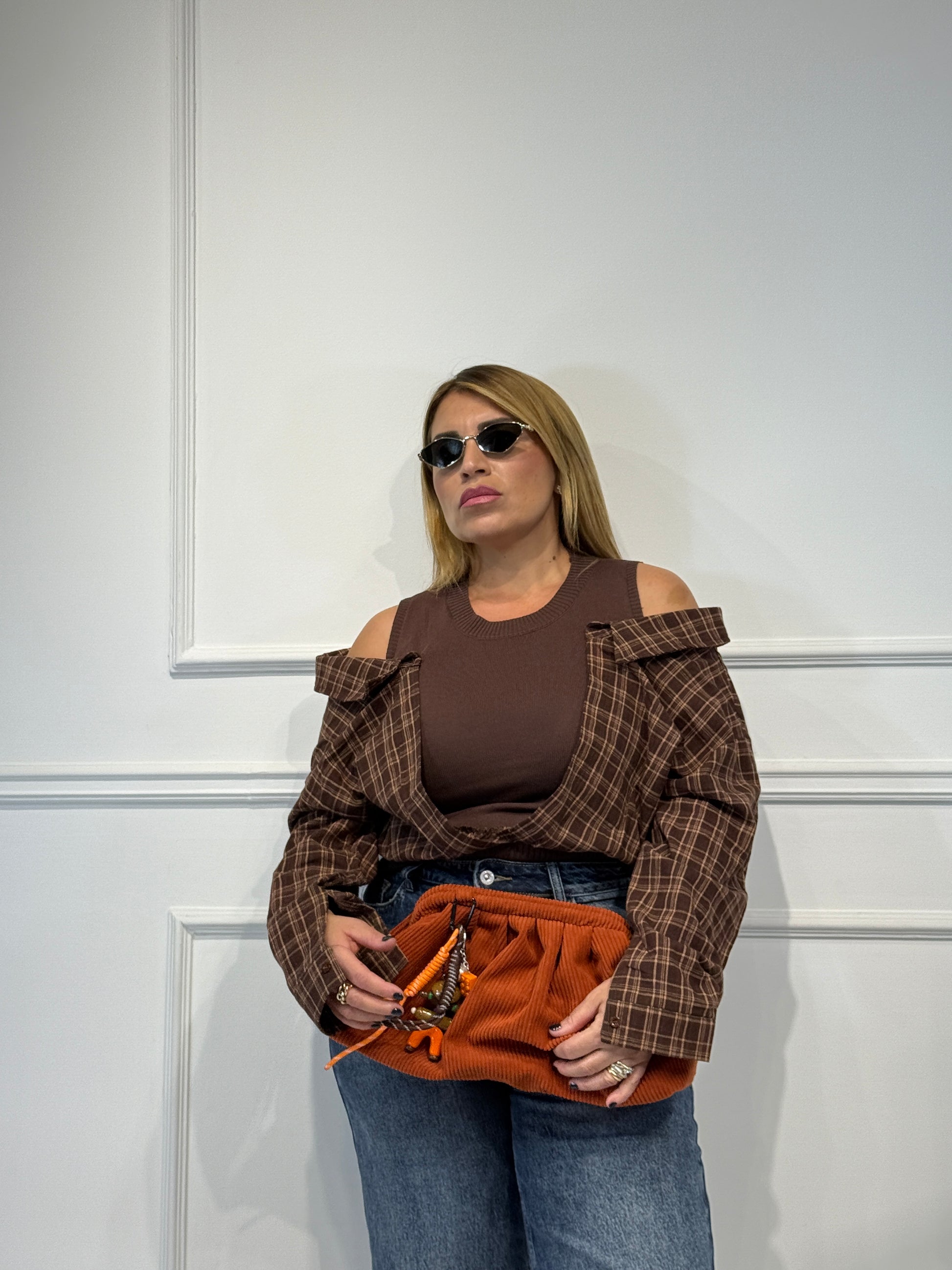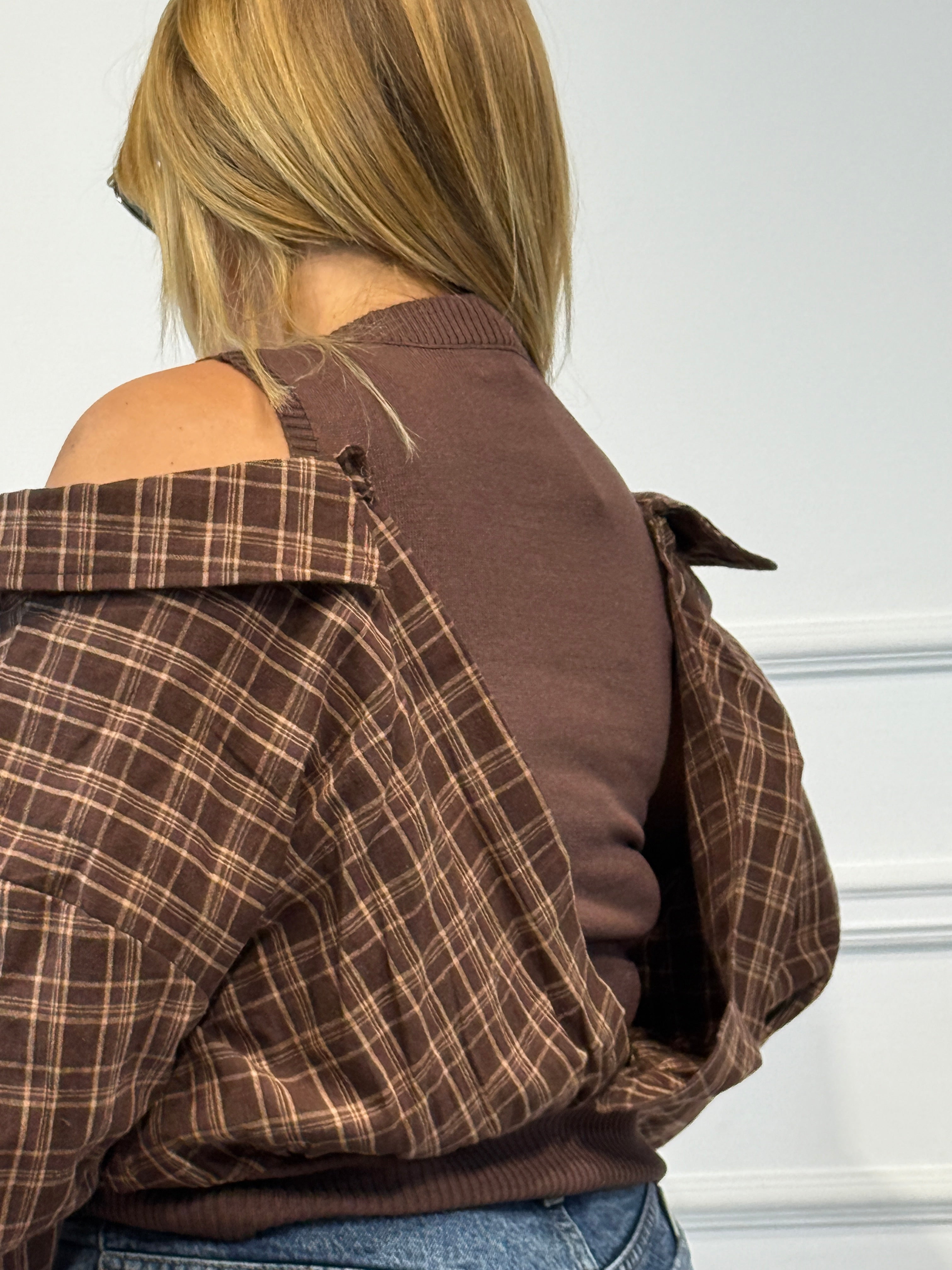Maglia composta da canotta con camicia check unita con spalla scoperta