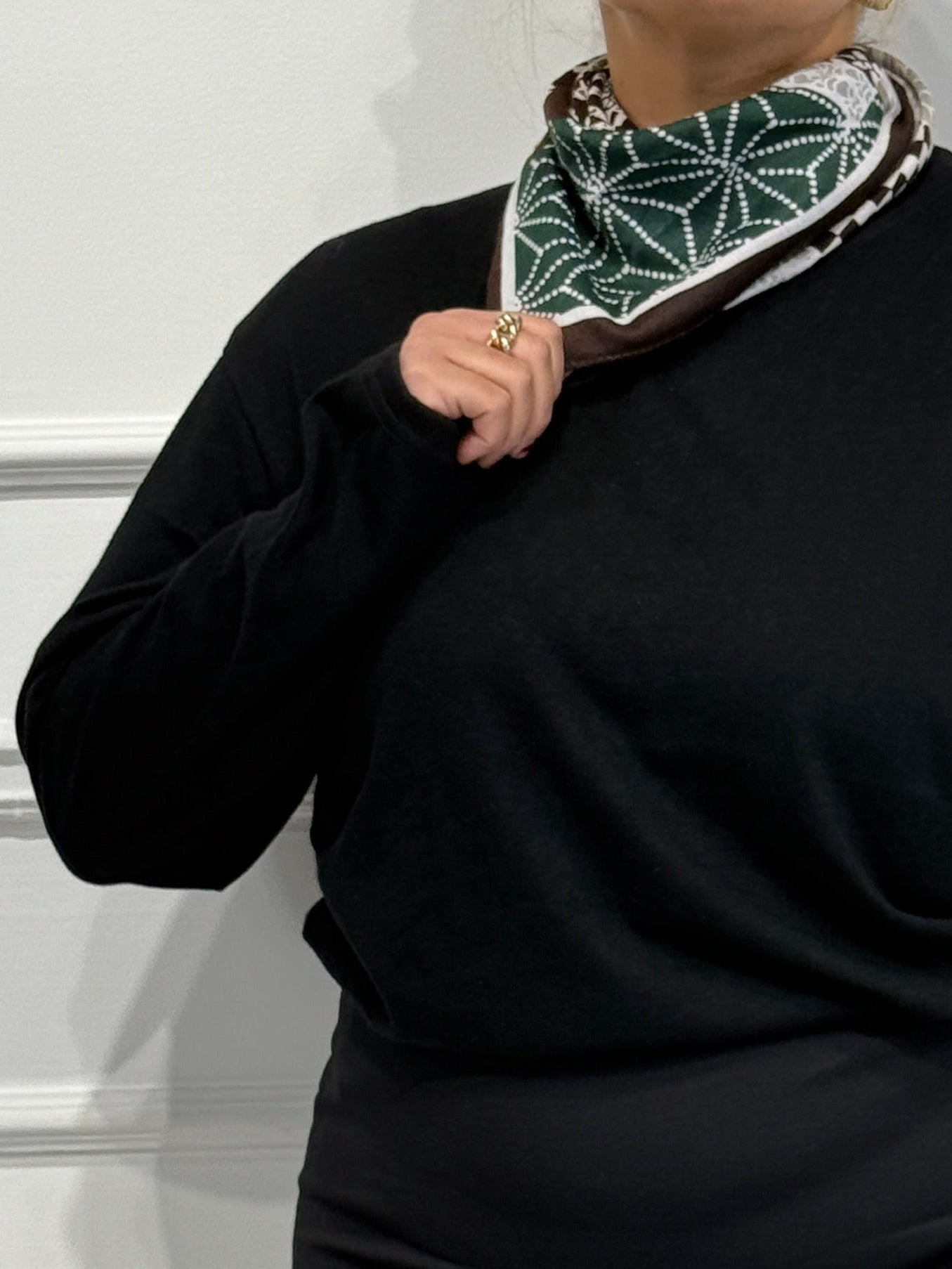 Maglia in caldo cotone girocollo manica lunga con foulard abbinato e spalline integrate