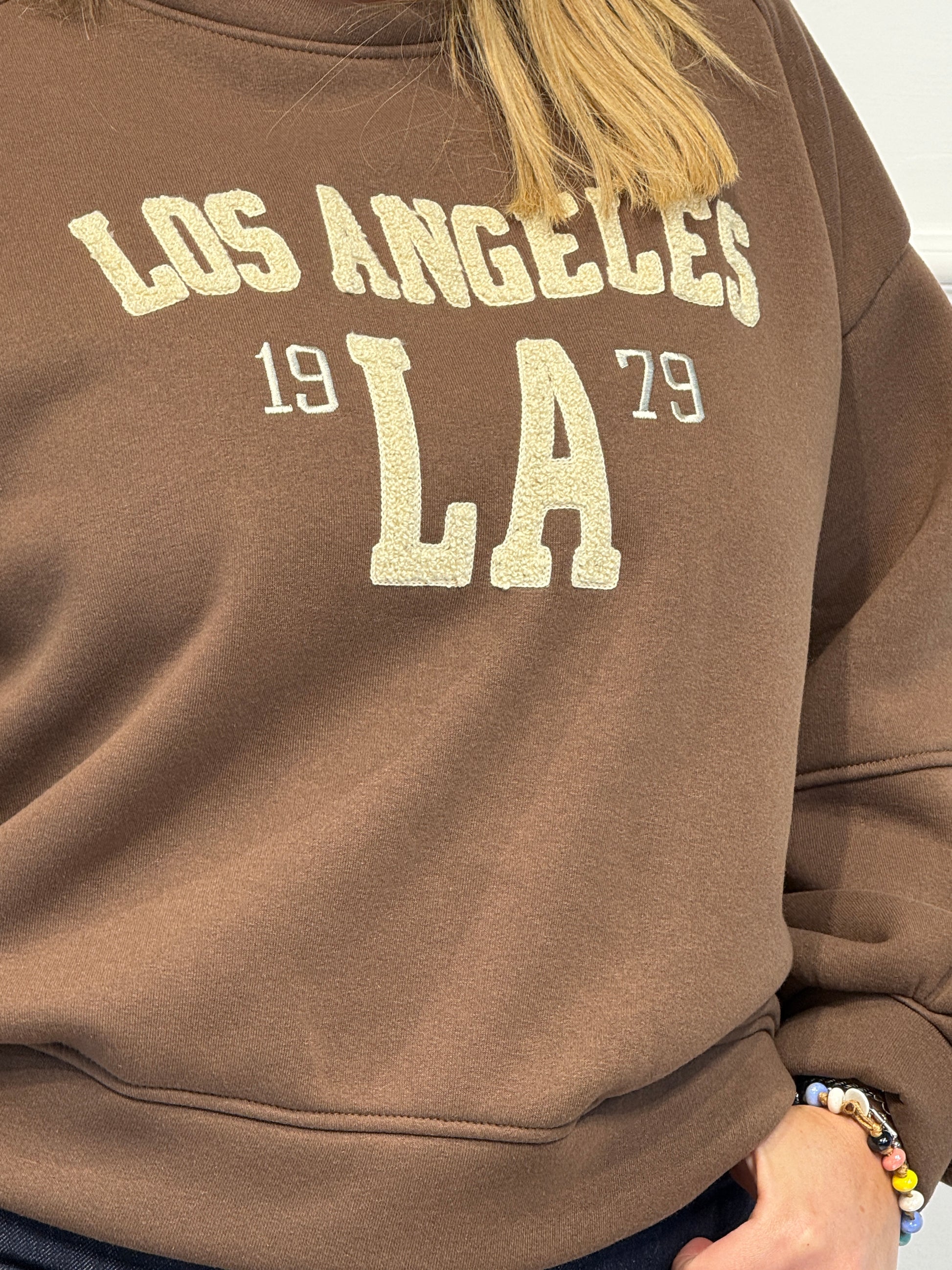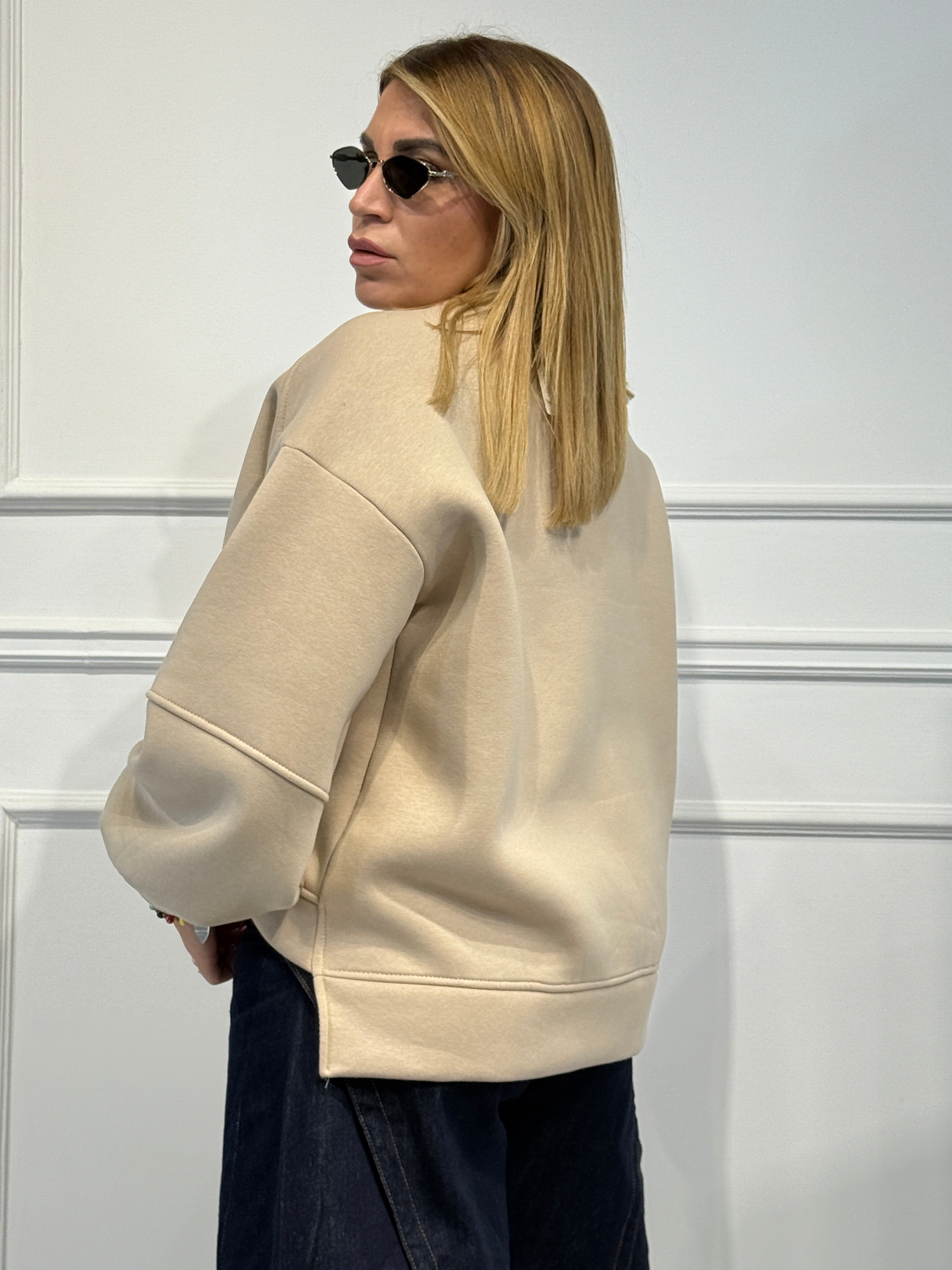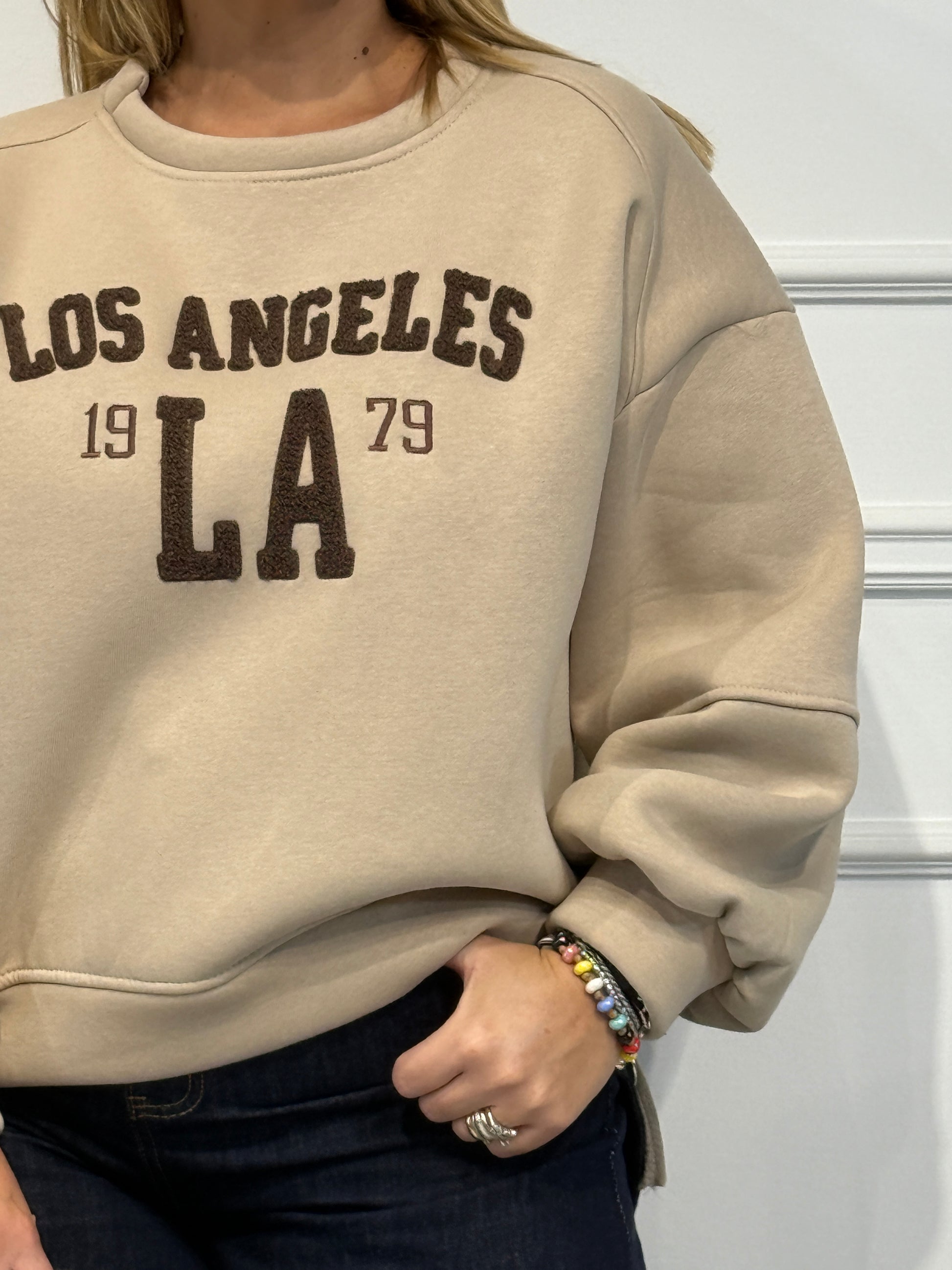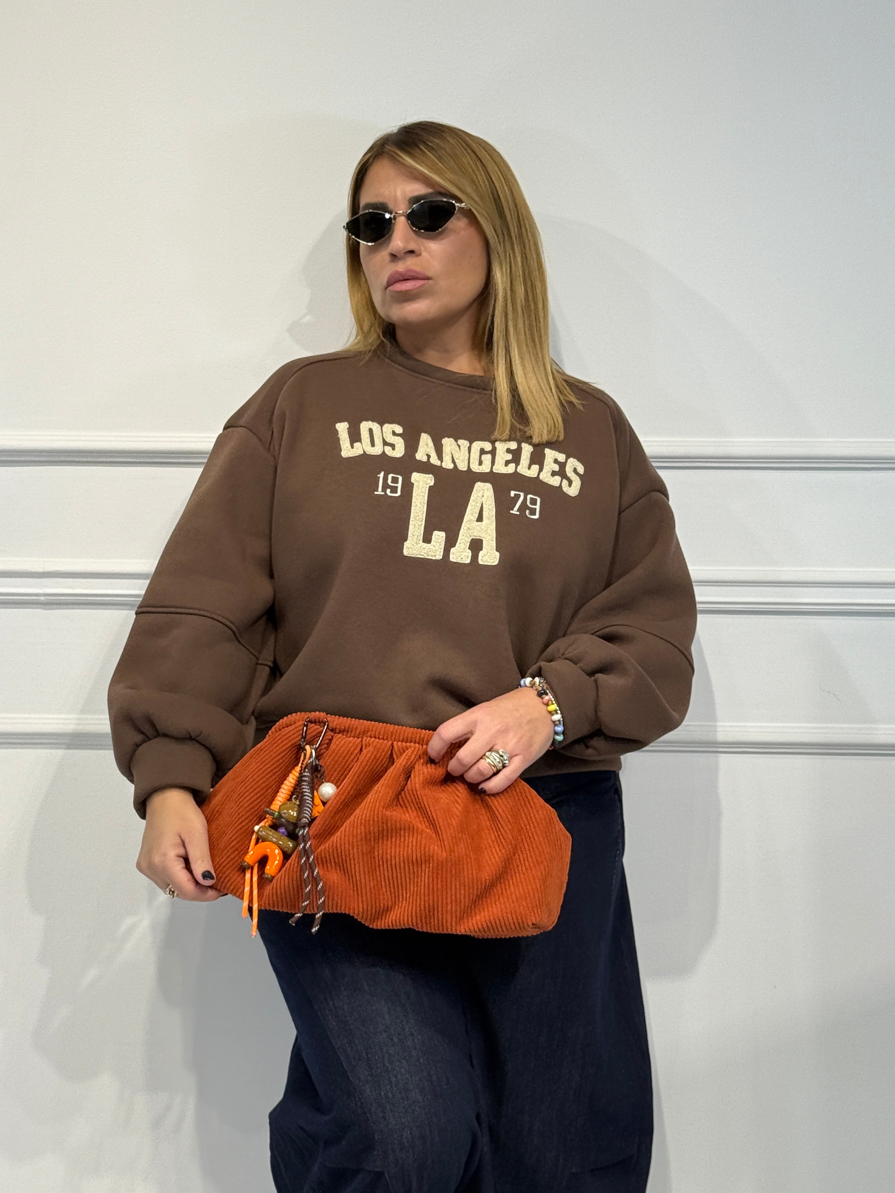 Felpa girocollo con stampa floccata tessuto garzato taglia unica veste fino ad una 48.