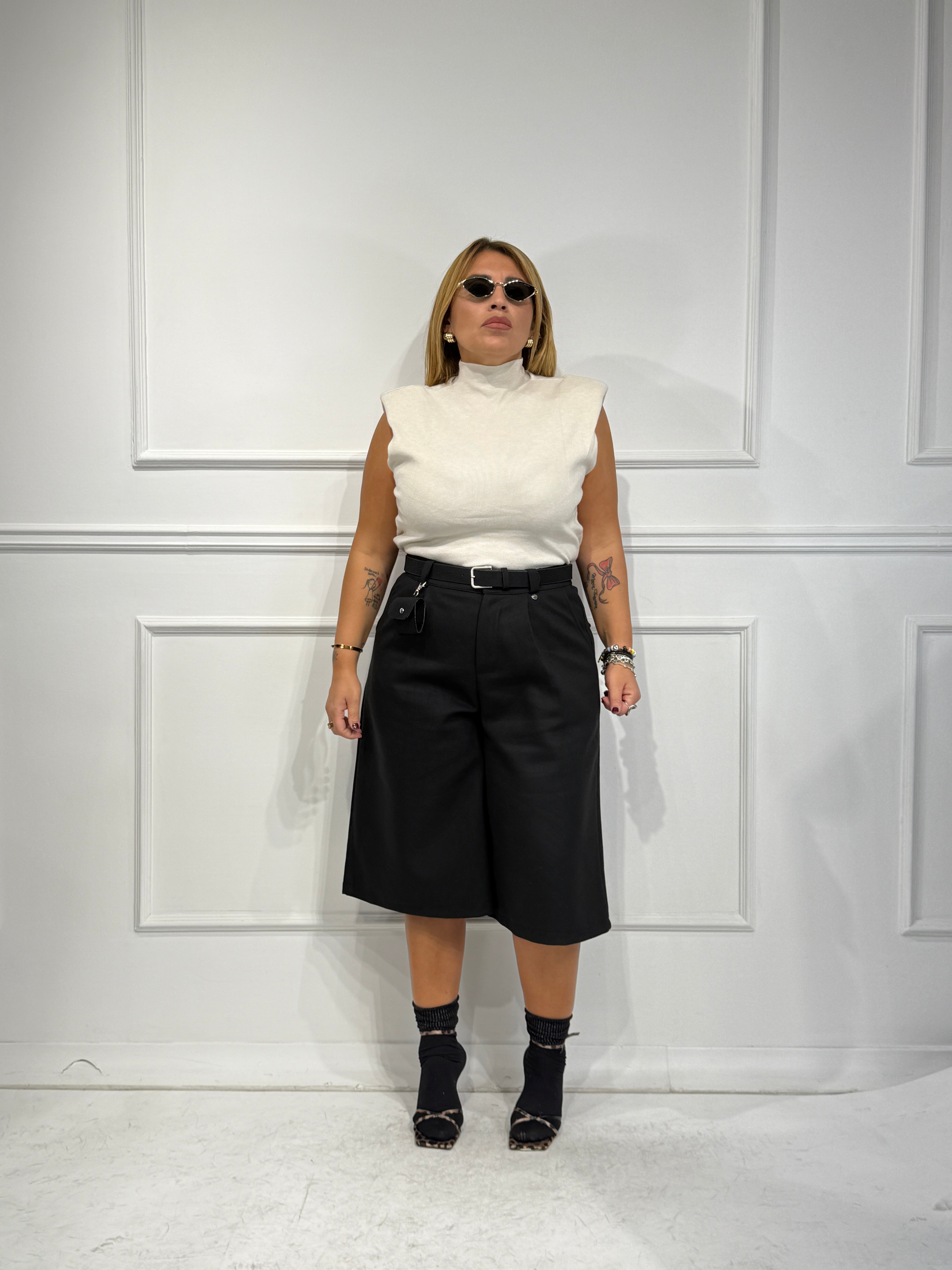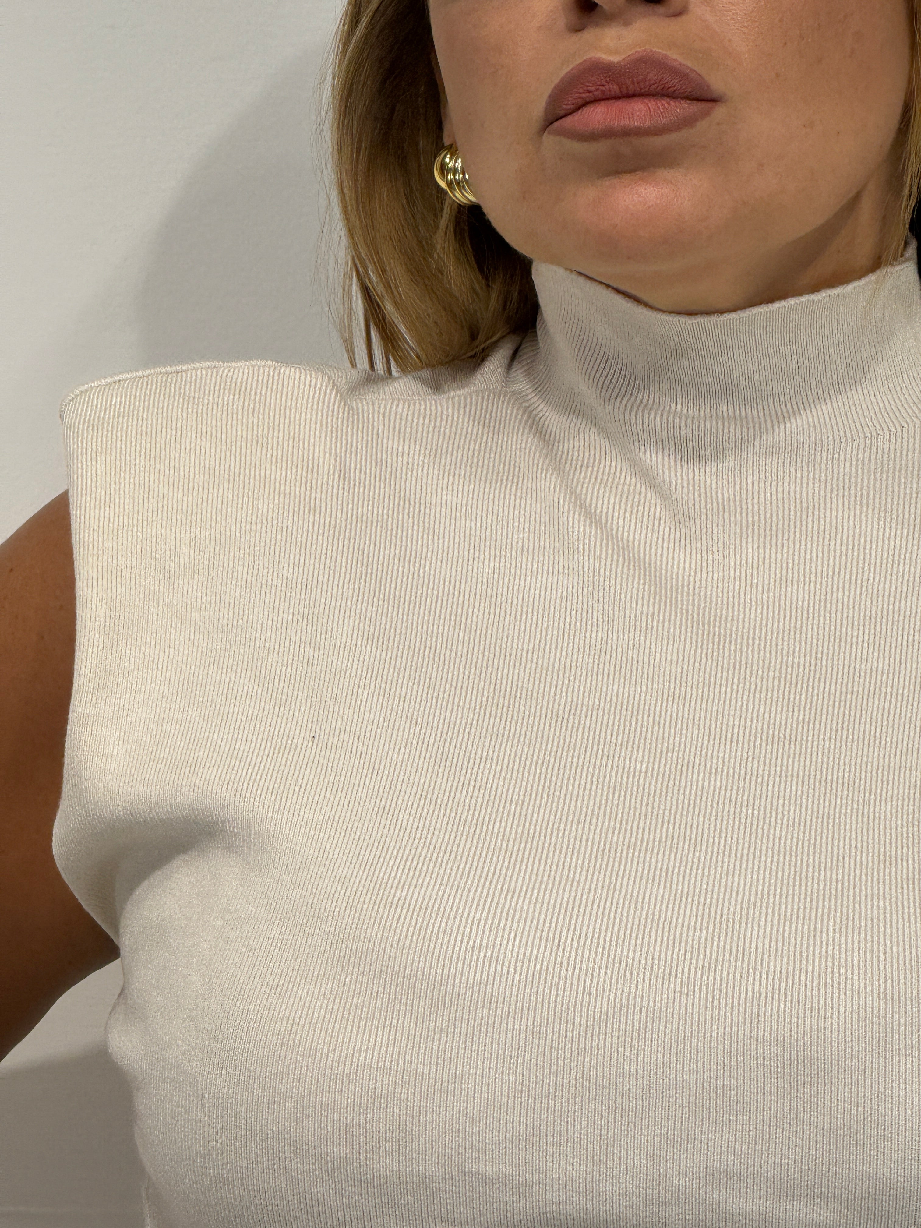 Maglia a costine mezzo collo con spalline taglia unica veste fino ad una 48.