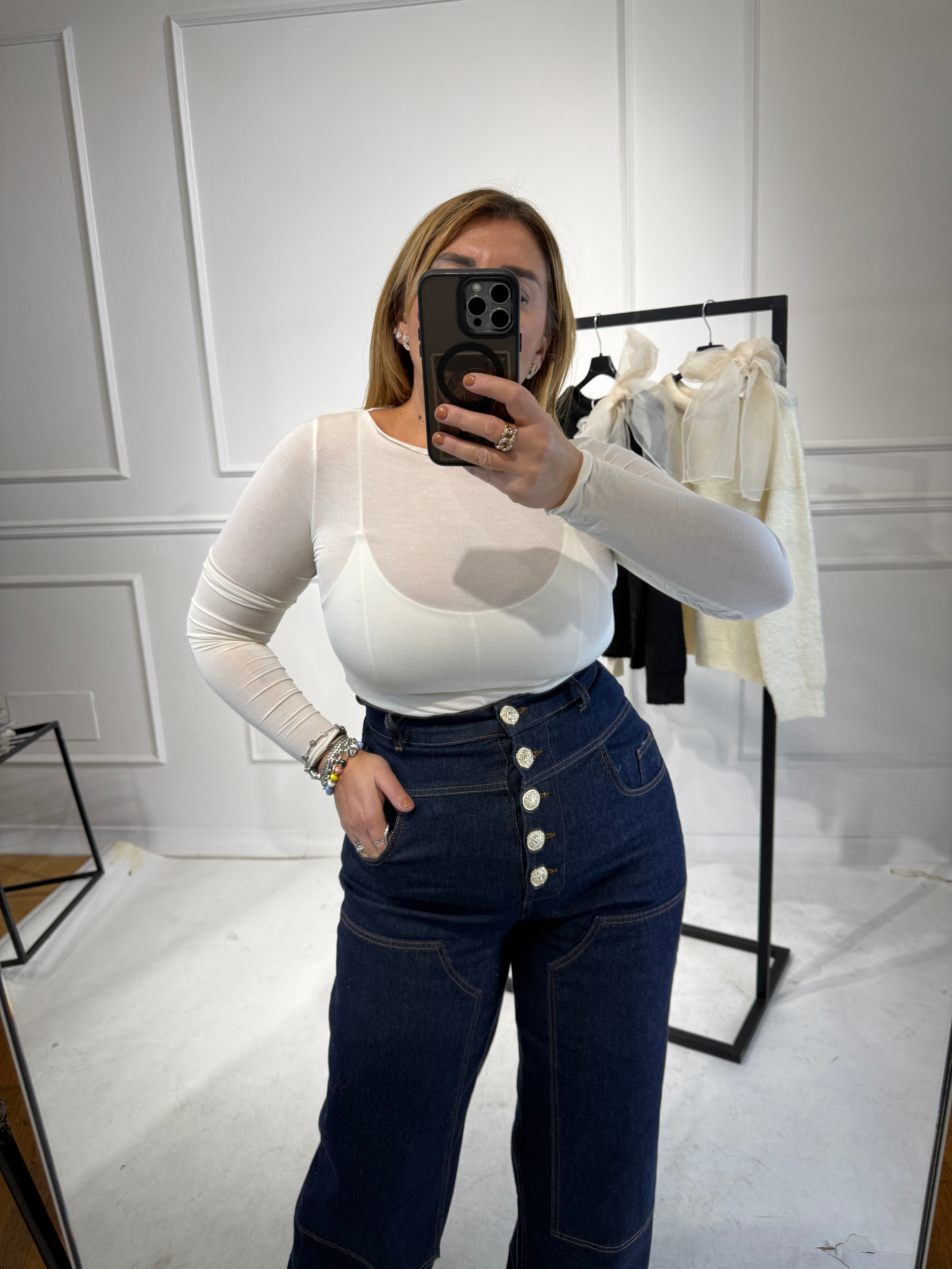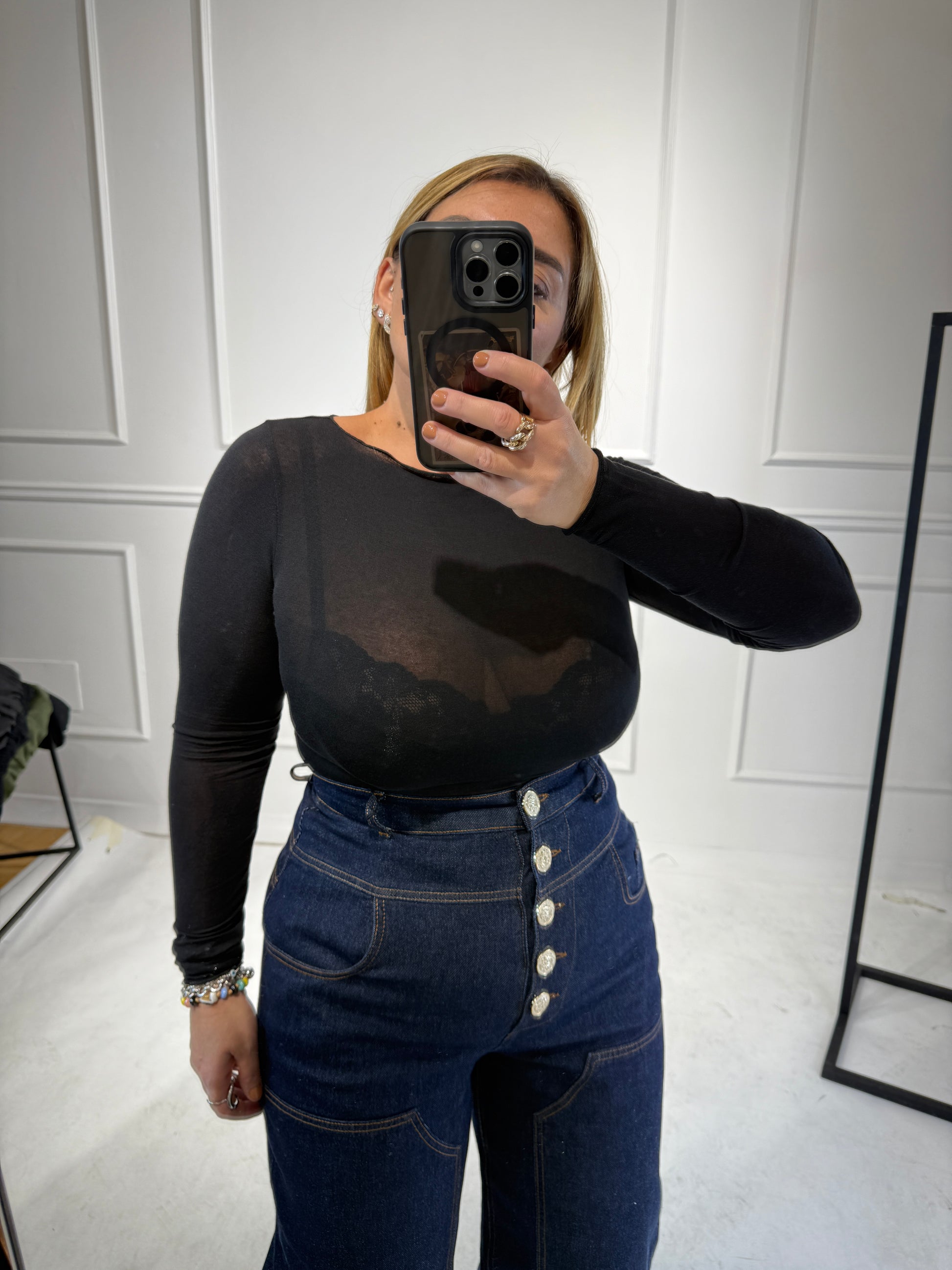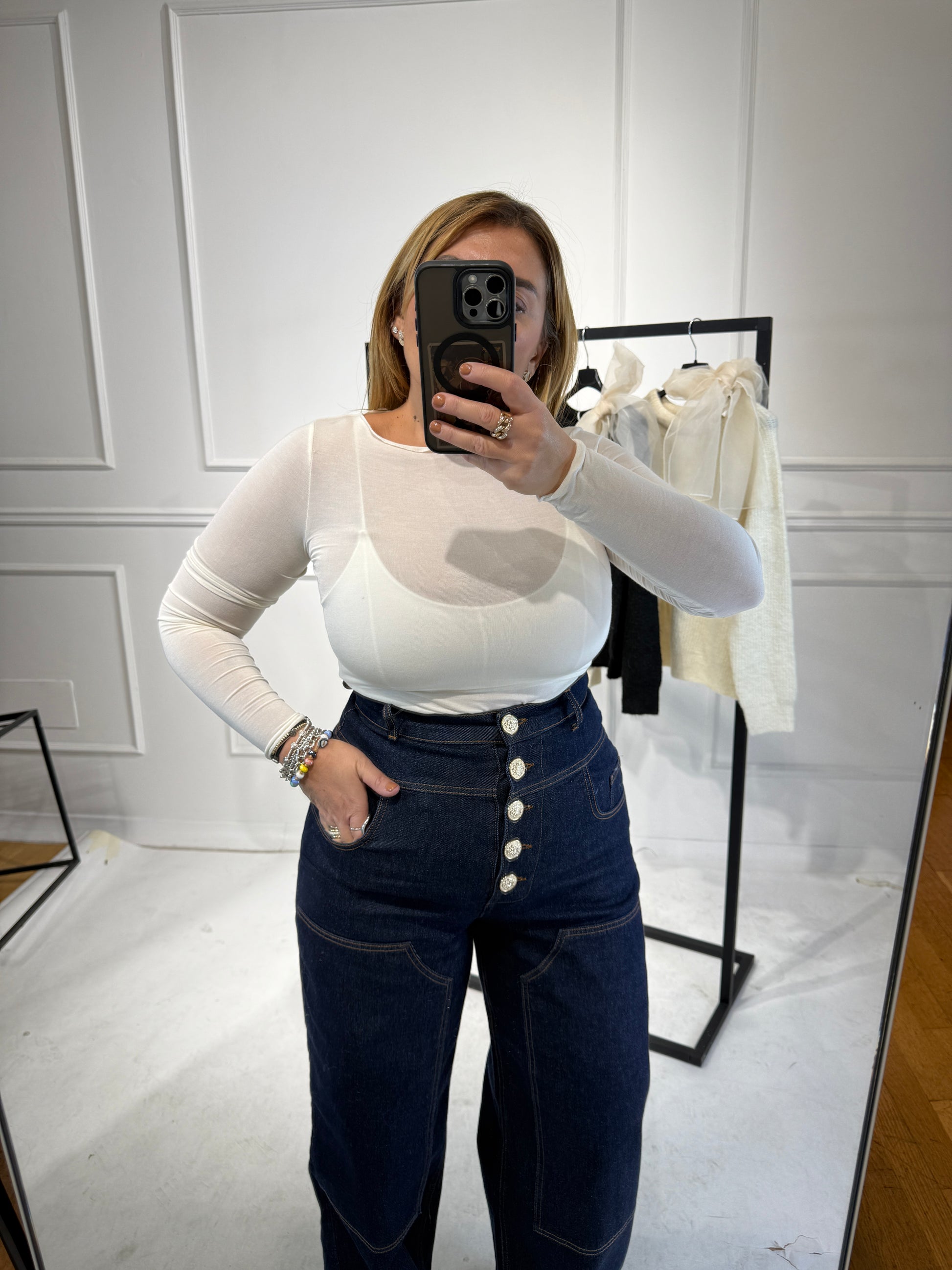 “Jeans a vita alta morbidi e comodi, non segnano e allungano tantissimo la gamba.”