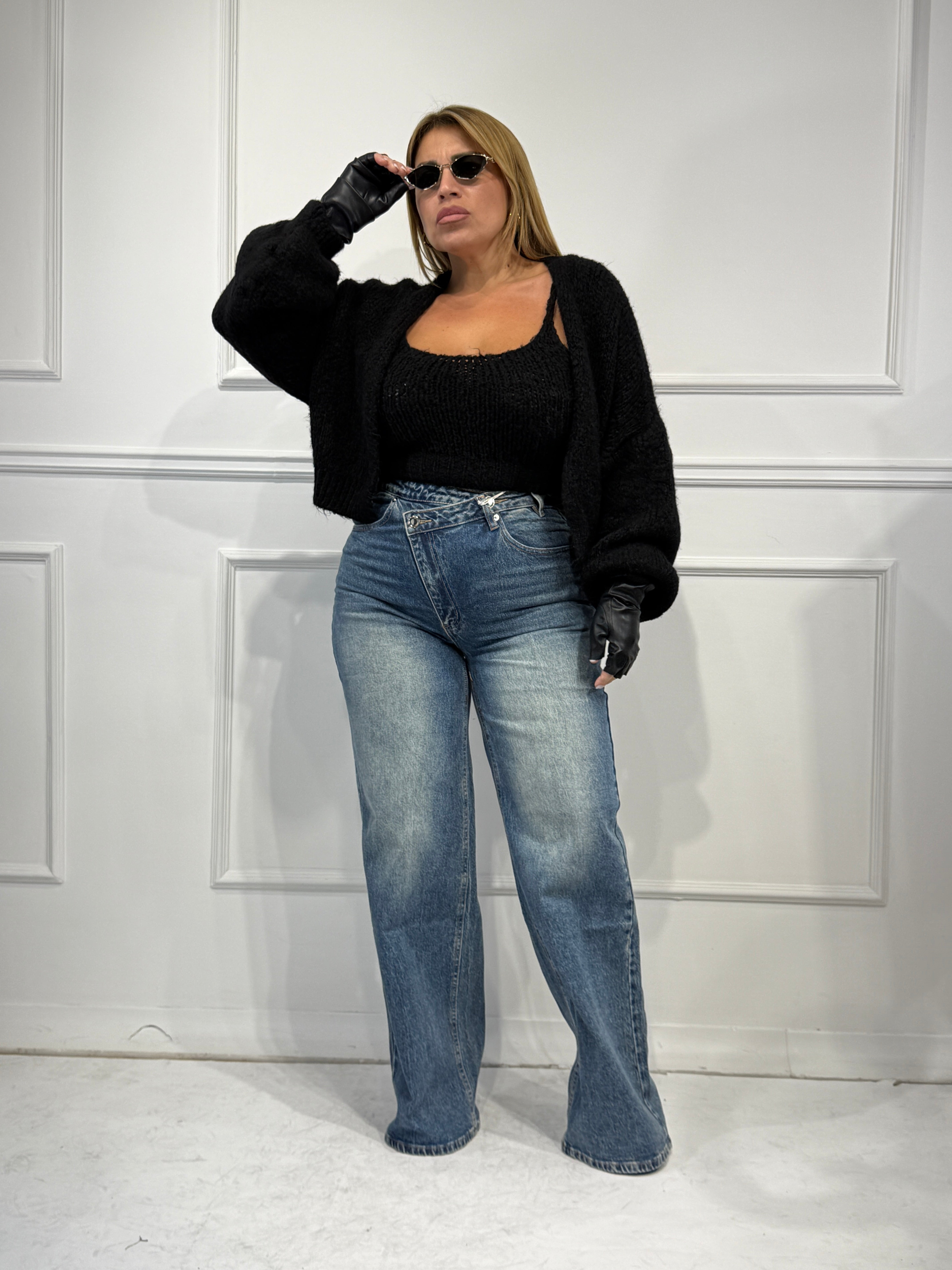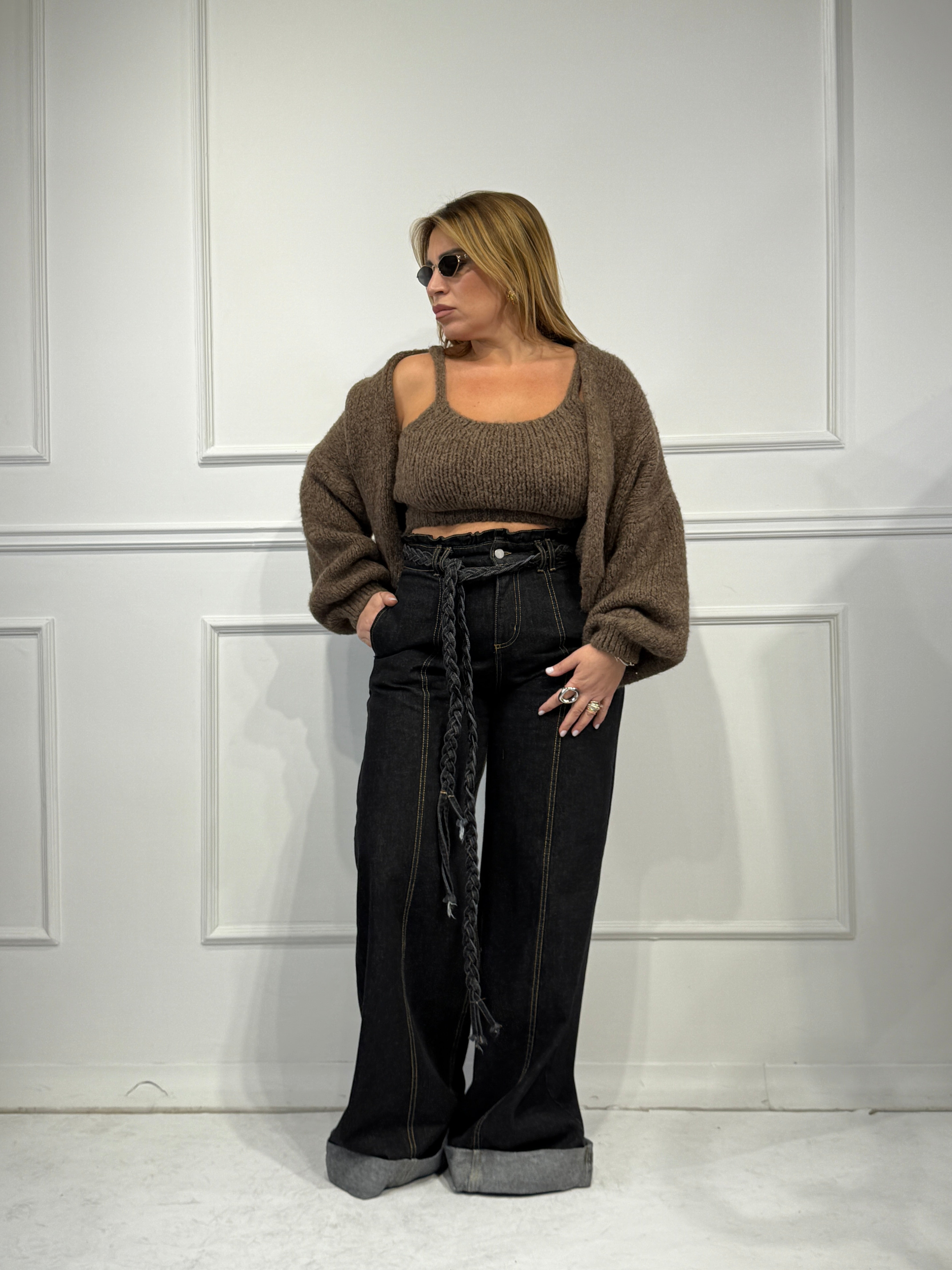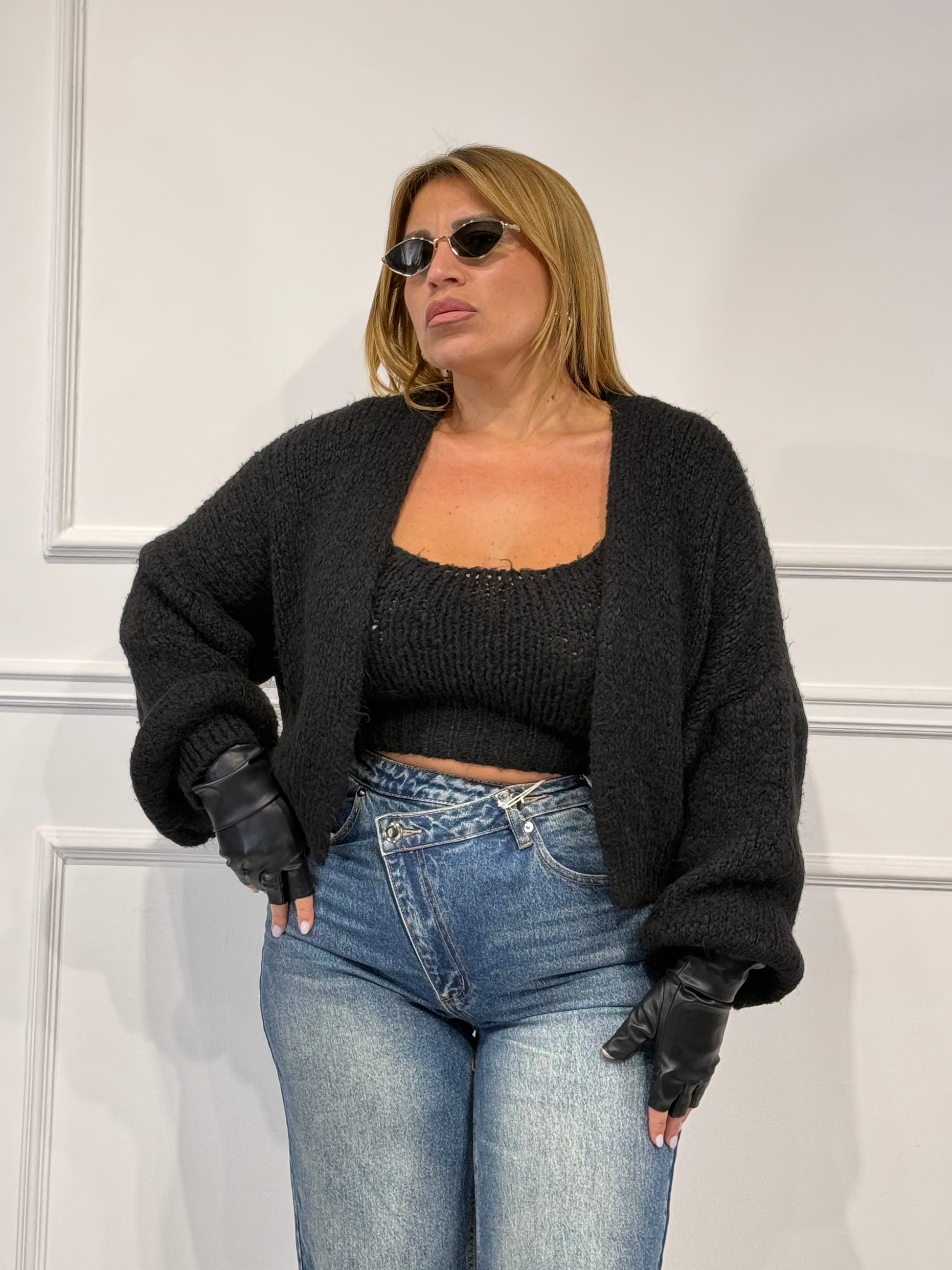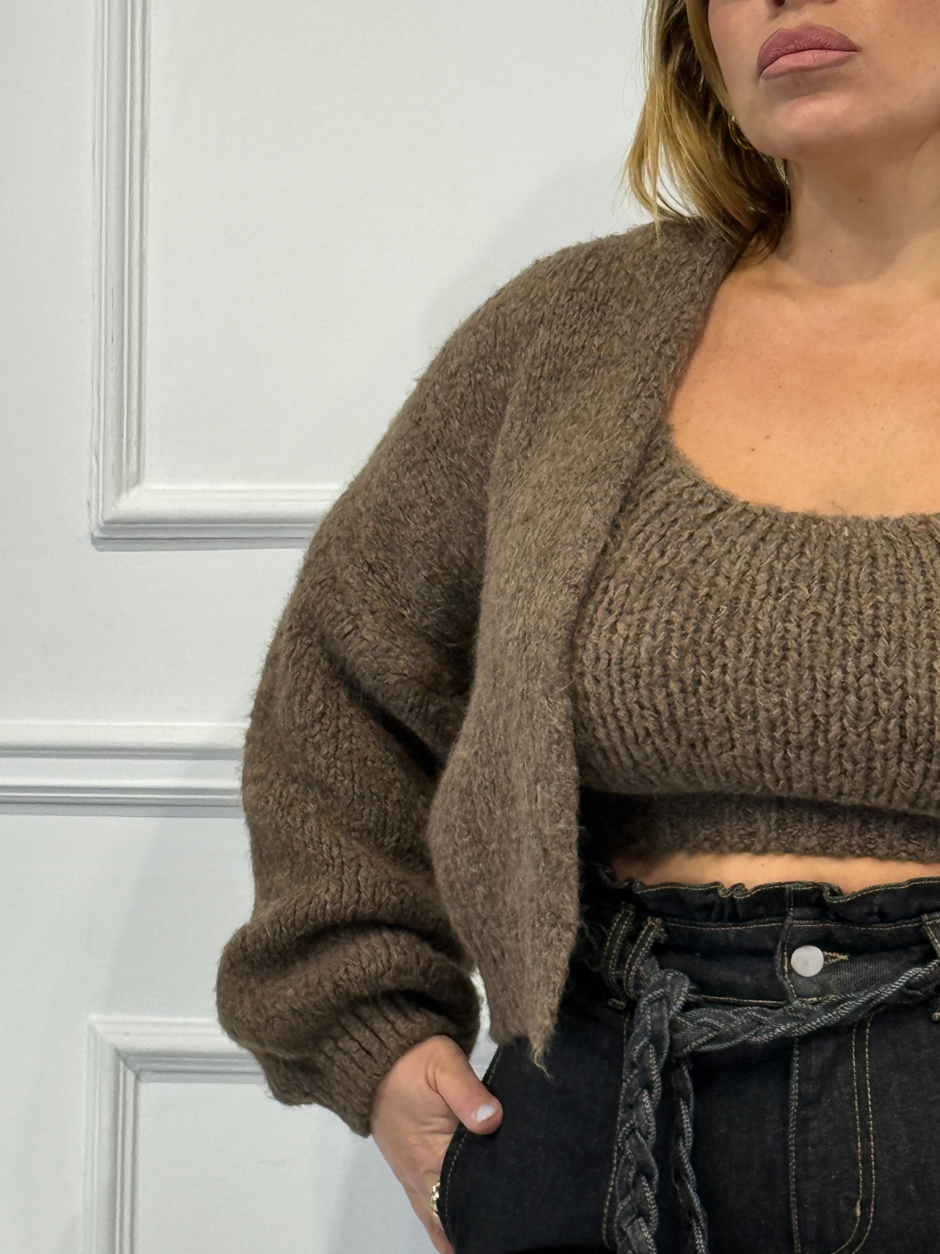 Twinset in lana composto da top con bretelle e cardigan ,taglia unica veste fino a 48