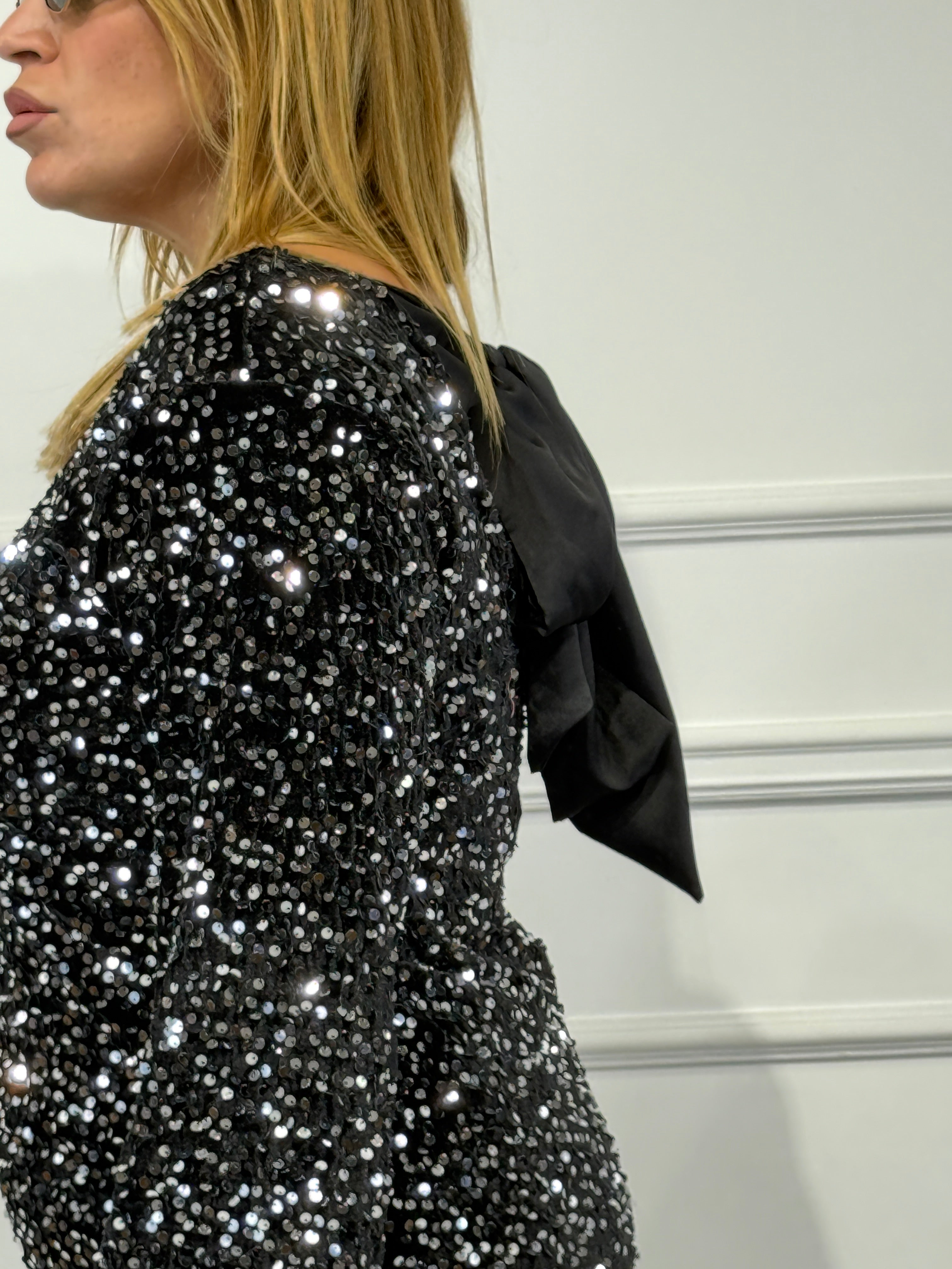 Abito in velluto e  paillettes con fiocco sul retro delle spalle  Taglia unica  veste da 42 fino a 48