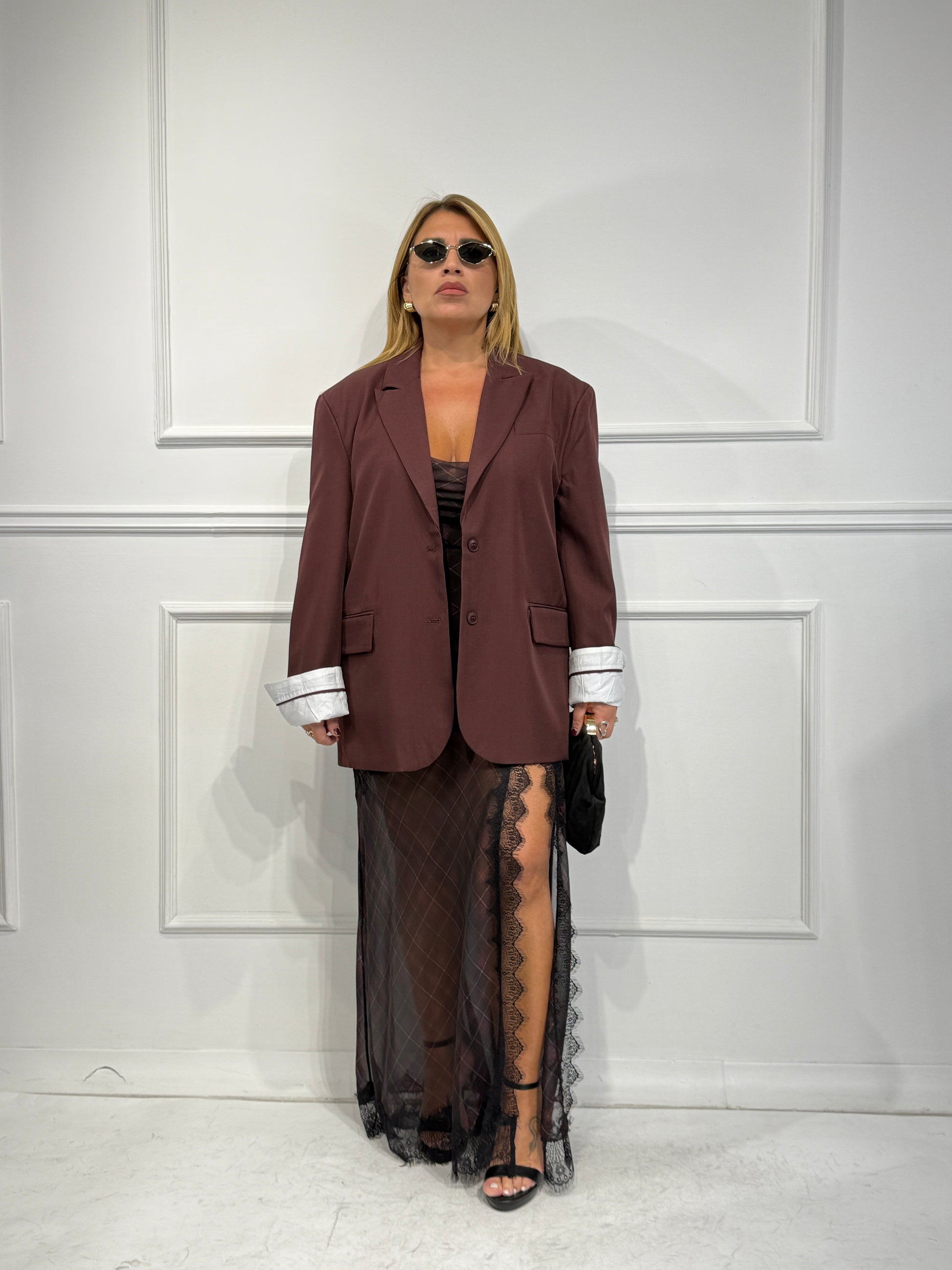 Giacca due bottoni,taglio uomo vestibilita'over ,con risvolto ai polsi,premium quality