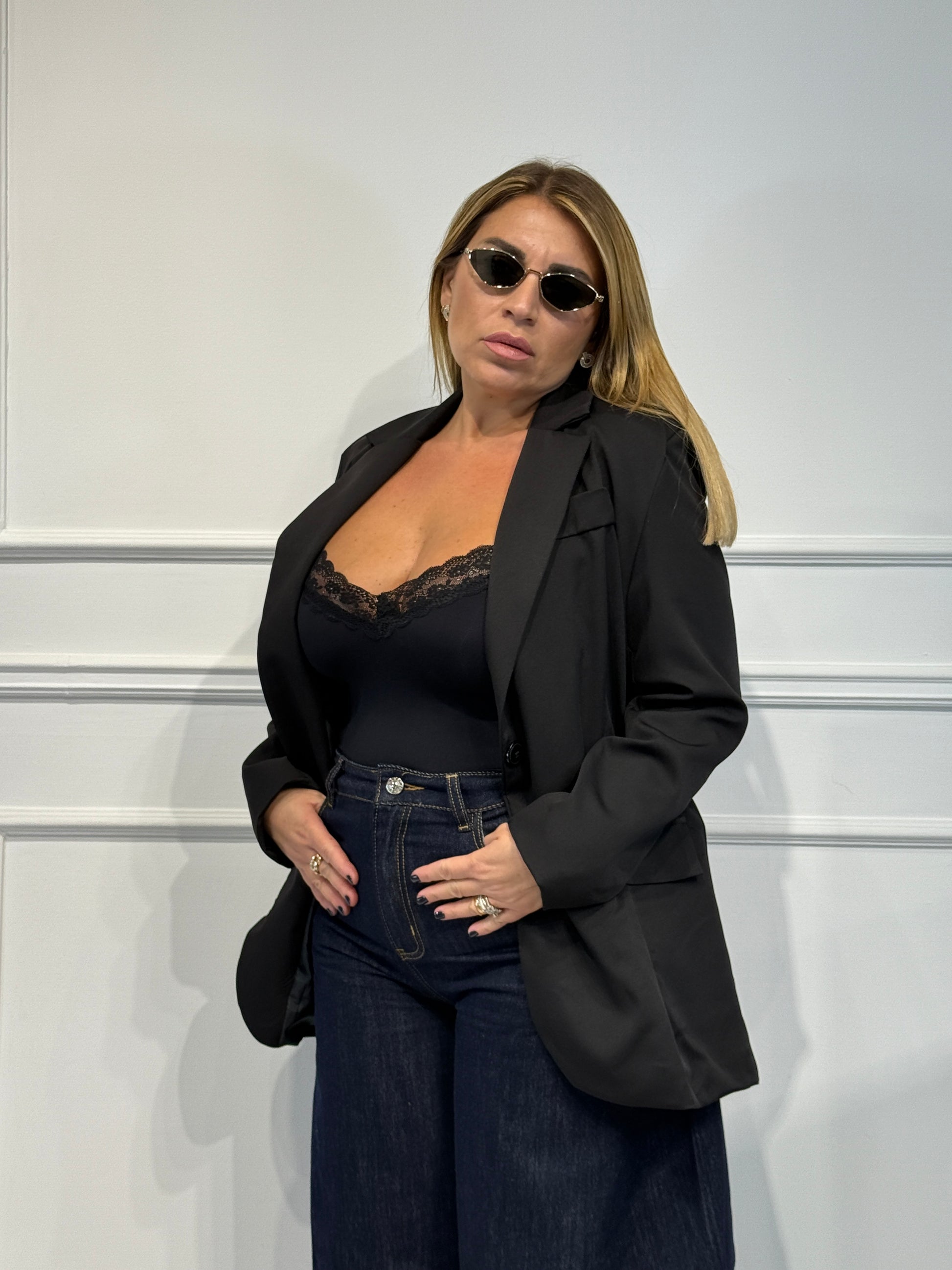 Body con bretella regolabile scollo a V con merletto elastico taglia unica veste fino ad una 46.