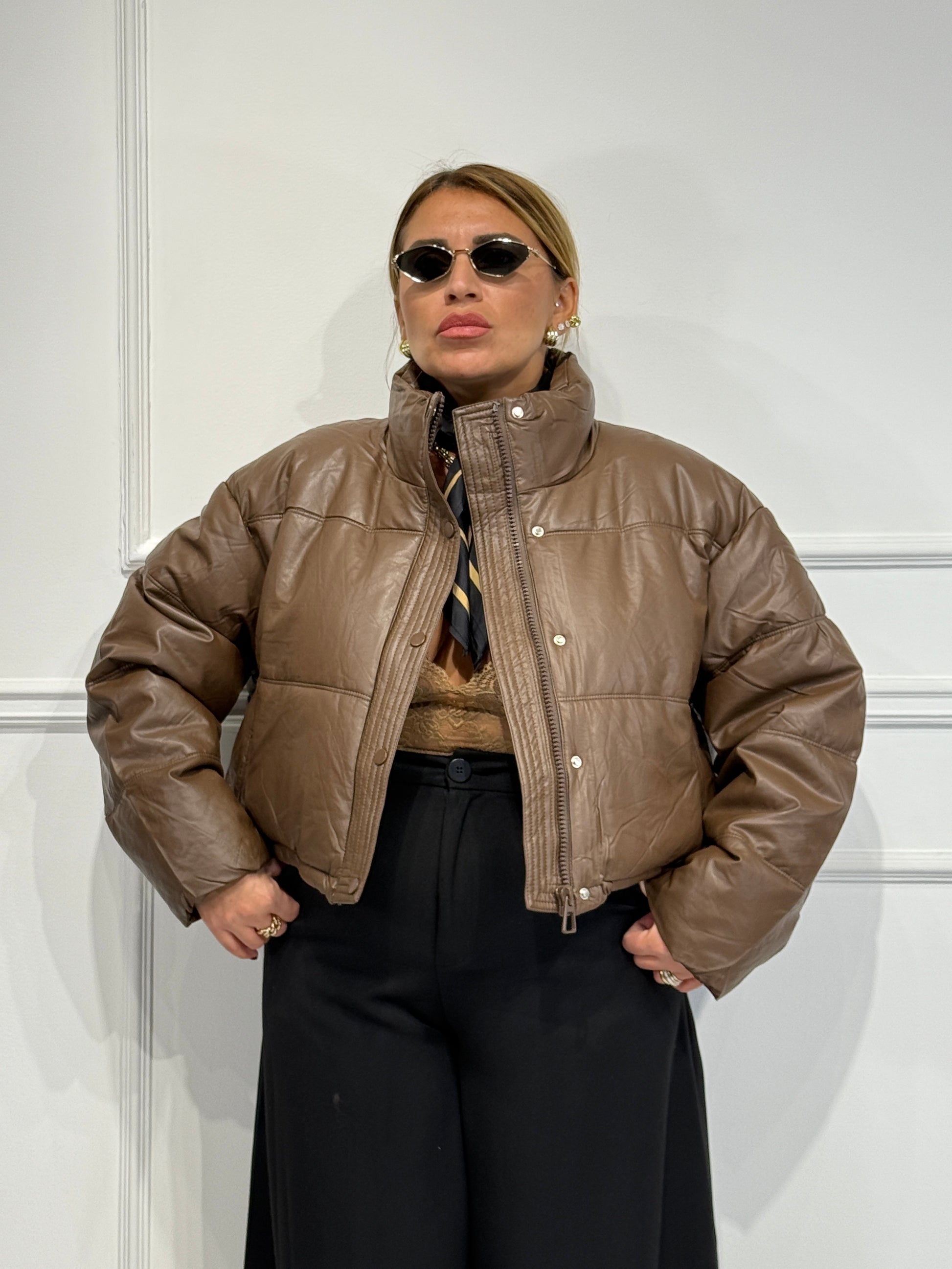Bomber ecopelle cropped con zip e ciappe disponibile taglia SM ML