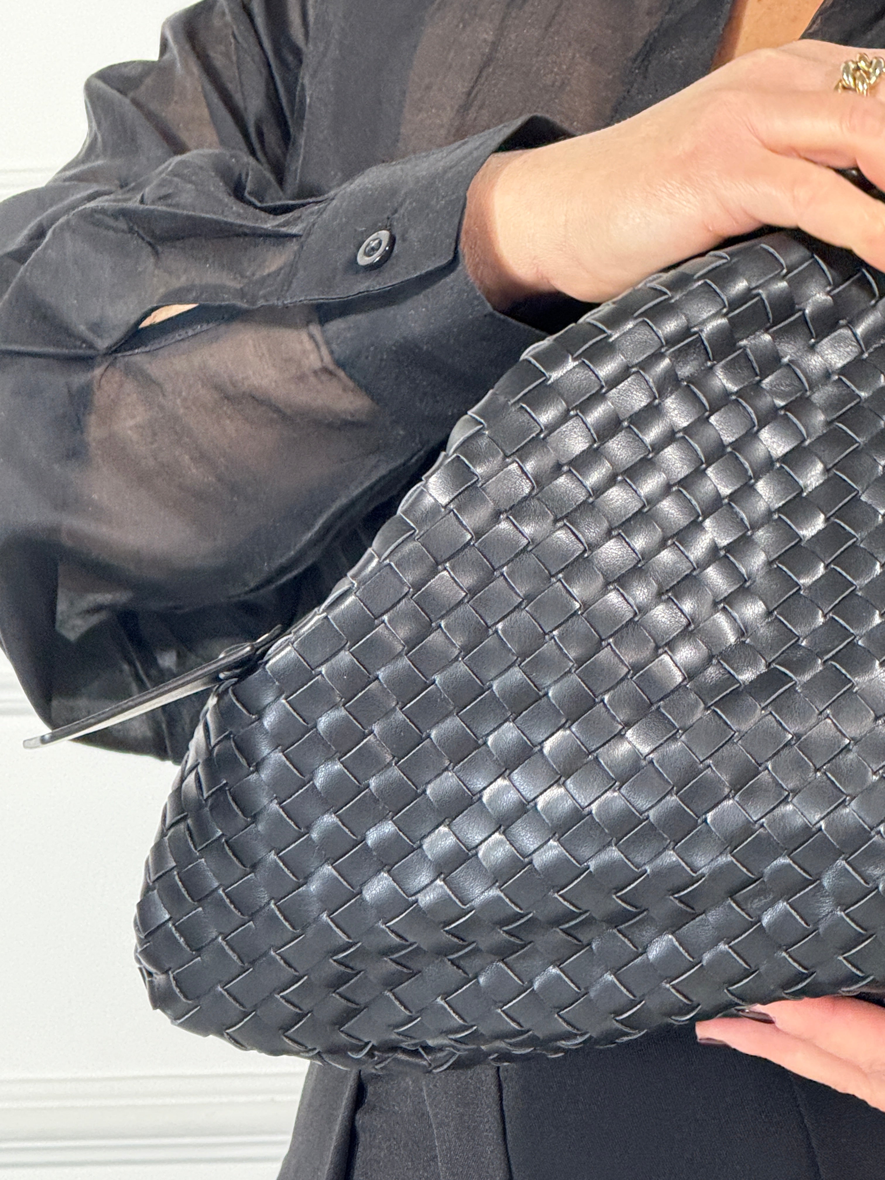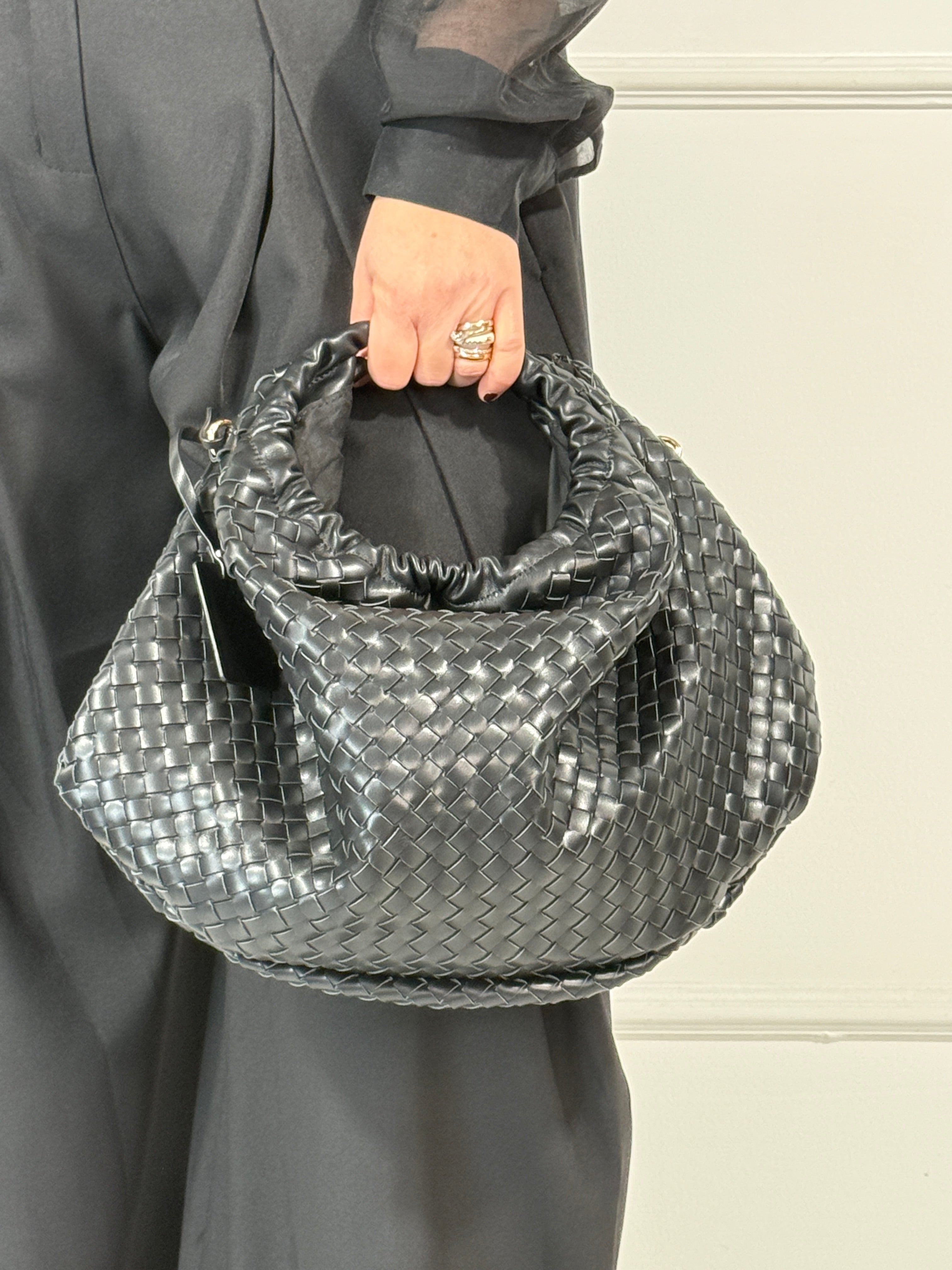 Borsello in ecopelle intrecciato ,tracolla removibile ,si puo'indossare a borsello e a borsa con manico