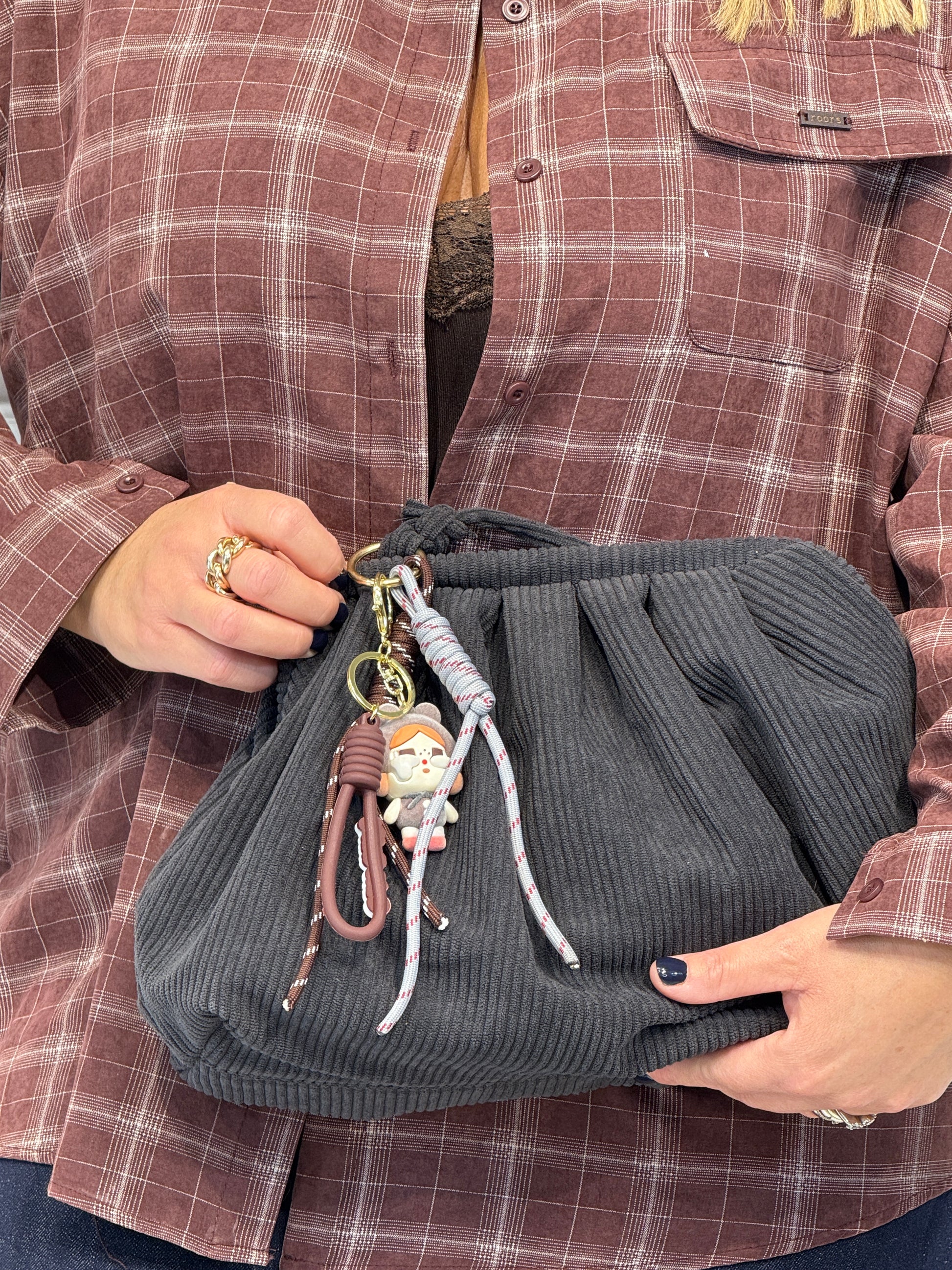 Borsello in velluto a coste ,tracolla removibile ,piu' accessorio charms