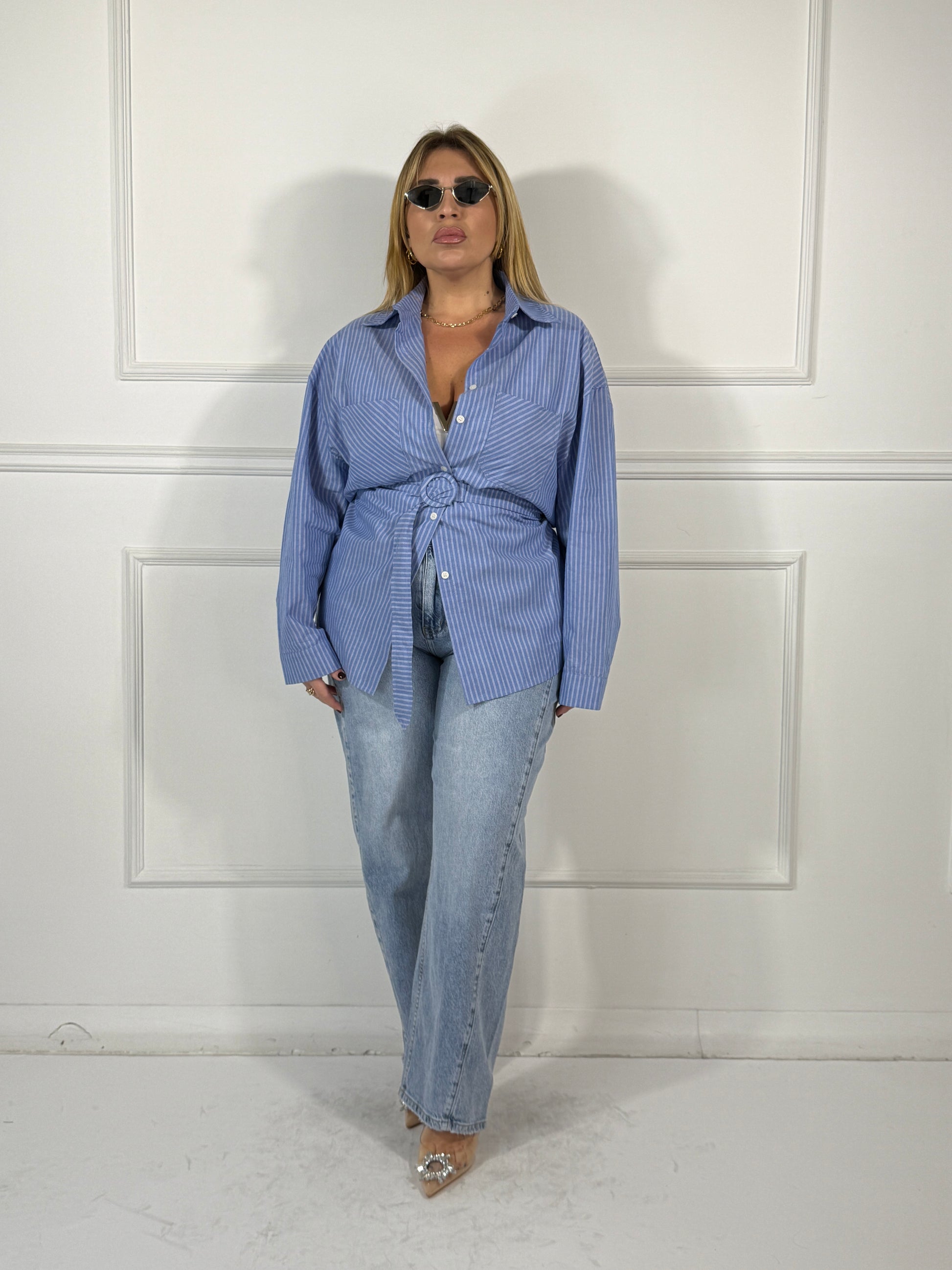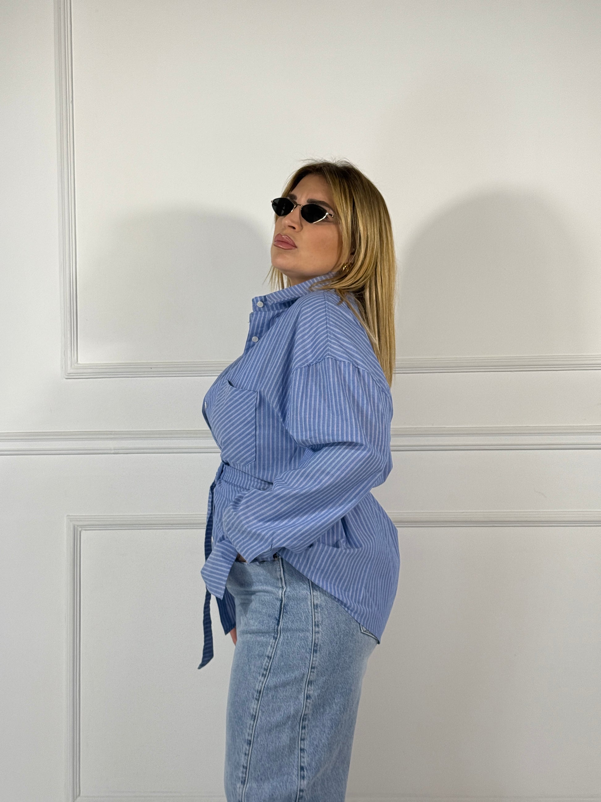 Camicia a righe over size con cintura in vita removibile taglia unica veste fino ad una 48