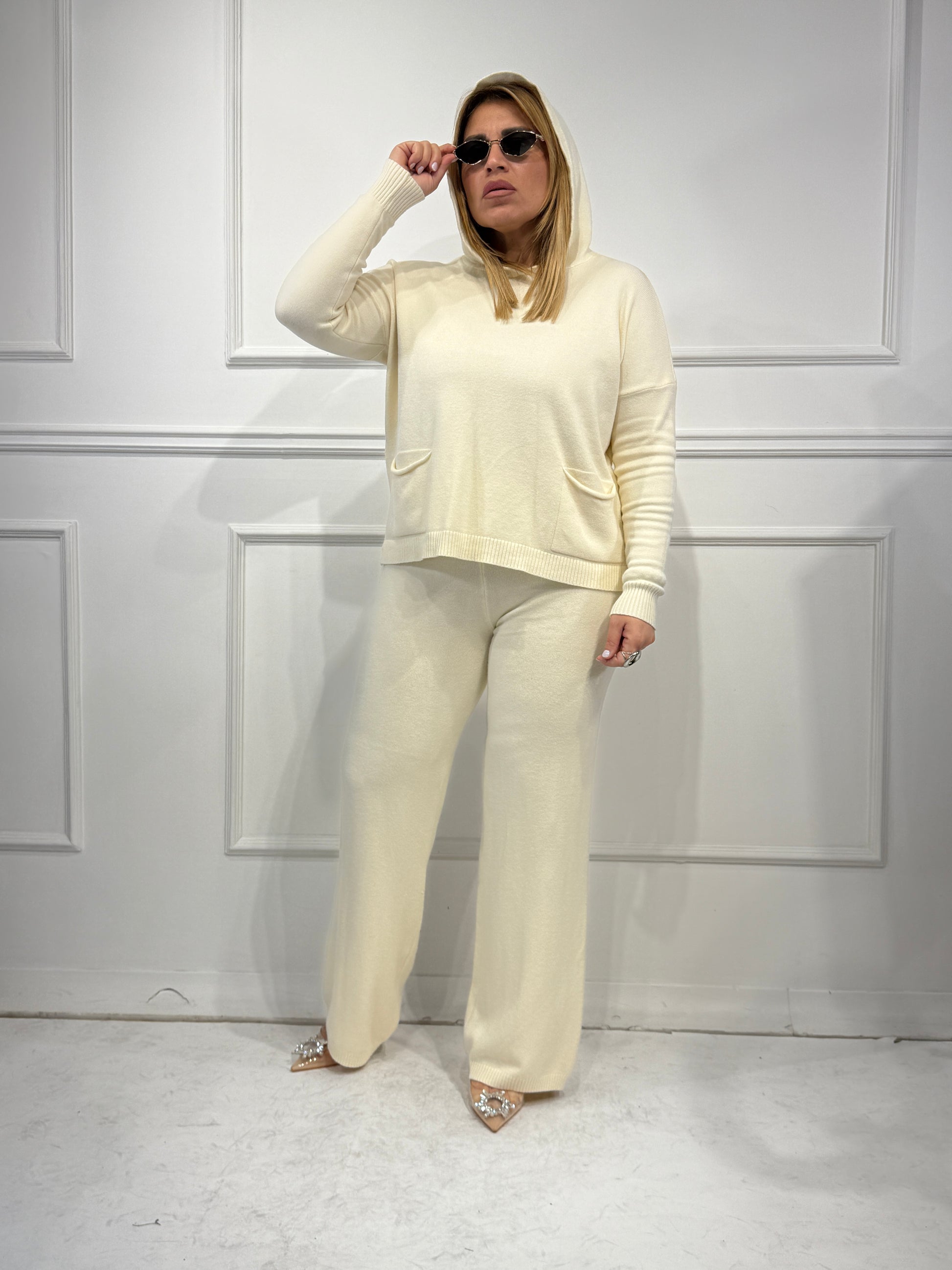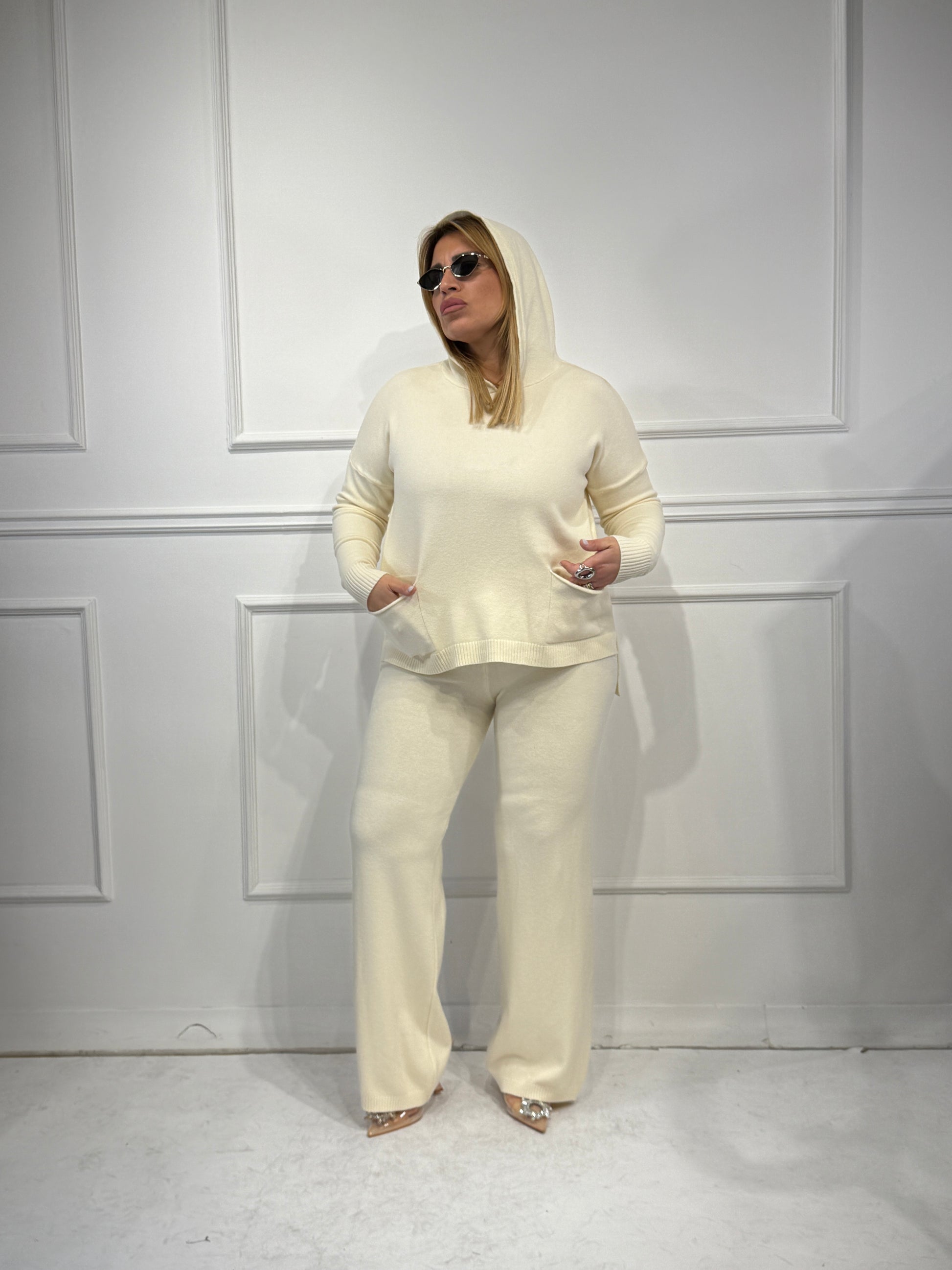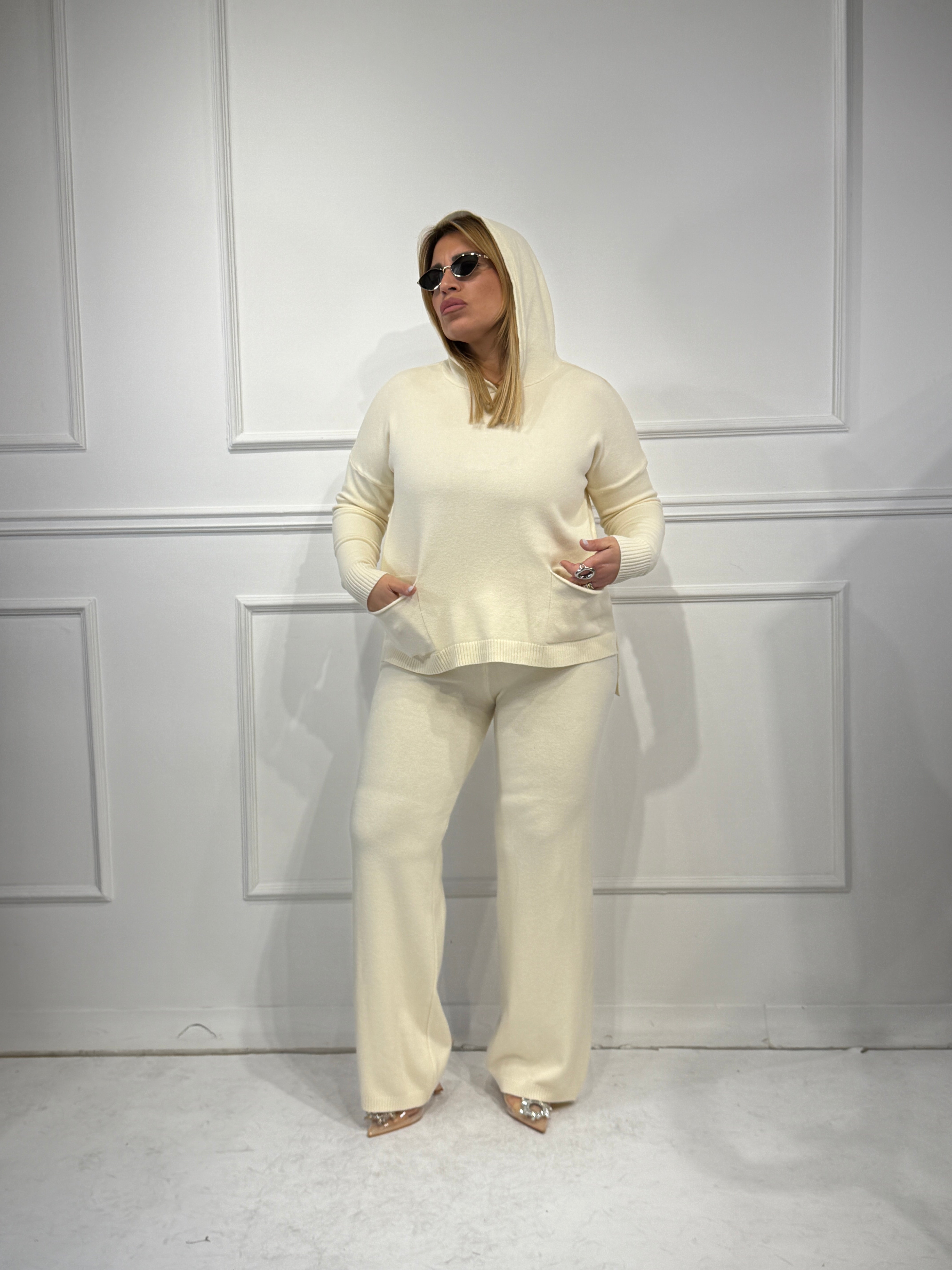 Coordinato in lanetta  rasata maglia con cappuccio pantalone con elastico.Taglia unica veste da una S ad una L
