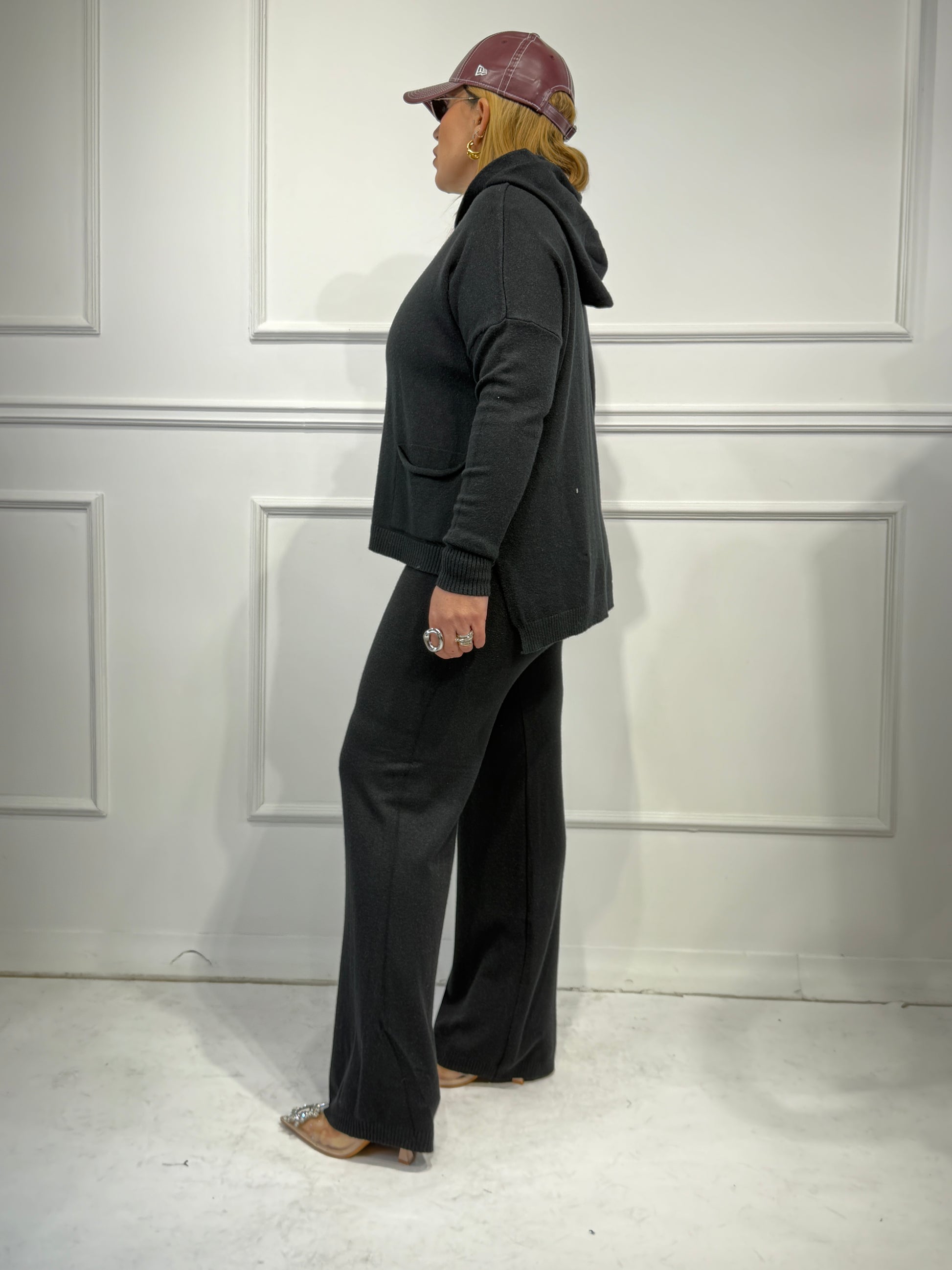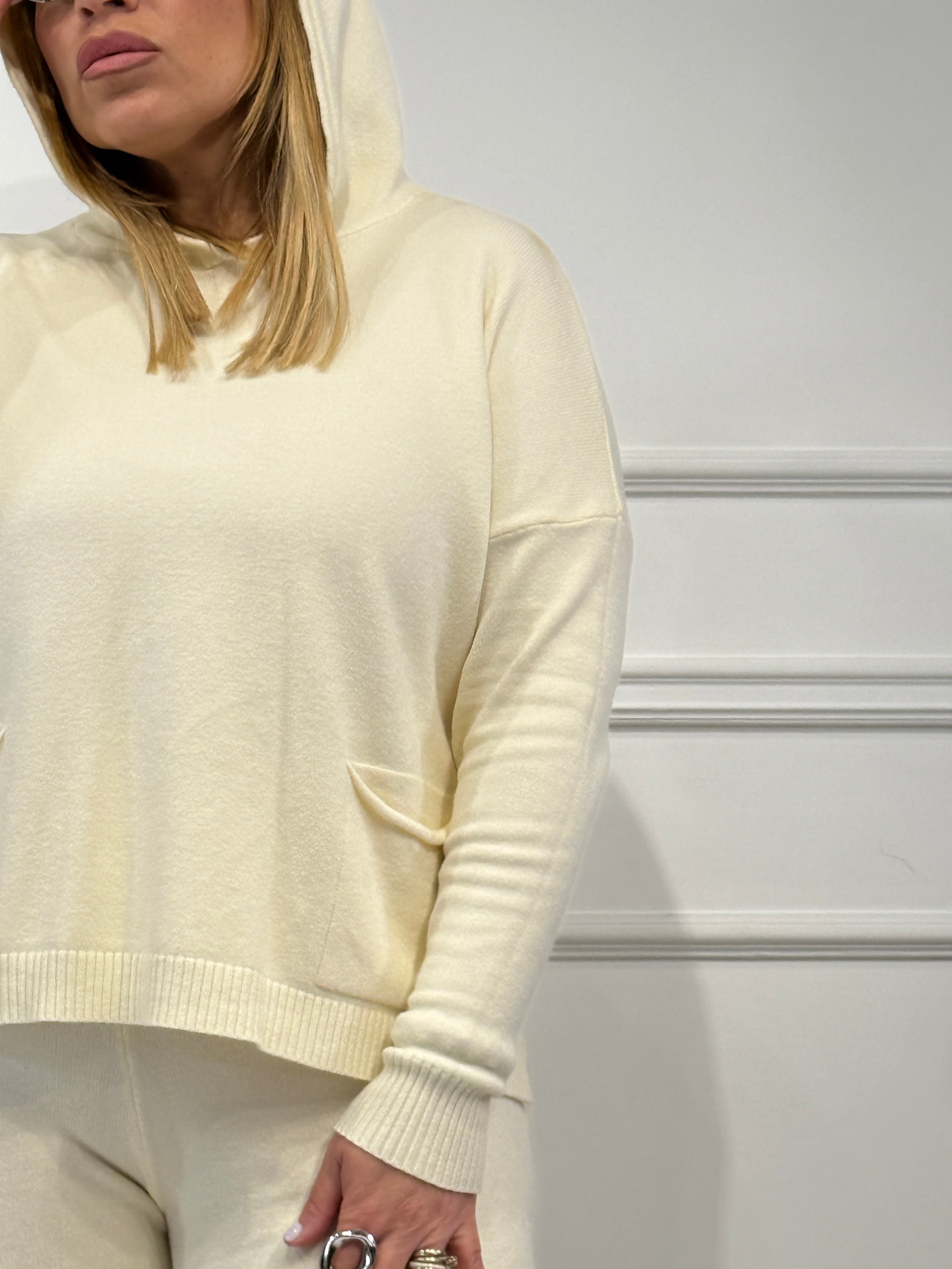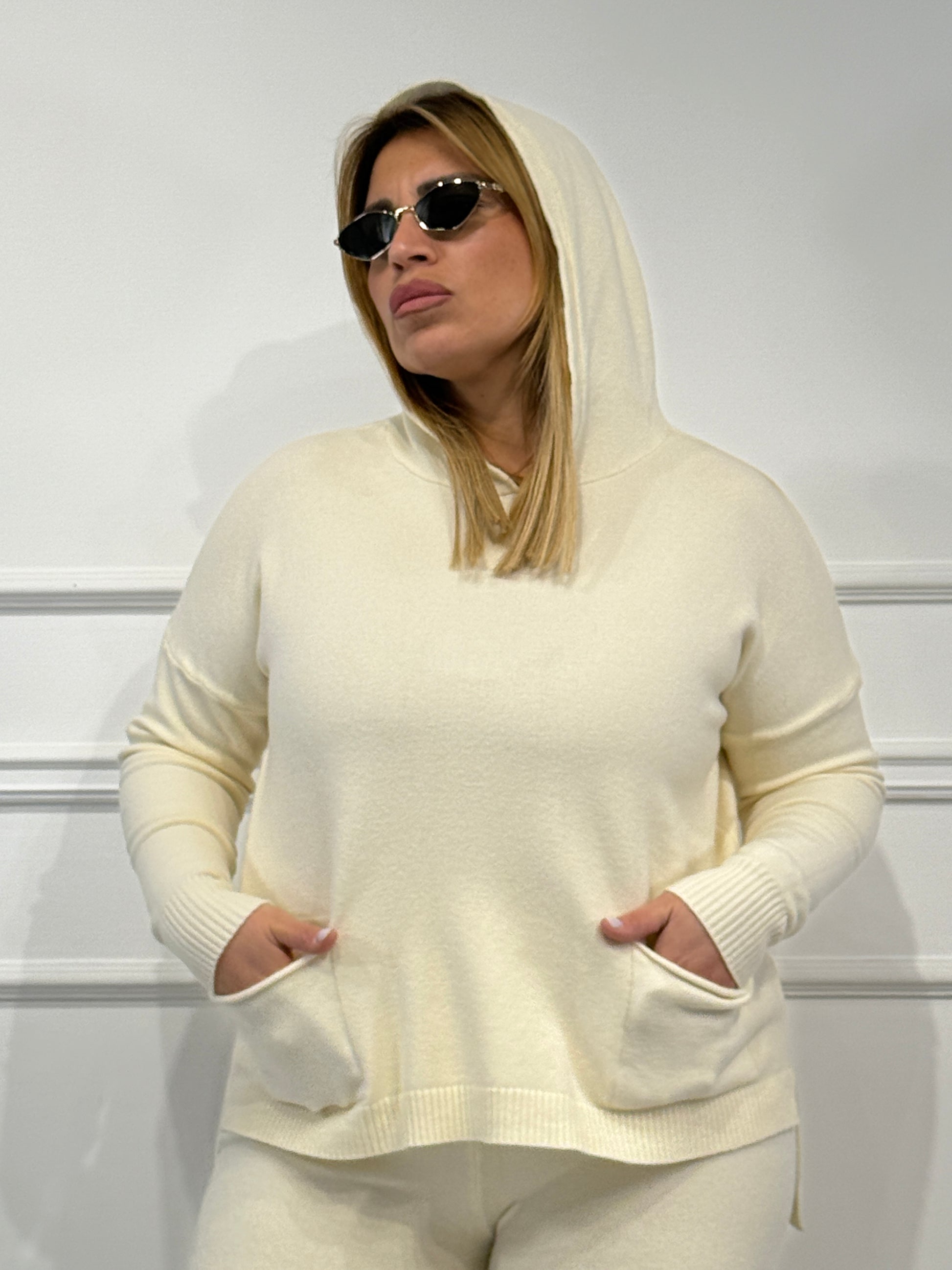 Coordinato in lanetta  rasata maglia con cappuccio pantalone con elastico.Taglia unica veste da una S ad una L