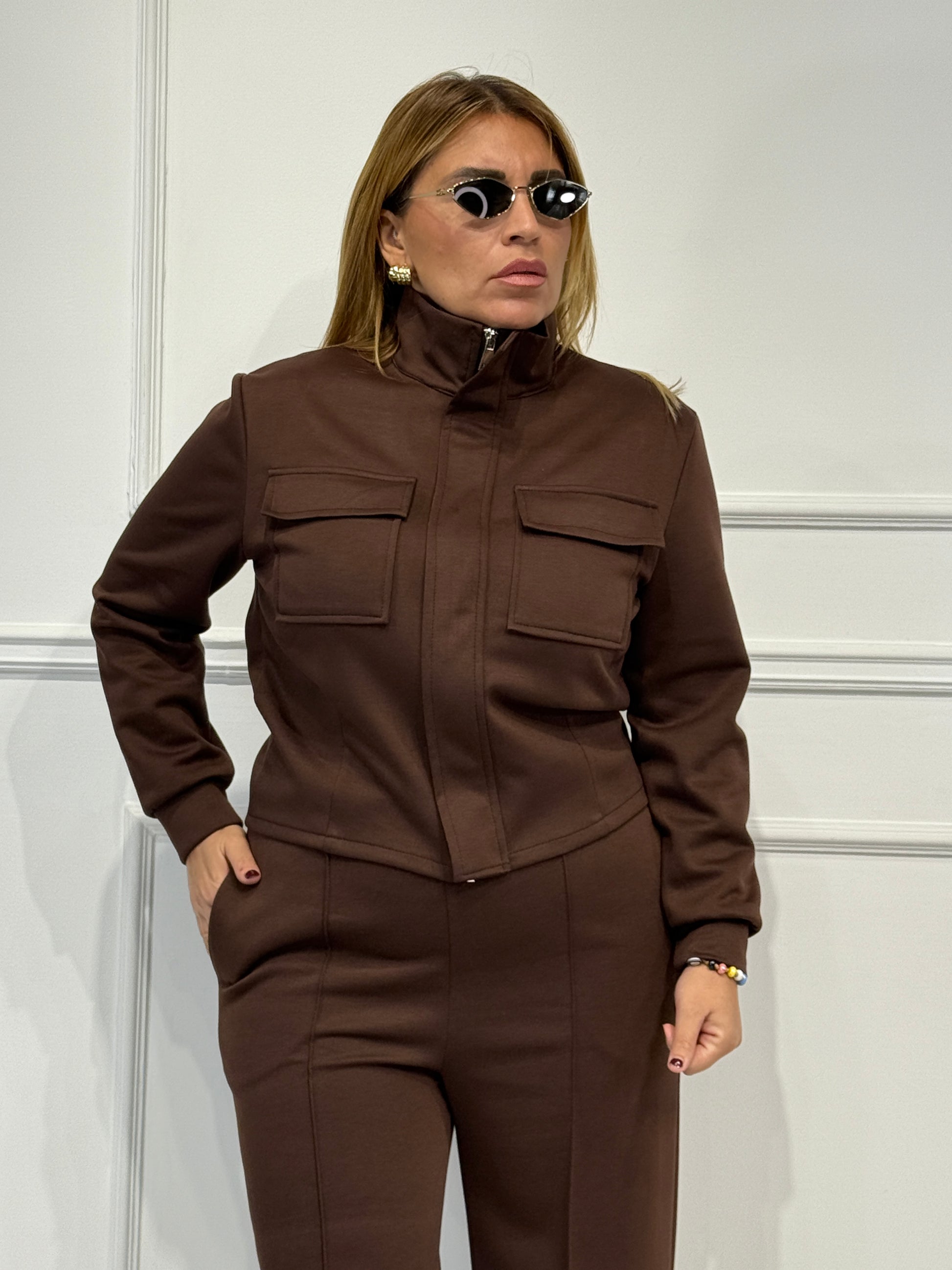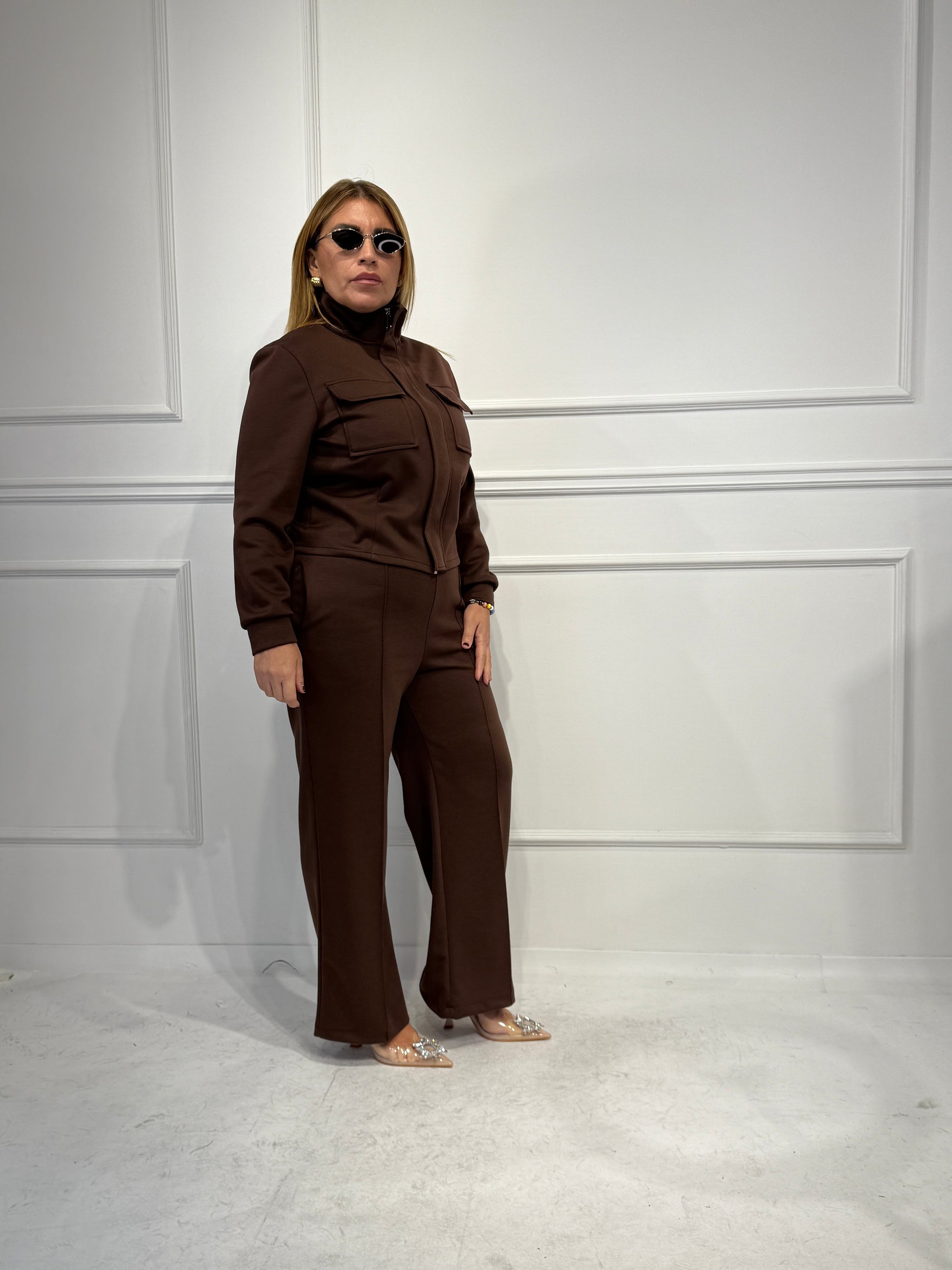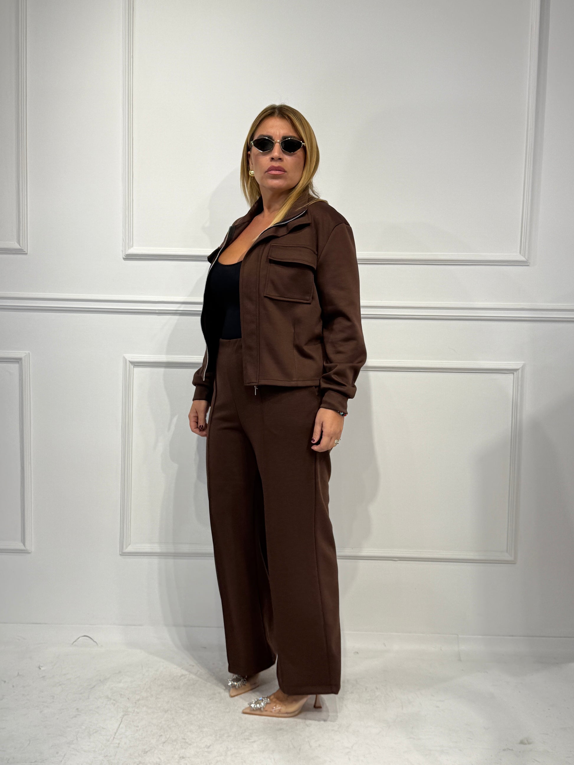 Coordinato in tessuto felpa felpa composto da Jacket con zip e tasconi, pantalone fondo ampio