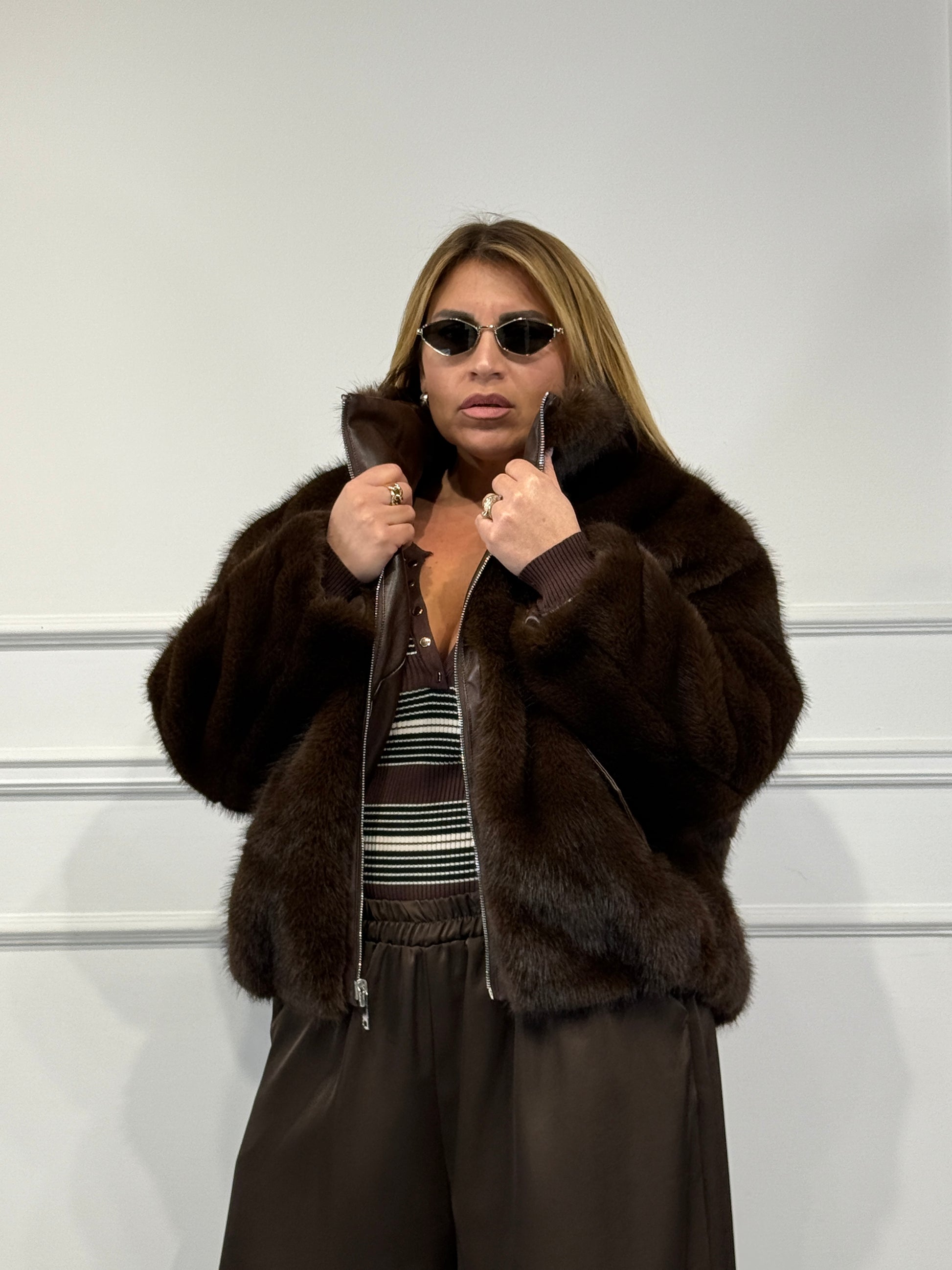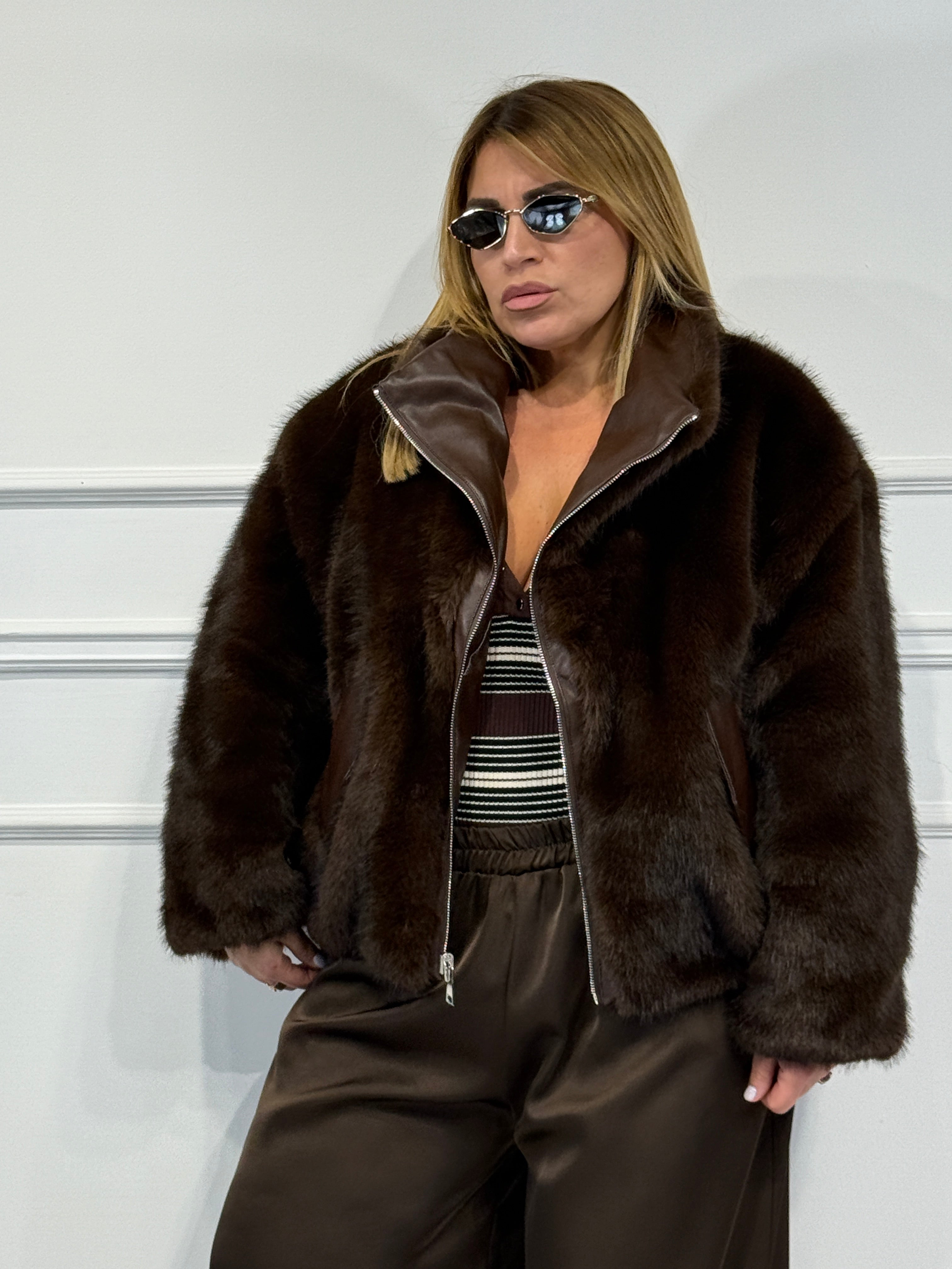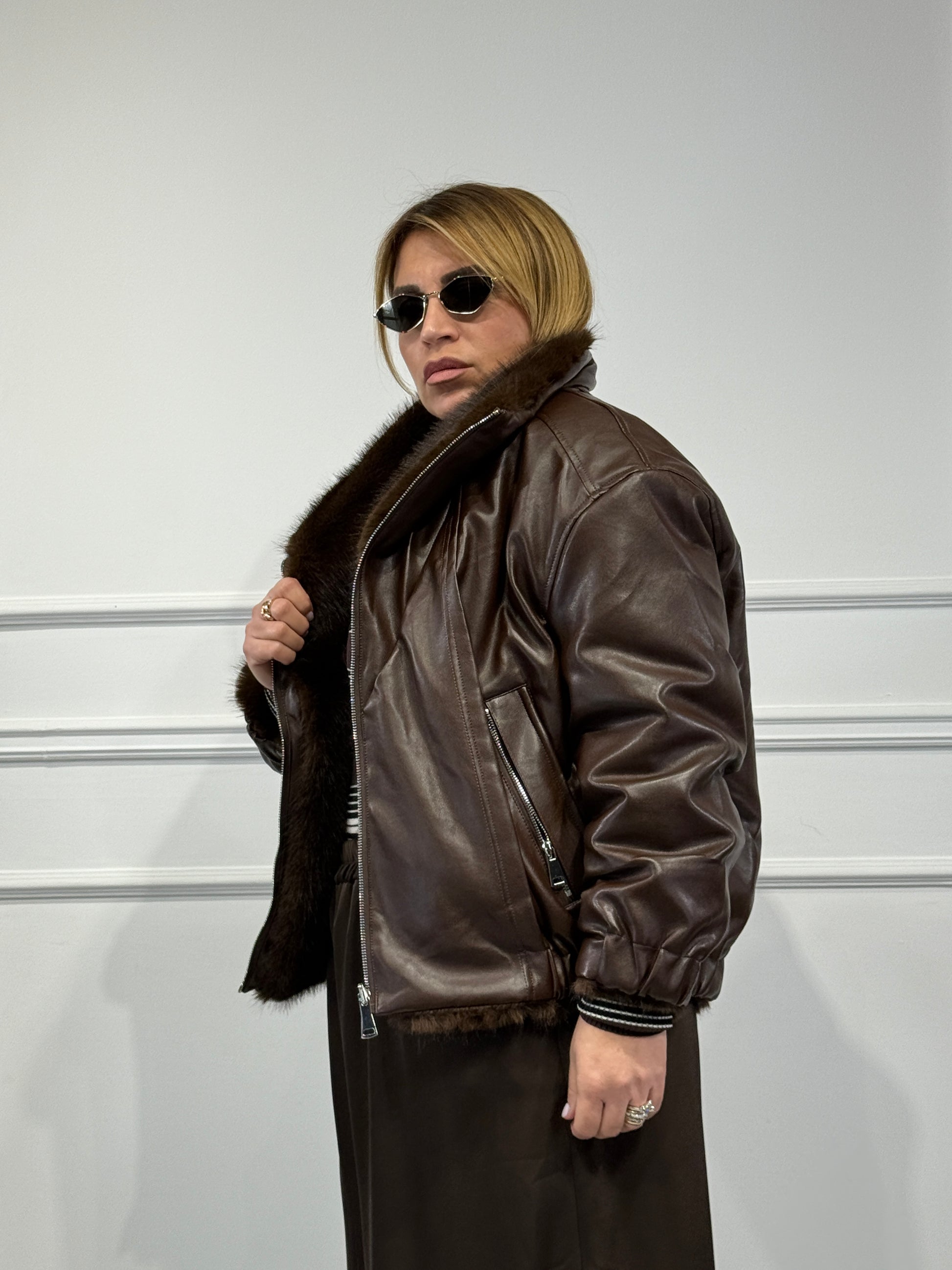 Giubbino Double Face, una Lato Eco pelliccia color visone altro lato eco pelle marrone