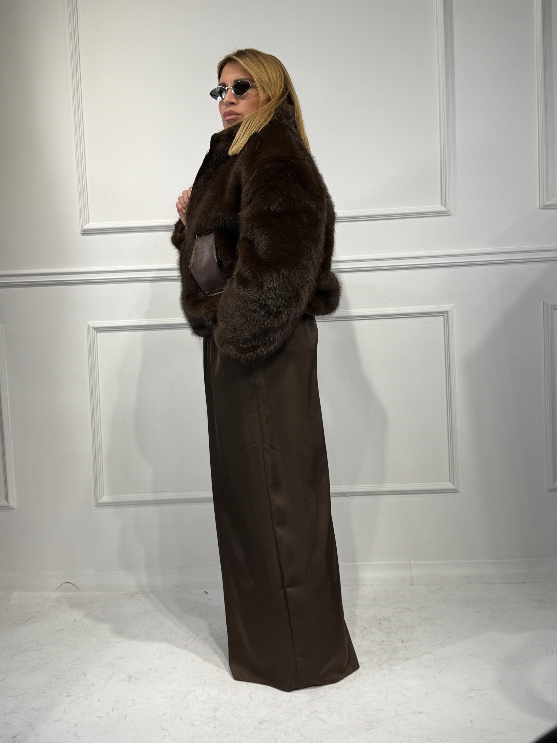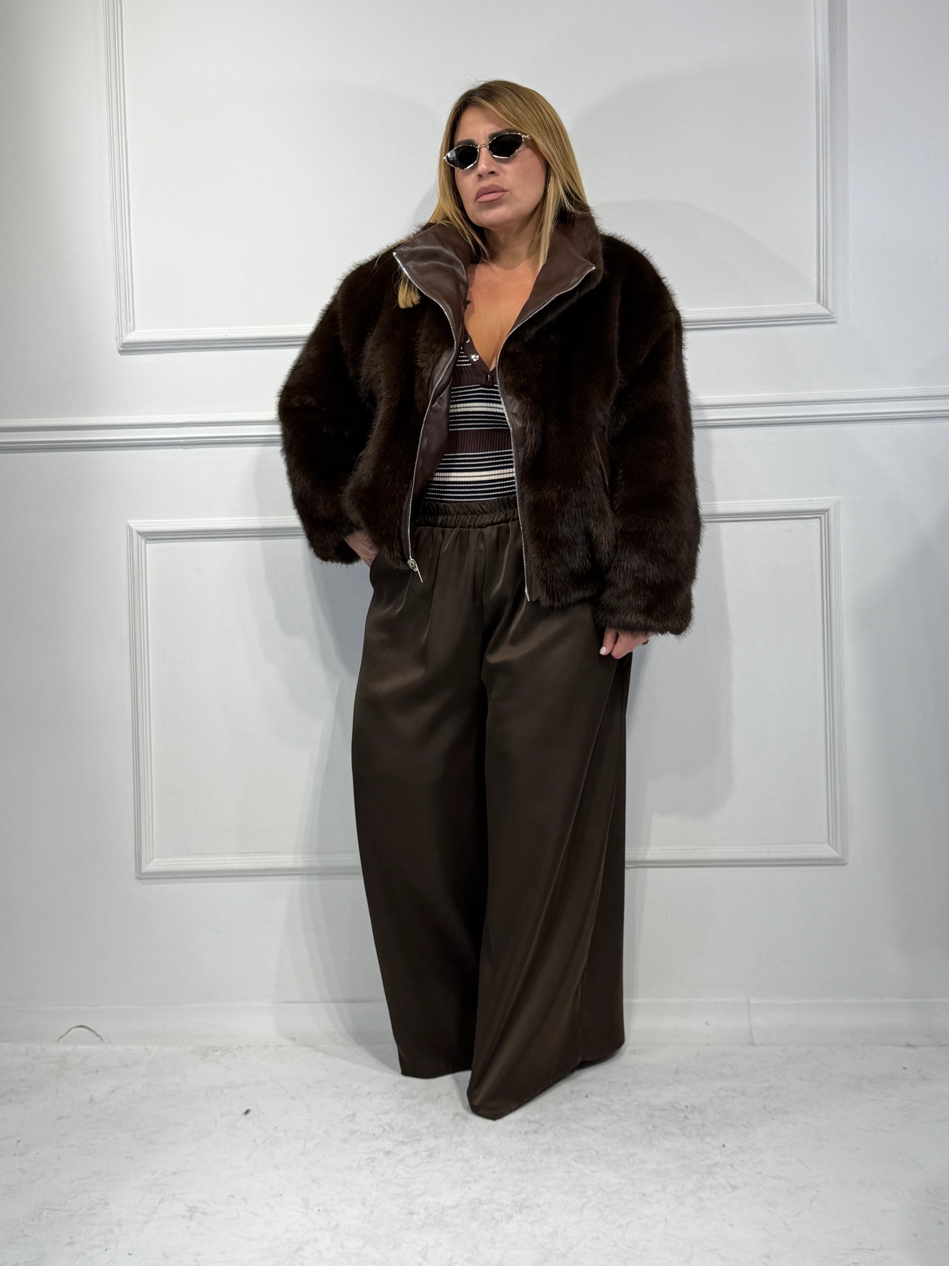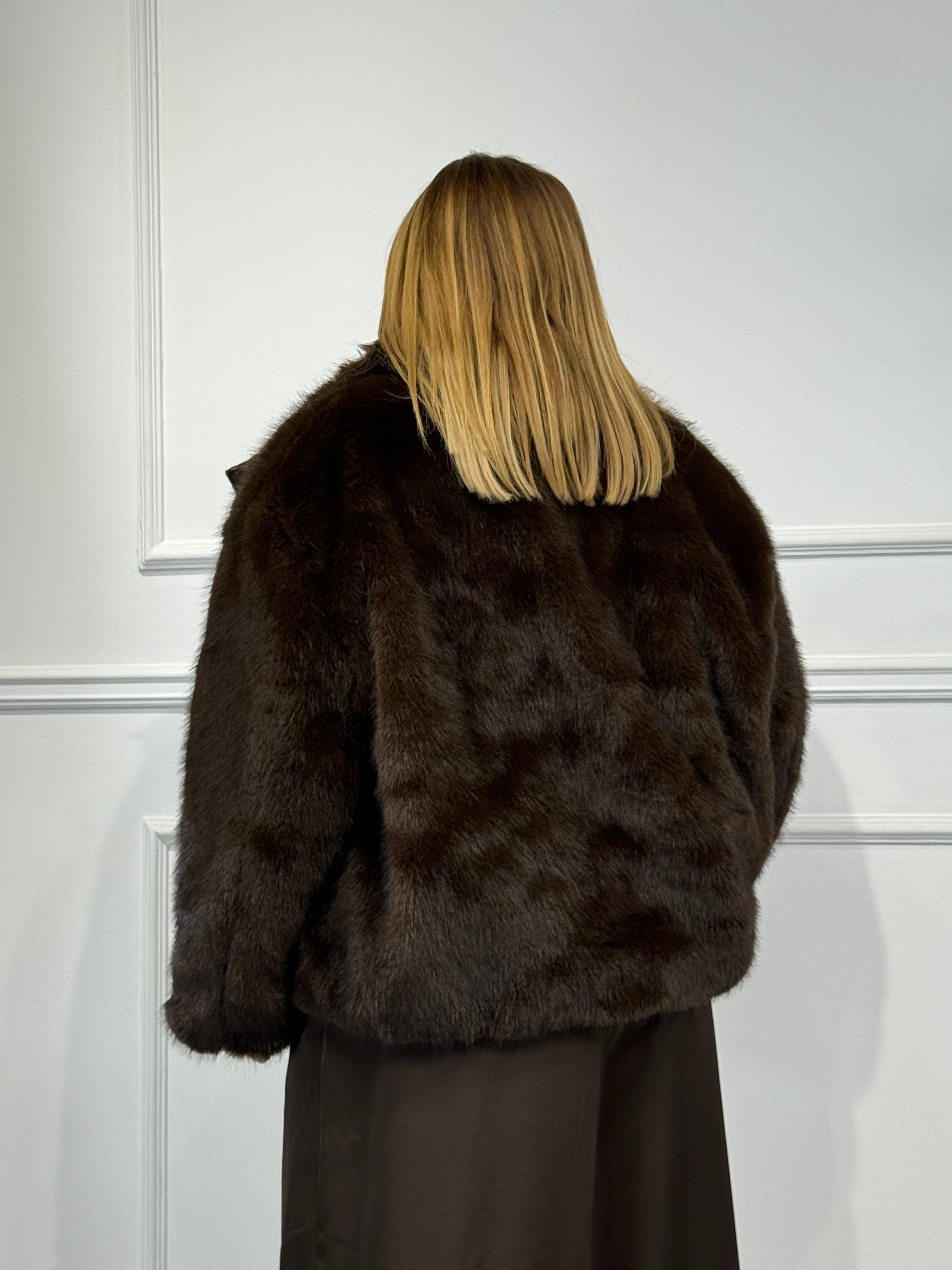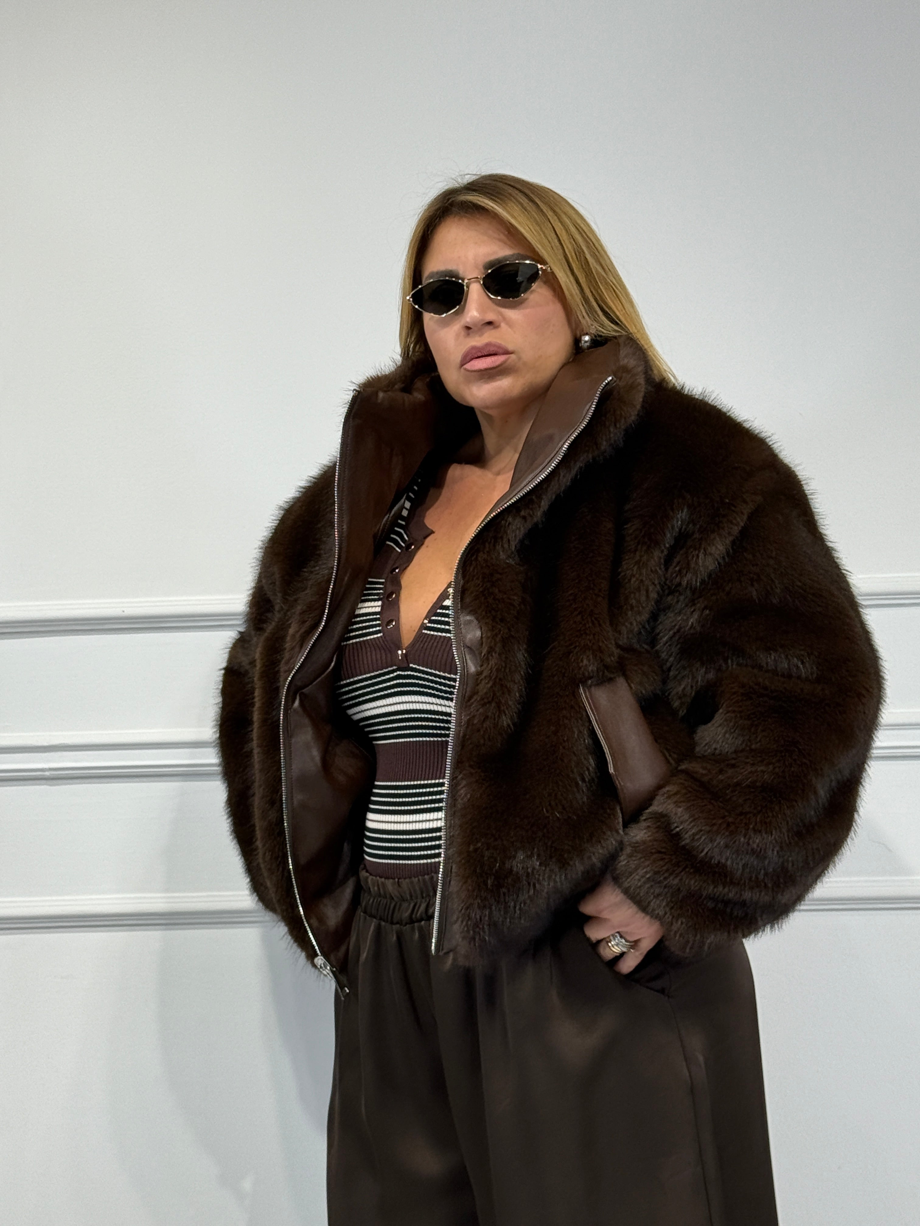 Giubbino Double Face, una Lato Eco pelliccia color visone altro lato eco pelle marrone