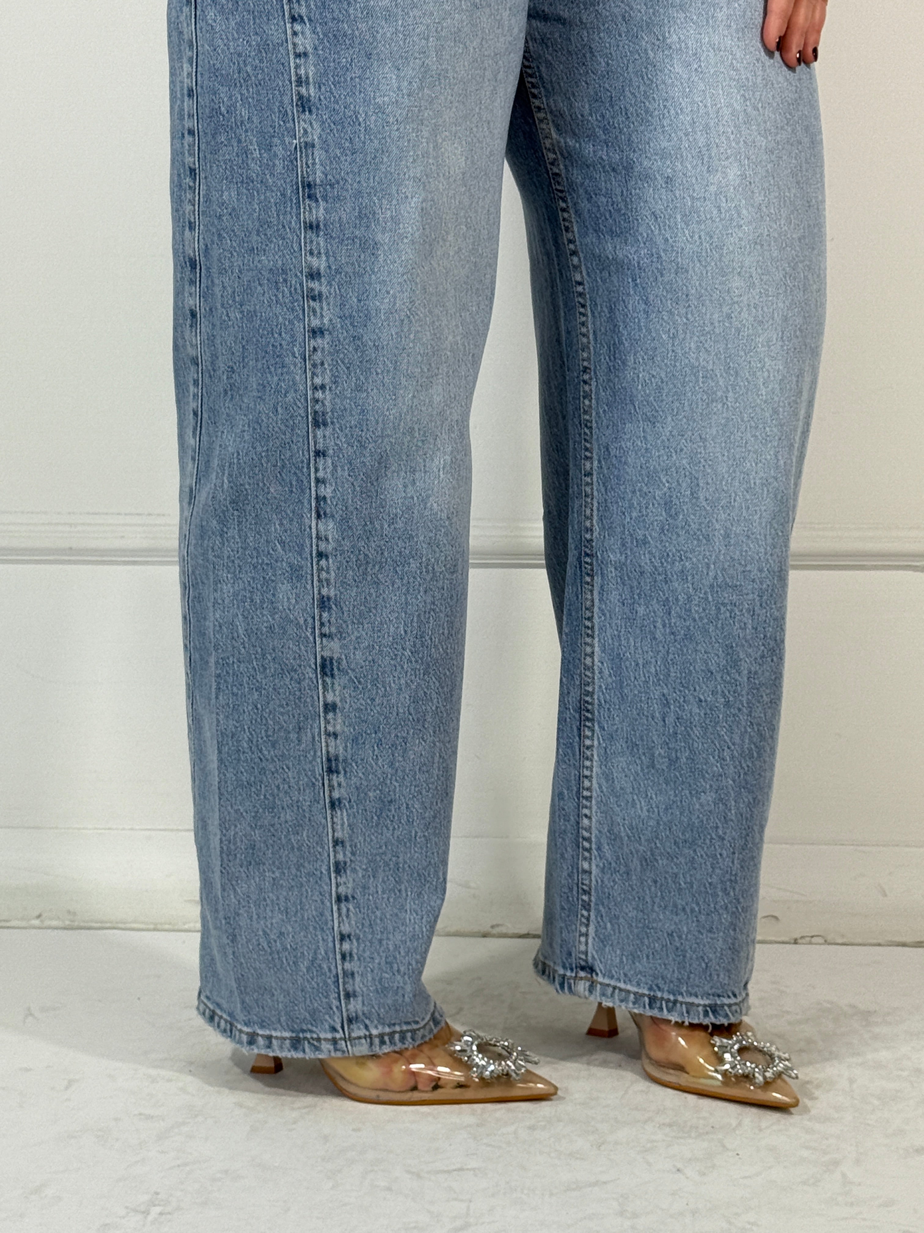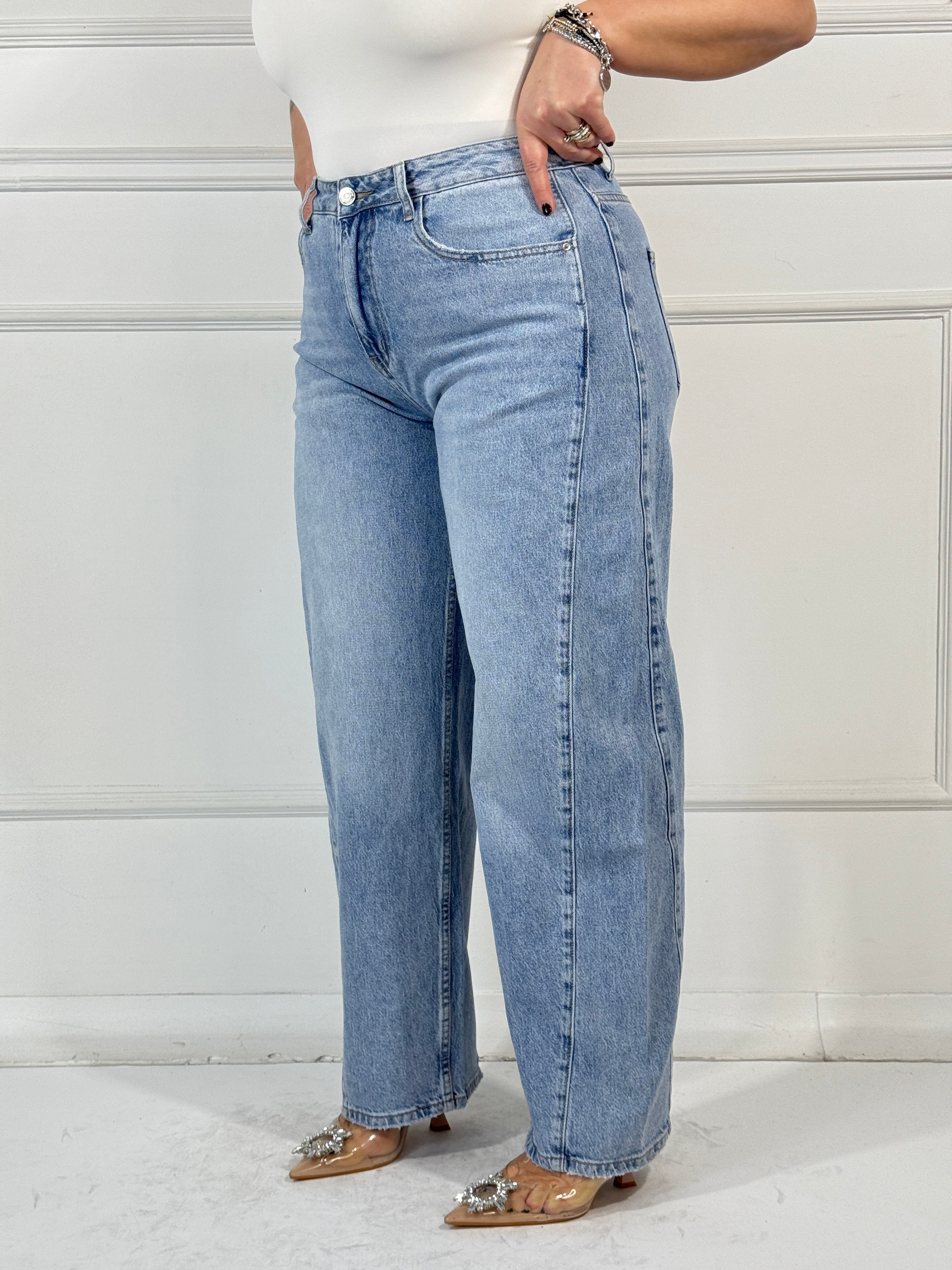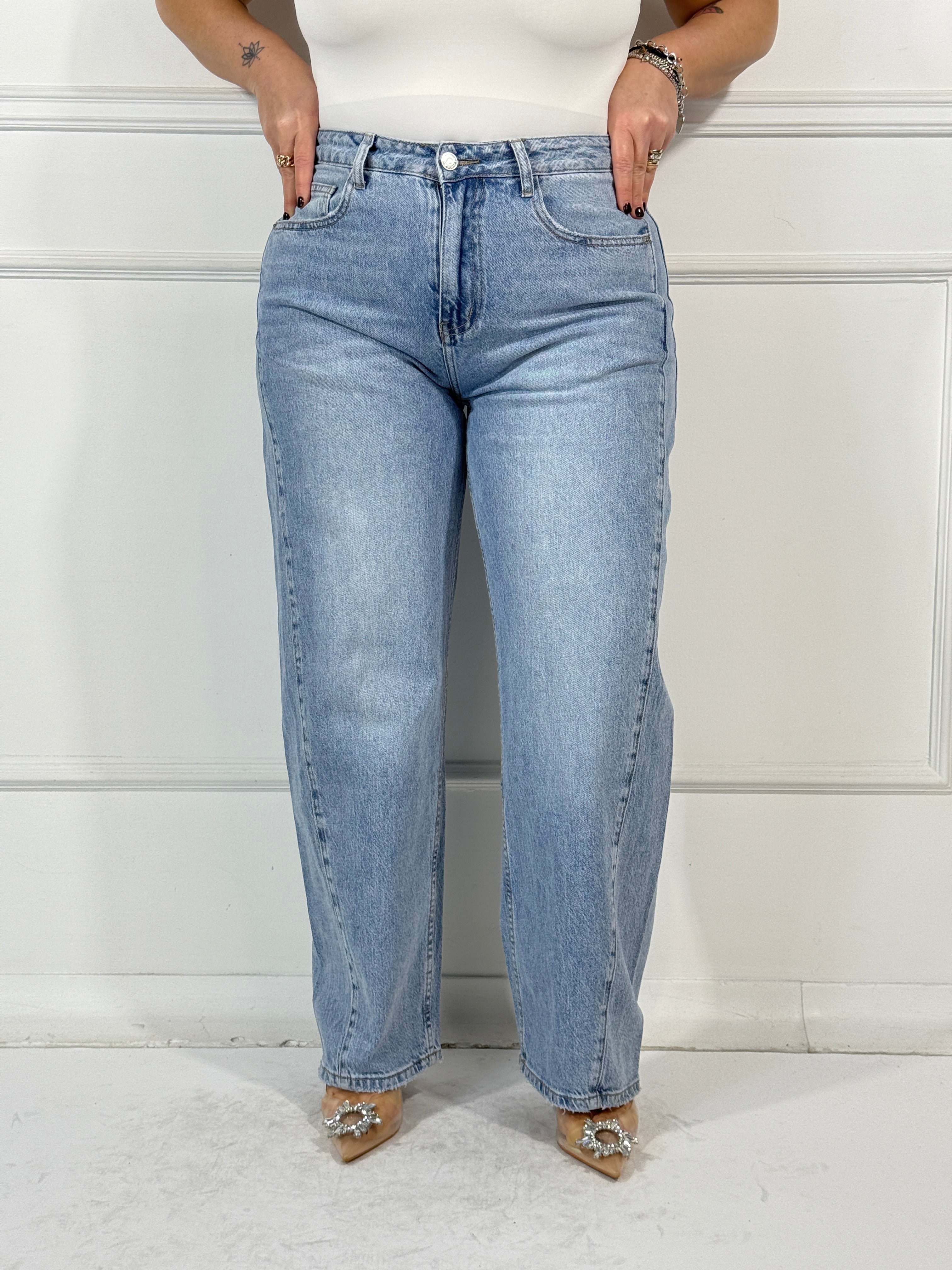Jeans gamba dritta semielastico,lavaggio chiaro