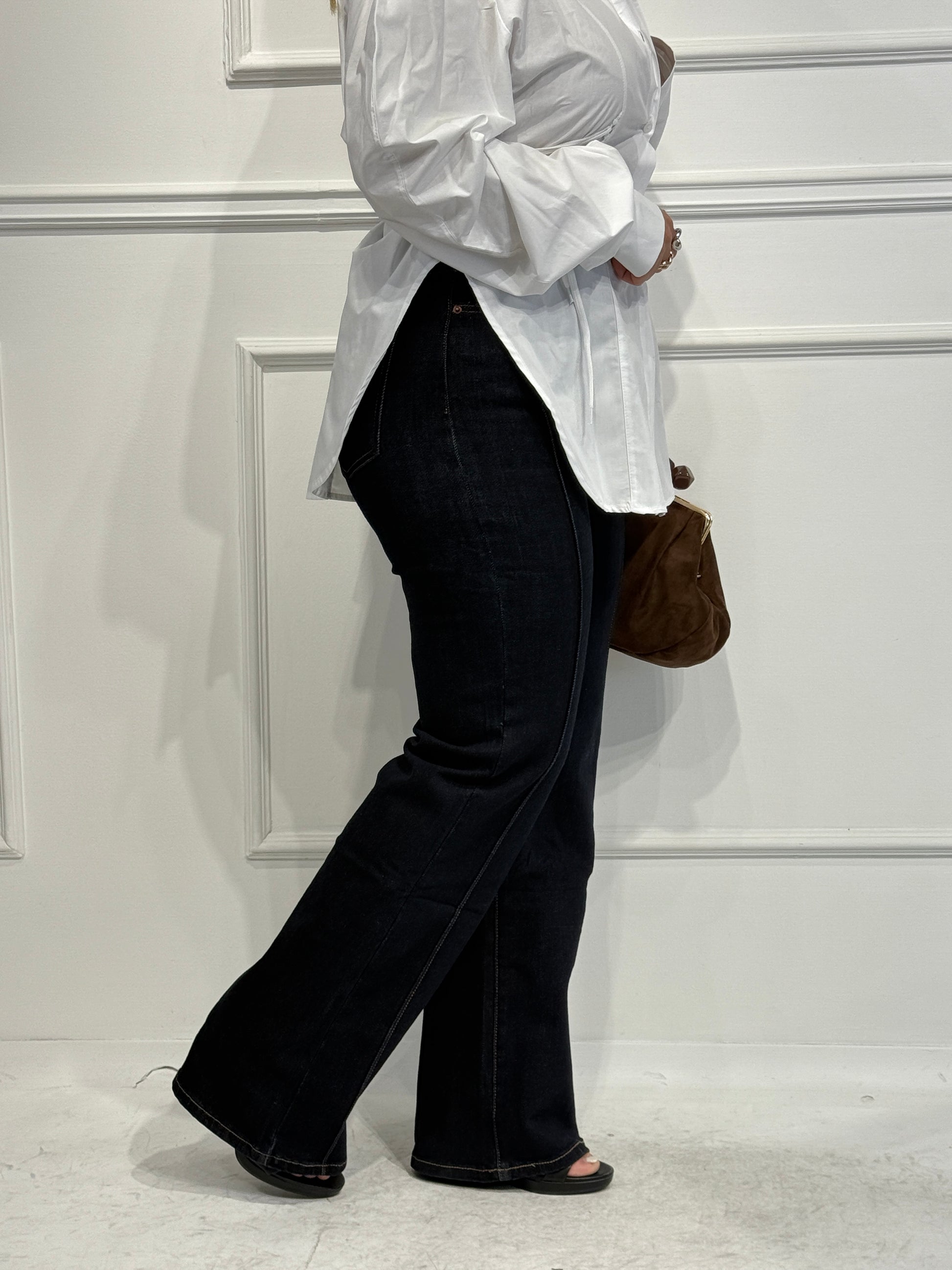 Jeans modello Wide Leg in lavaggio blu denim elastico taglie da 38 a 46