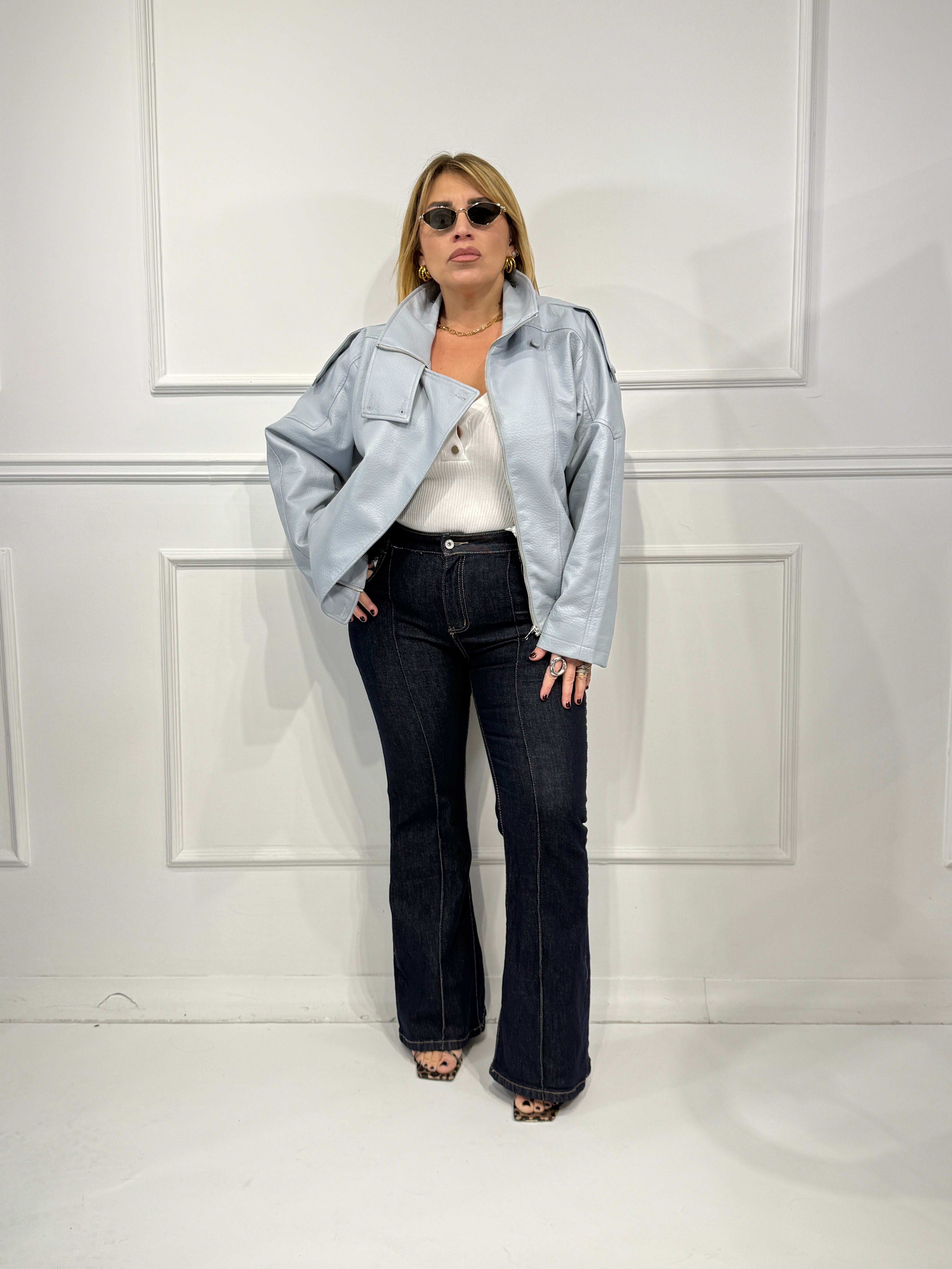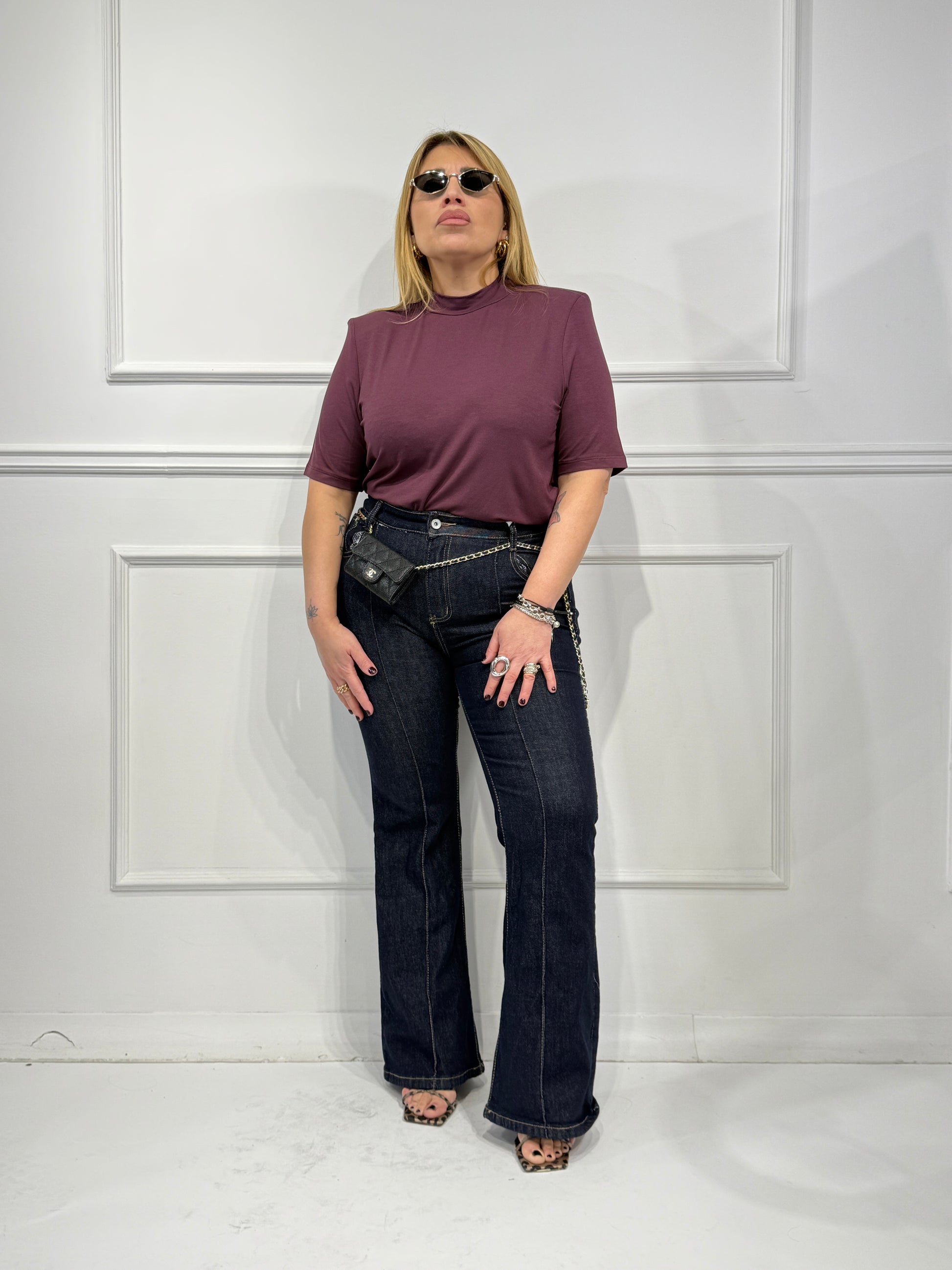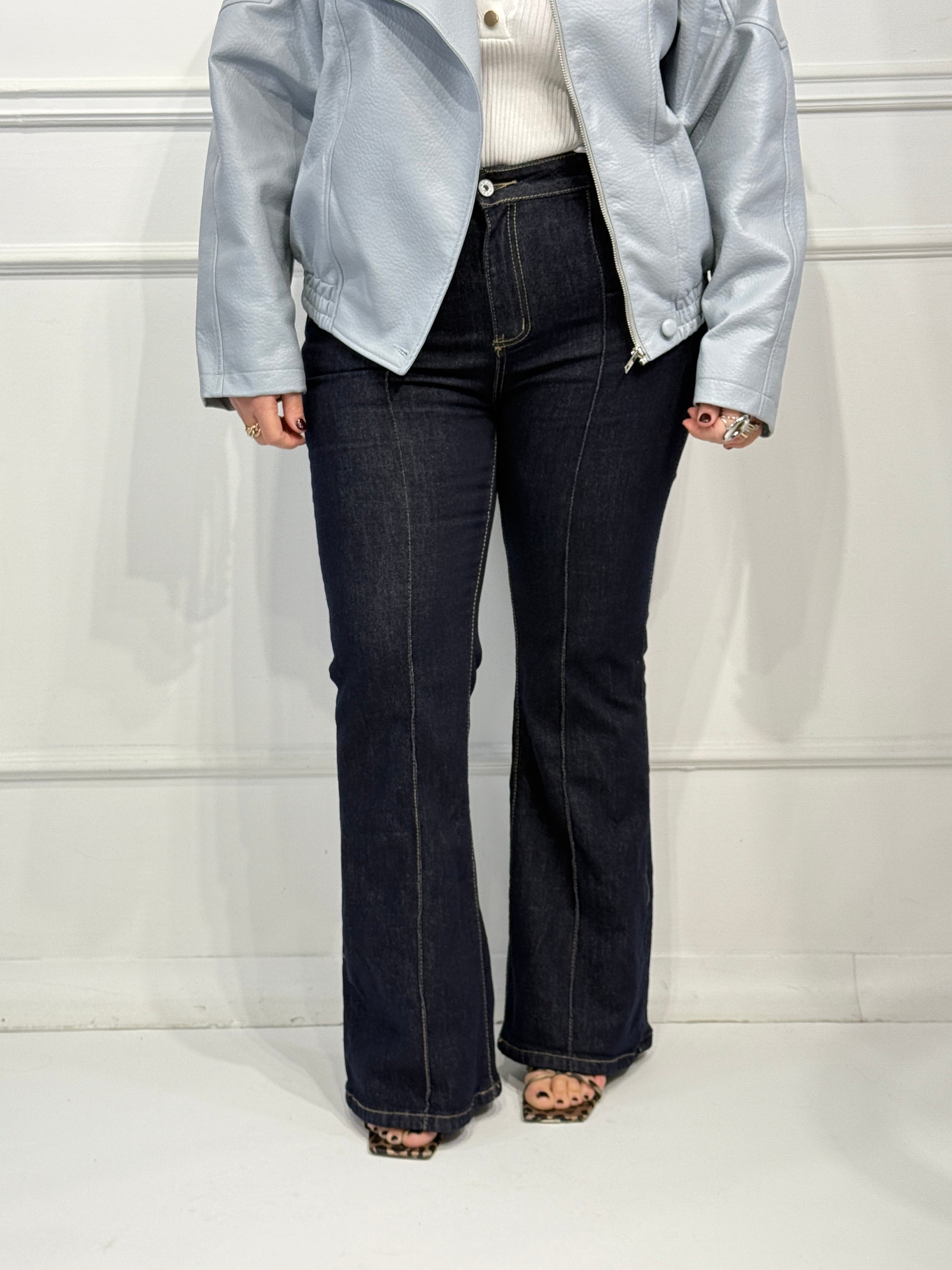 Jeans zampa con cucitura sul davanti elastico,lavaggio scuro