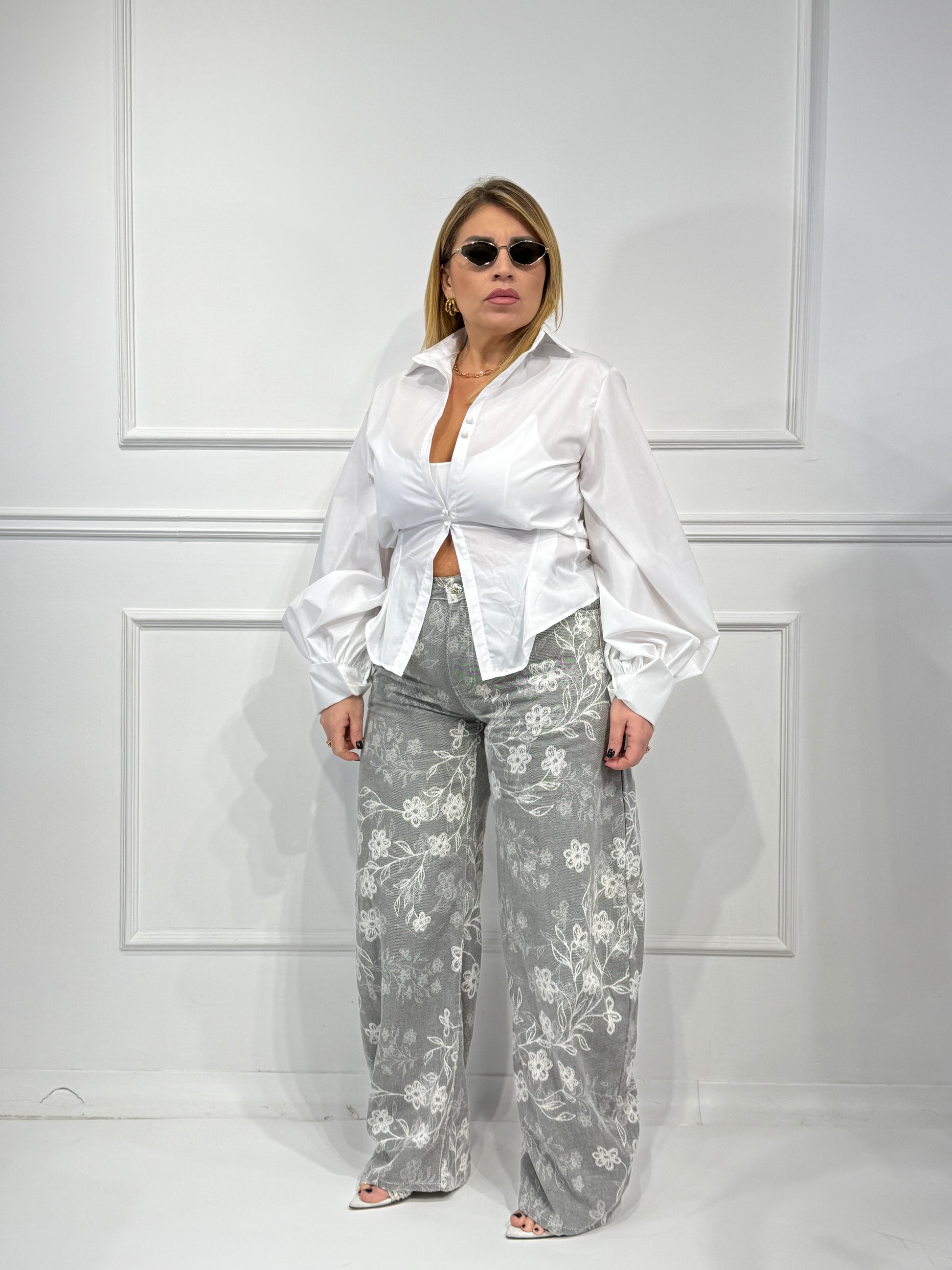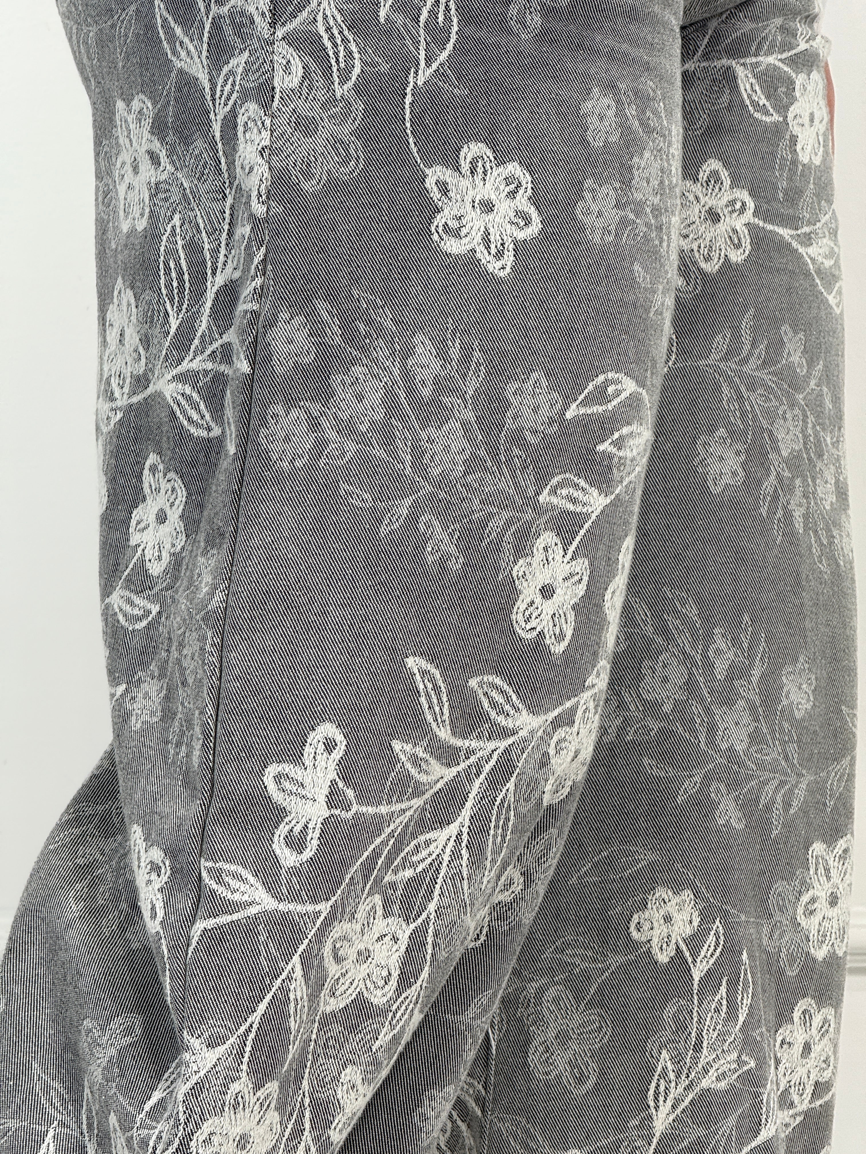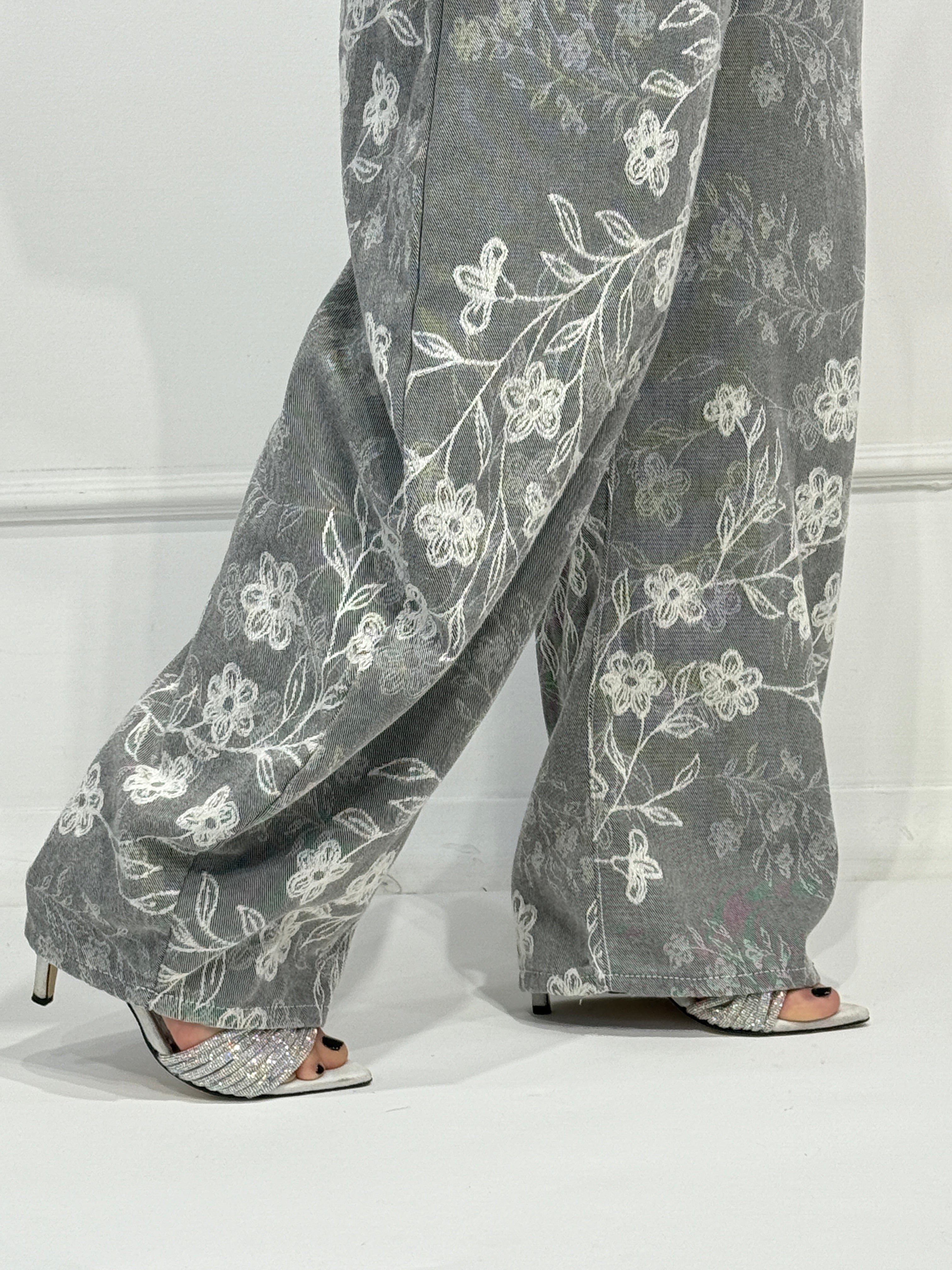 Jeans modello Balloon , lavaggio grigio,con stampa fiori