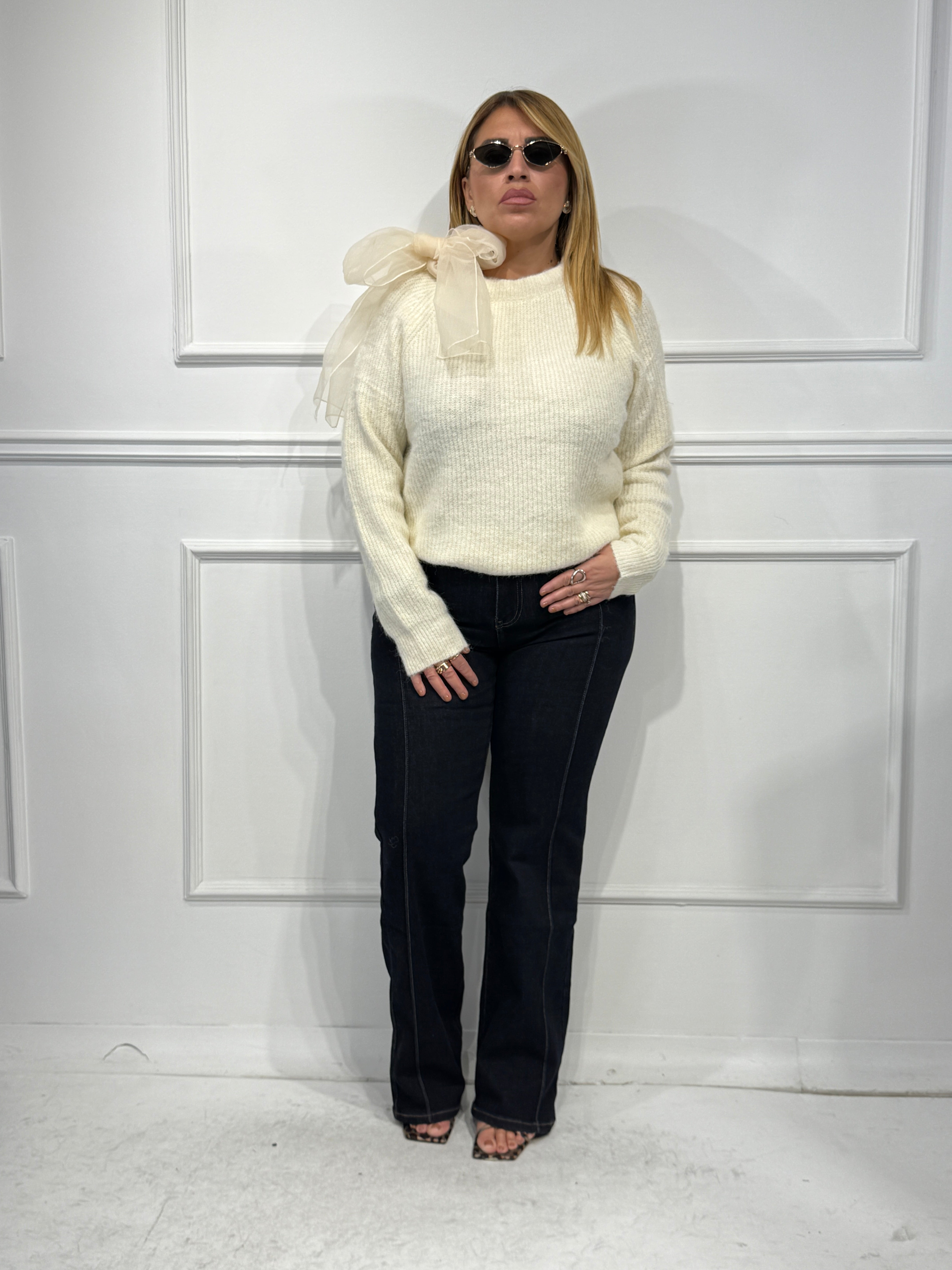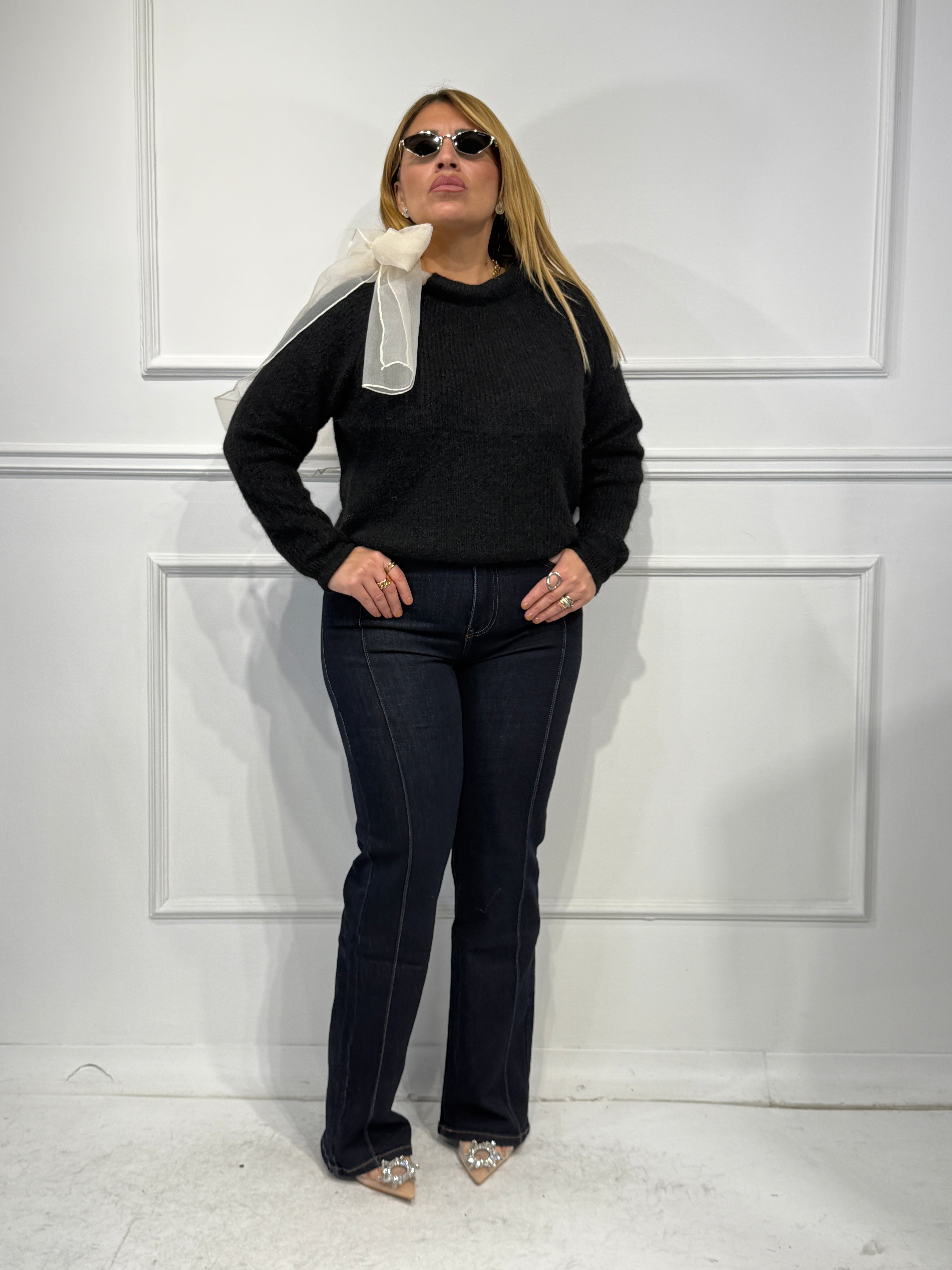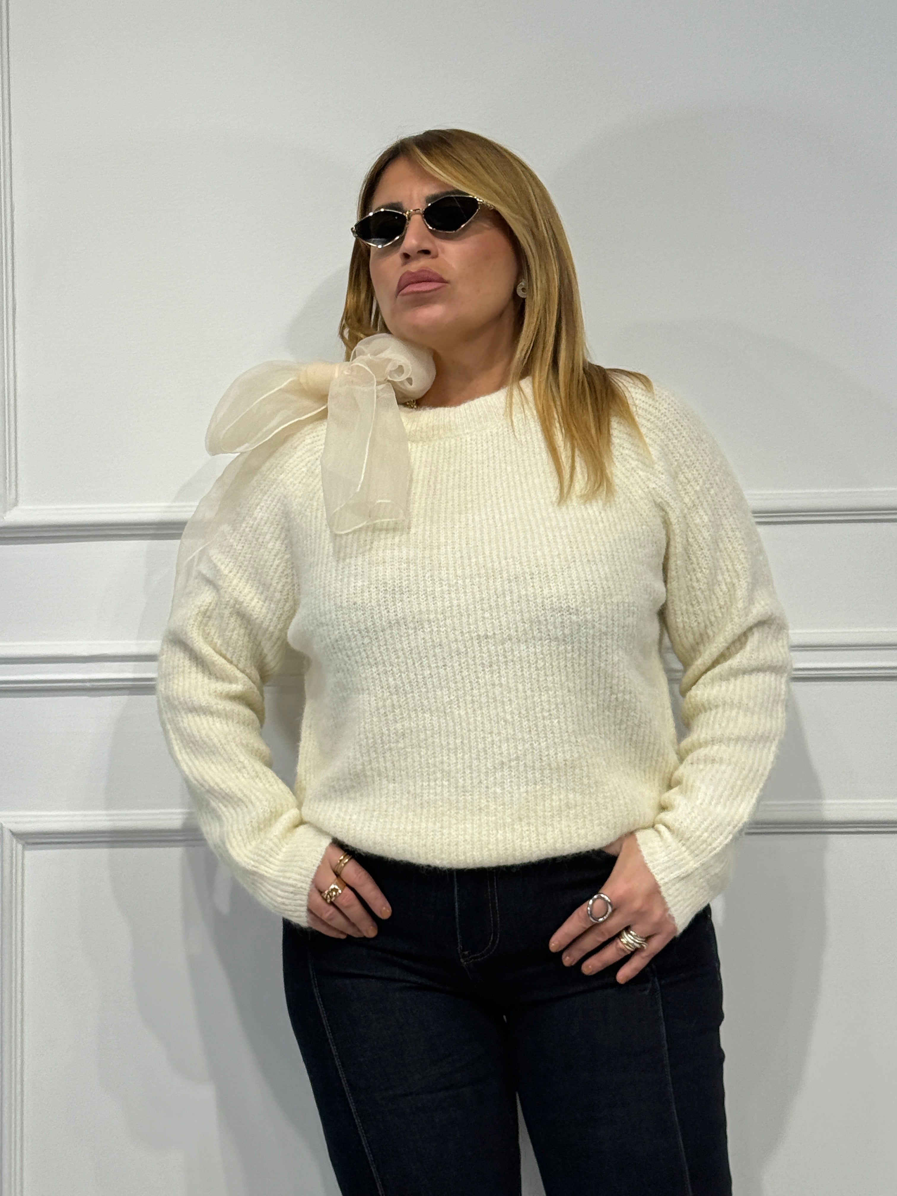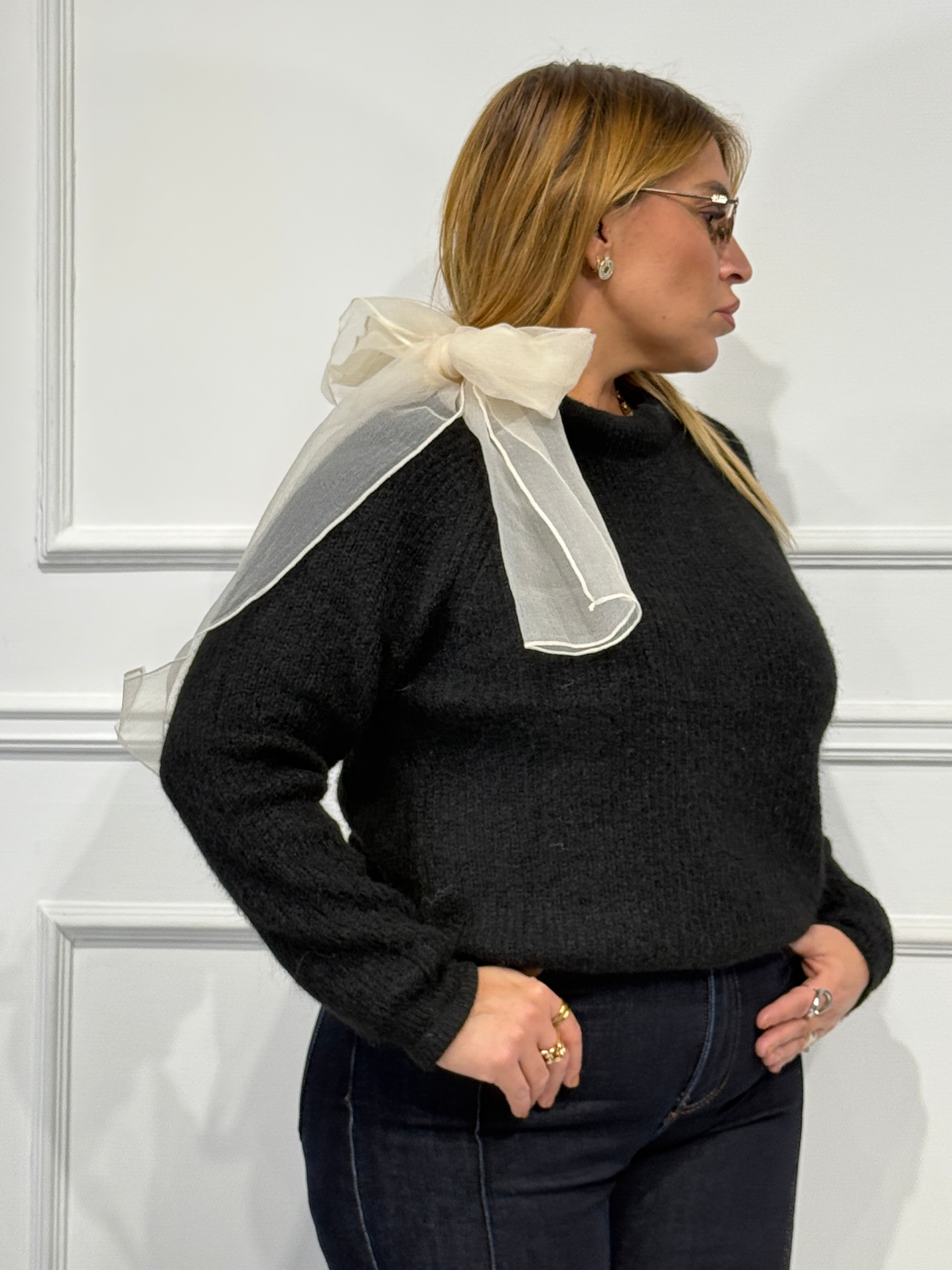 Maglia in Lana girocollo con foulard in organza,taglia unica veste fino a 48.