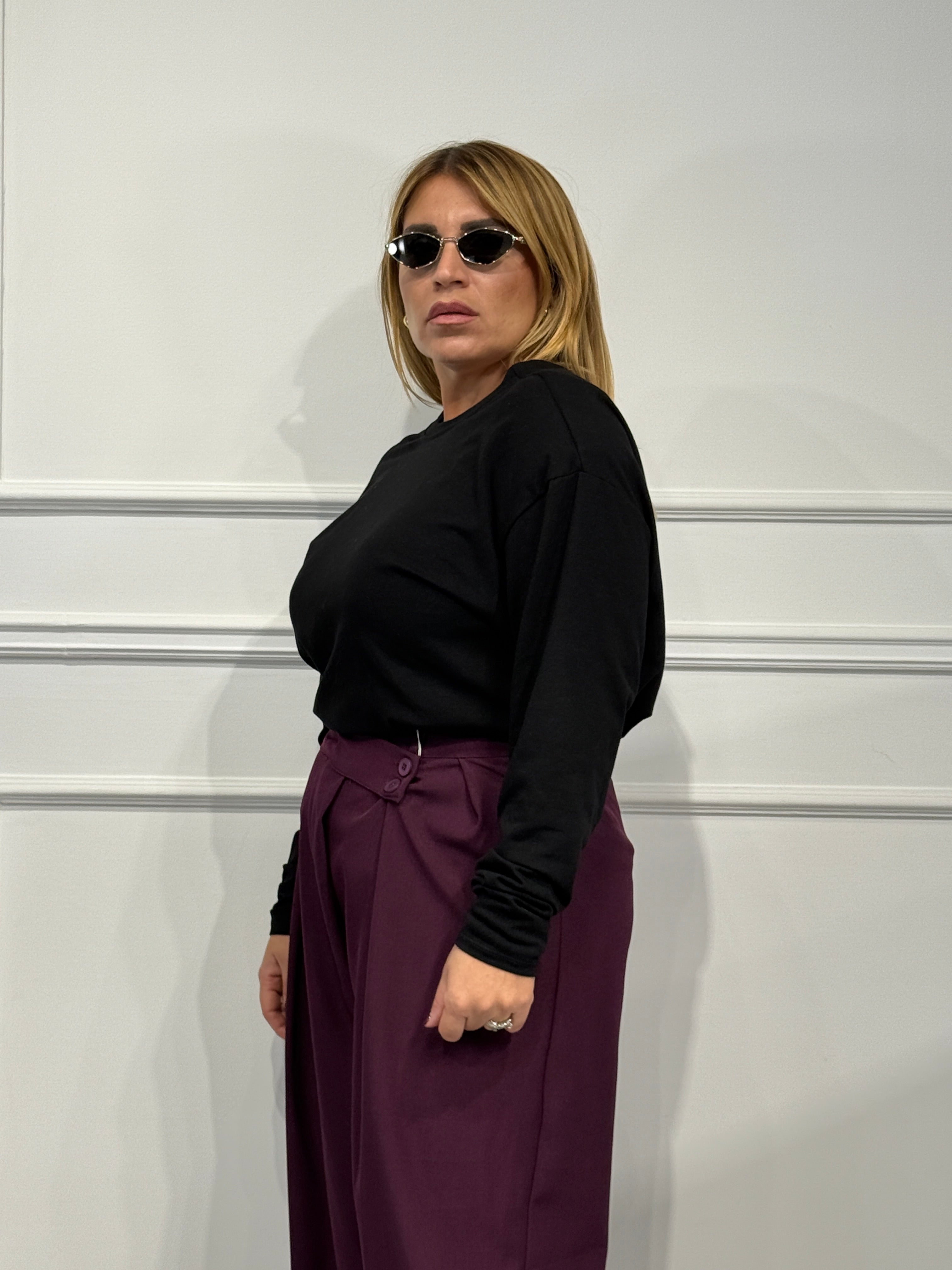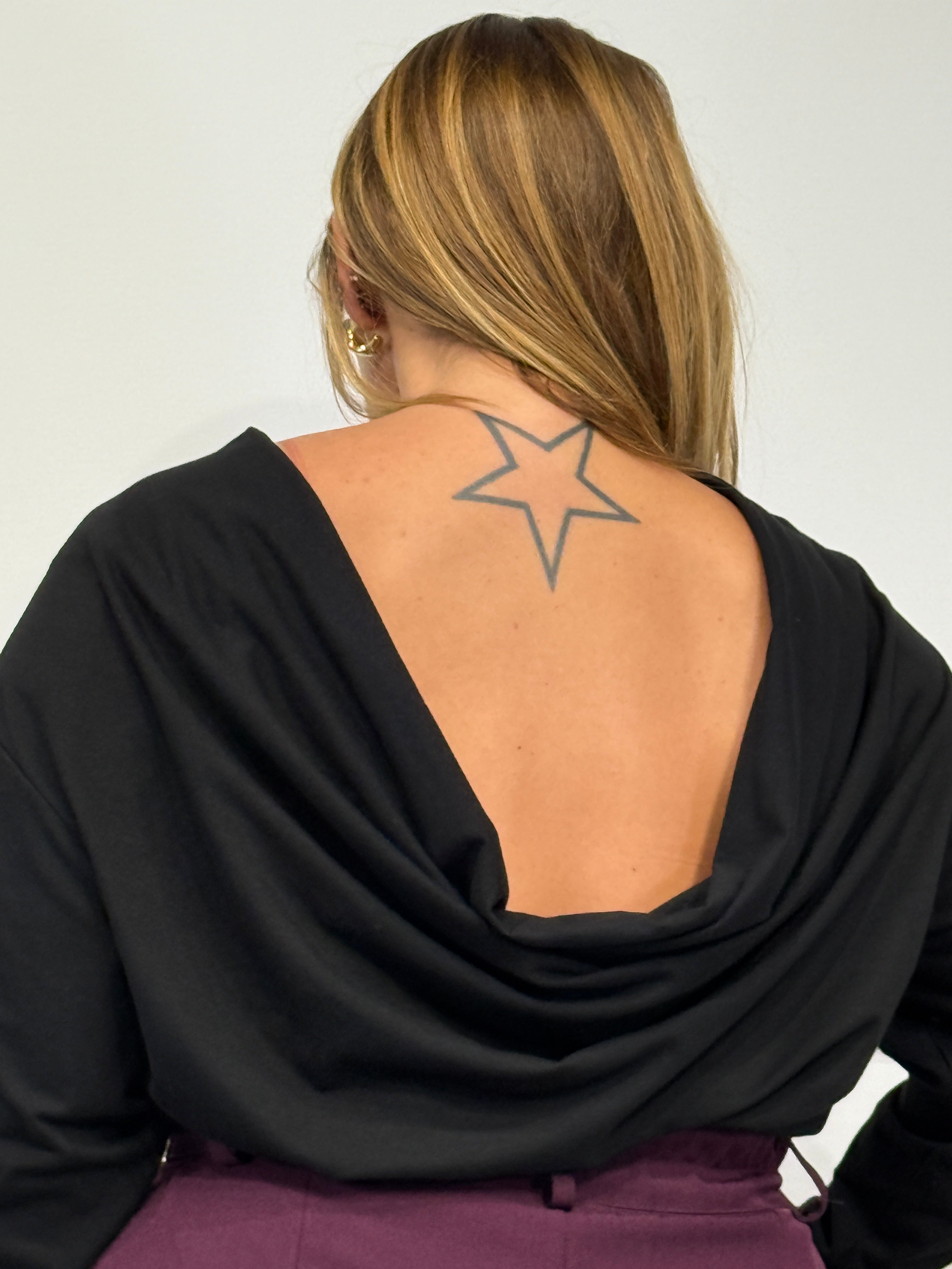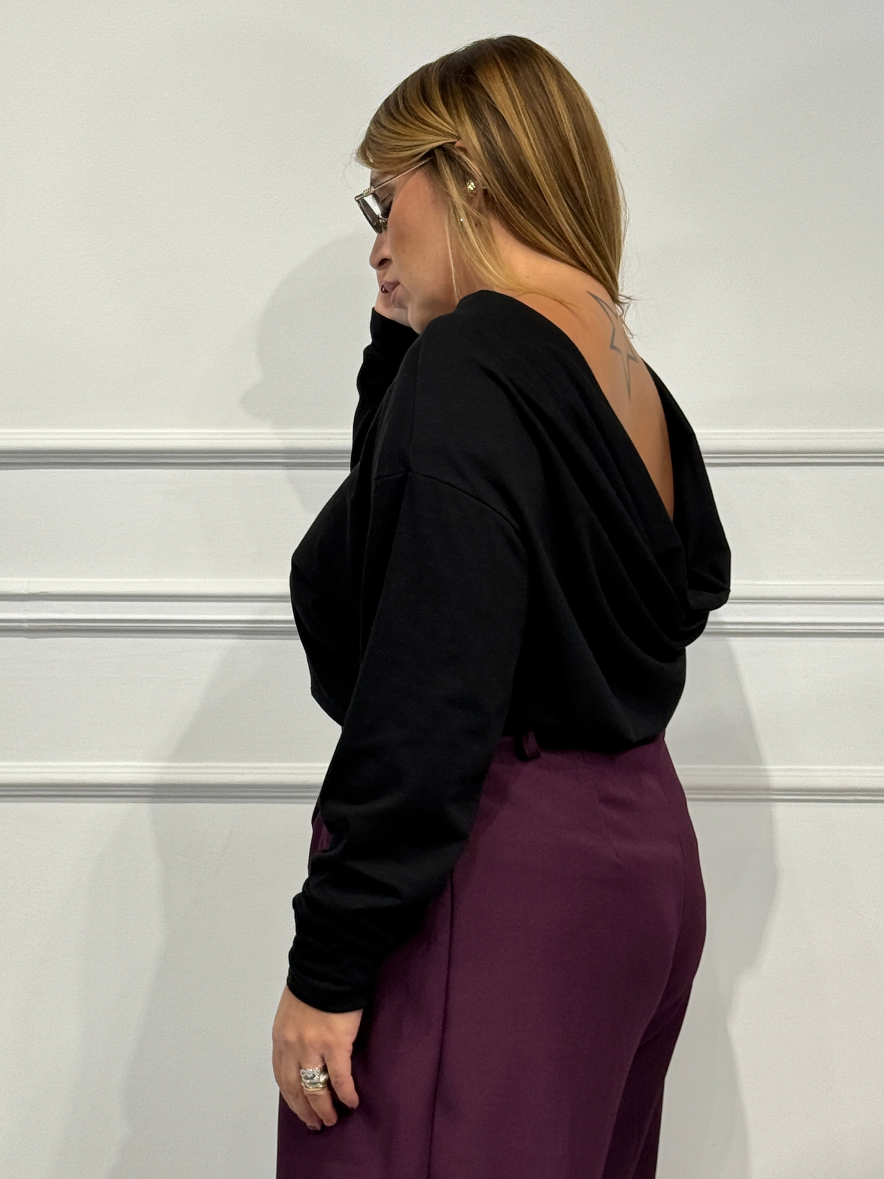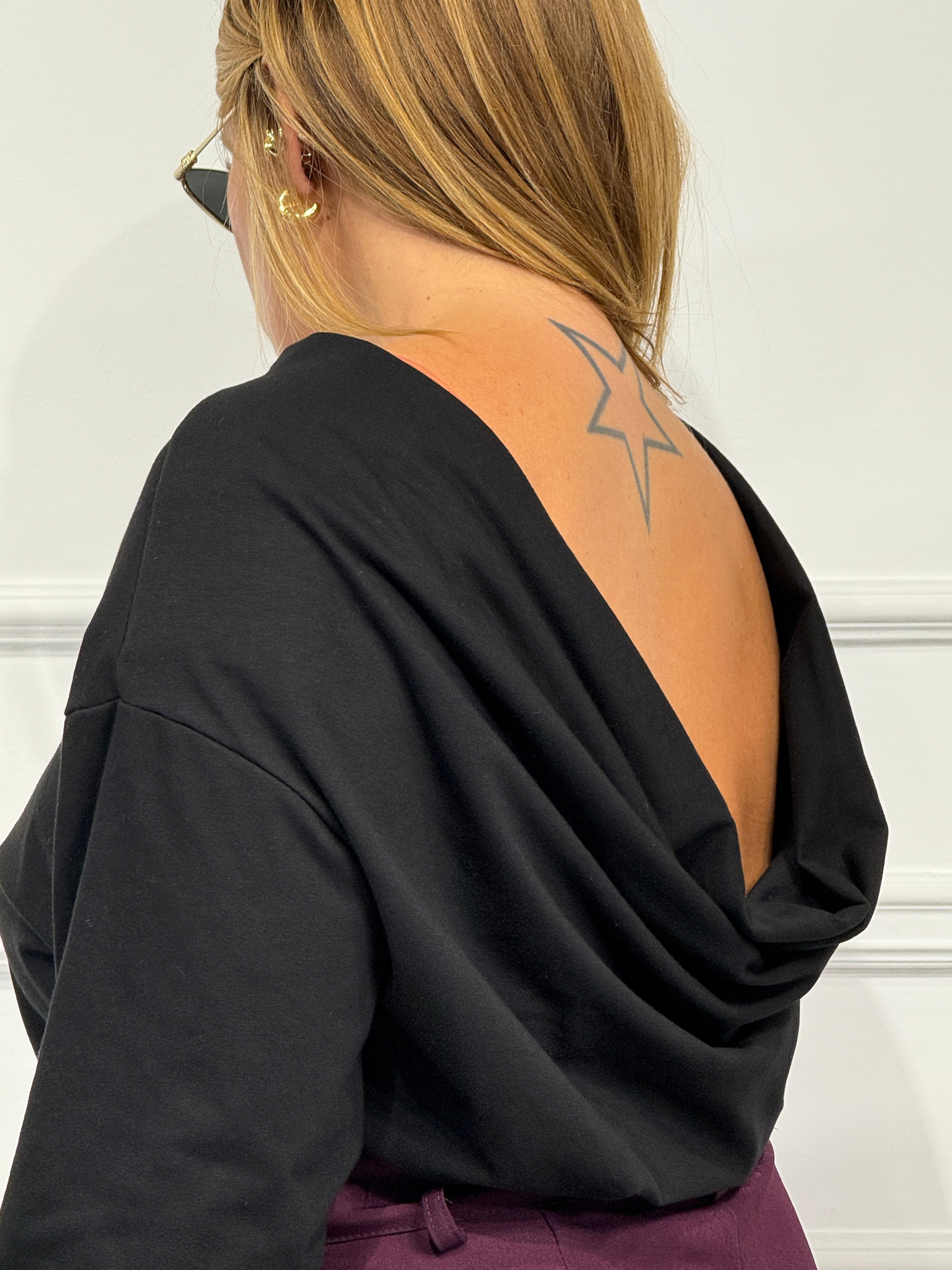 Maglia in caldo cotone girocollo manica lunga con  spalline integrate   scollata sul retro