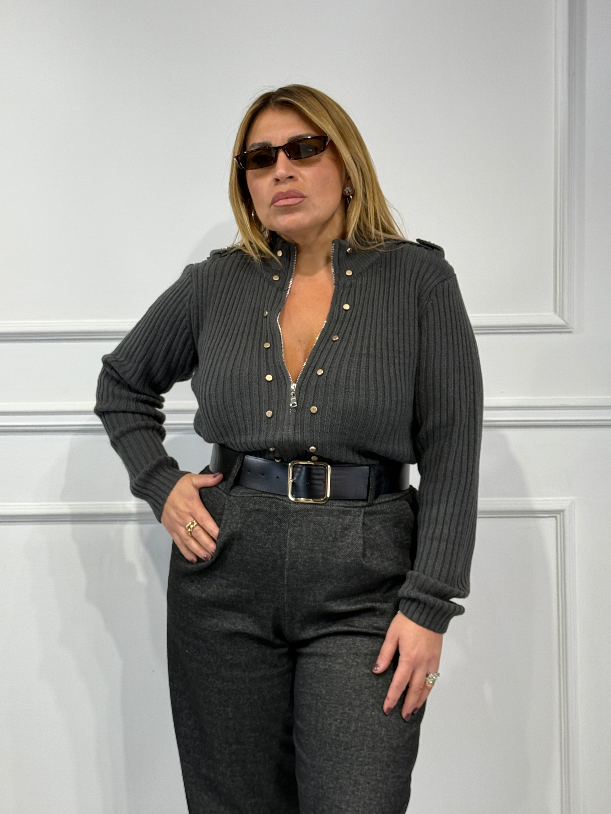 Maglia in lana con zip spallina integrata taglia unica veste fino a 48