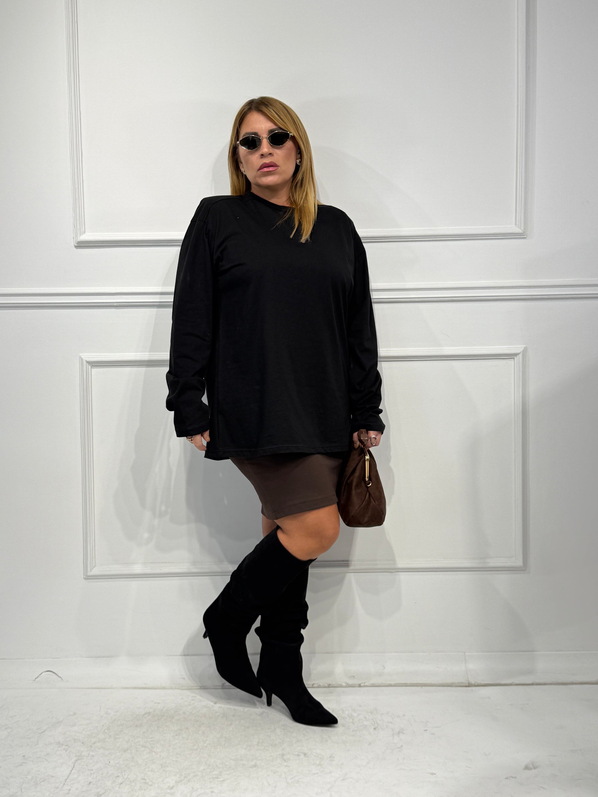 t-shirt maxi over size con manica Lunga con spallina in cotone taglia unica veste da una 42 ad una 50