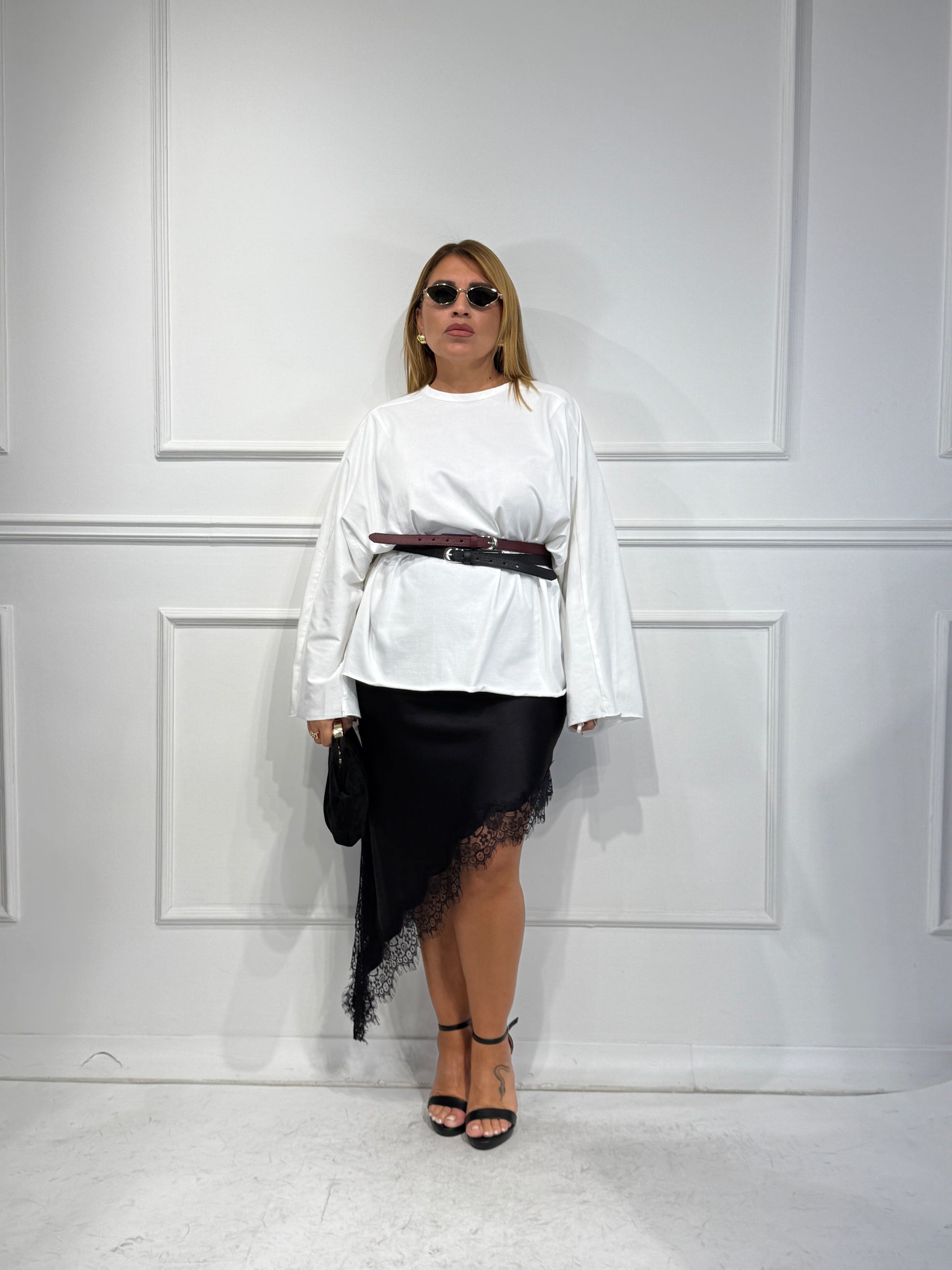t-shirt maxi over size con manica lungain cotone doppio qualita' premium,taglia unica veste da una 42 ad una 54