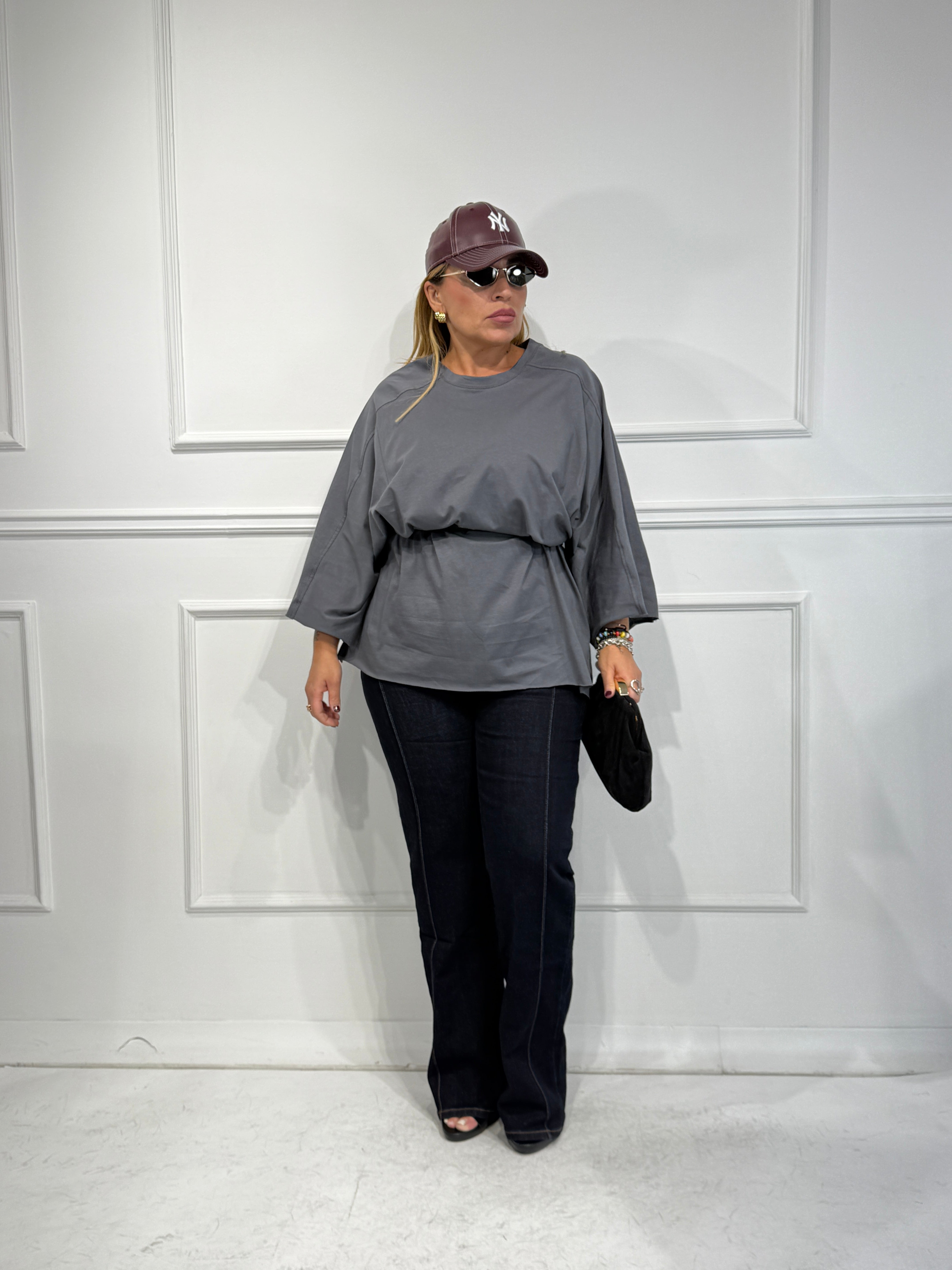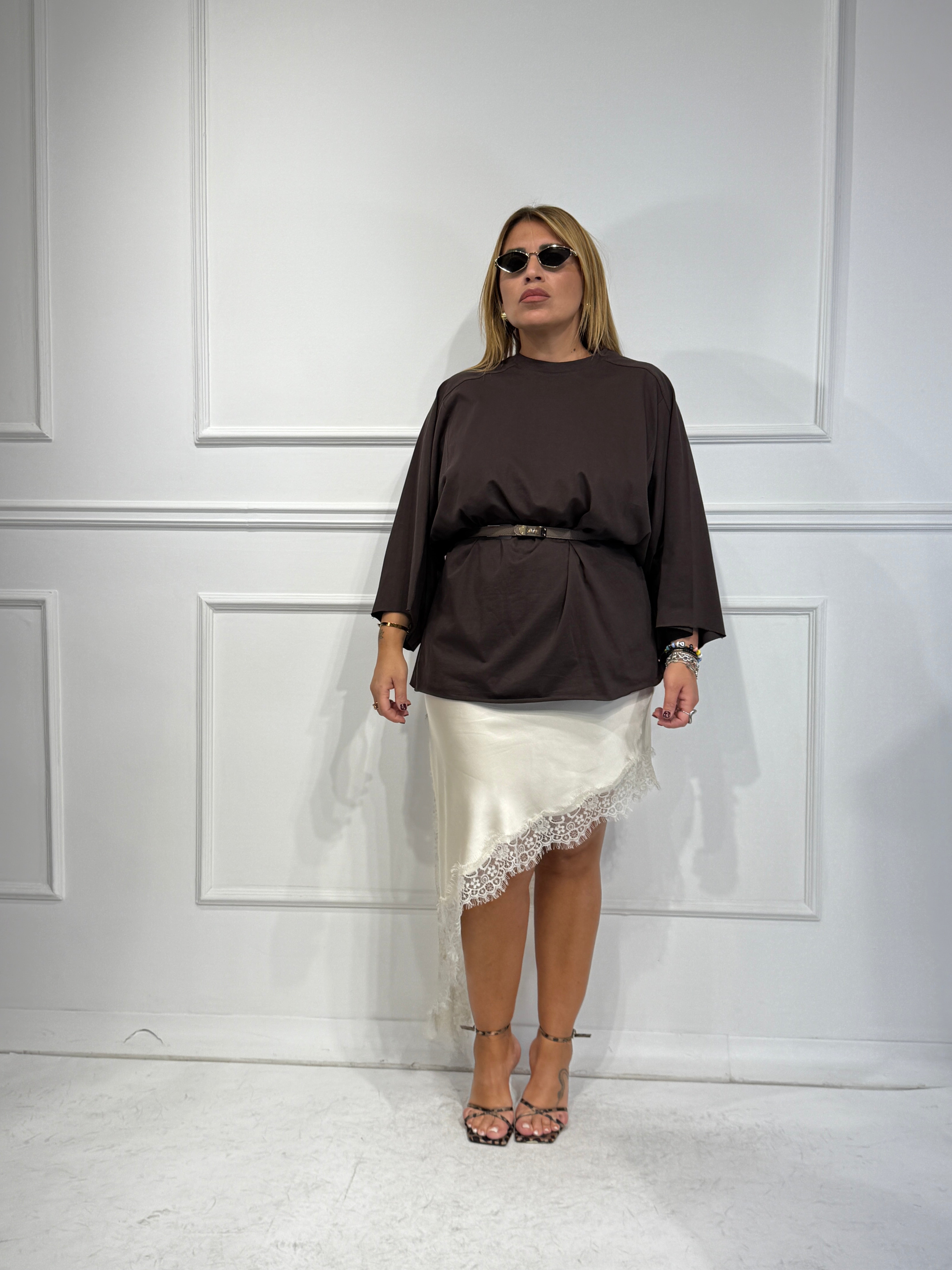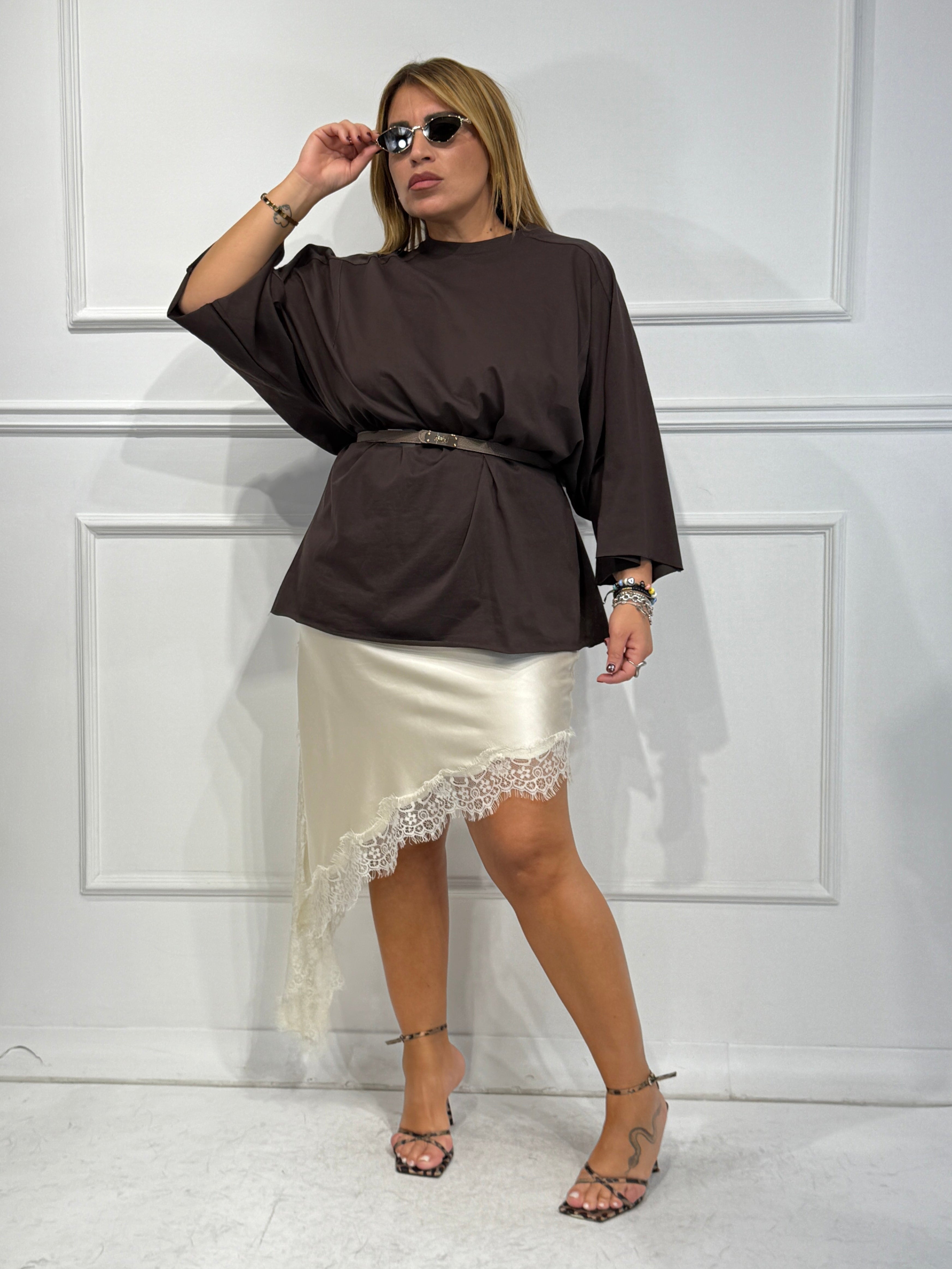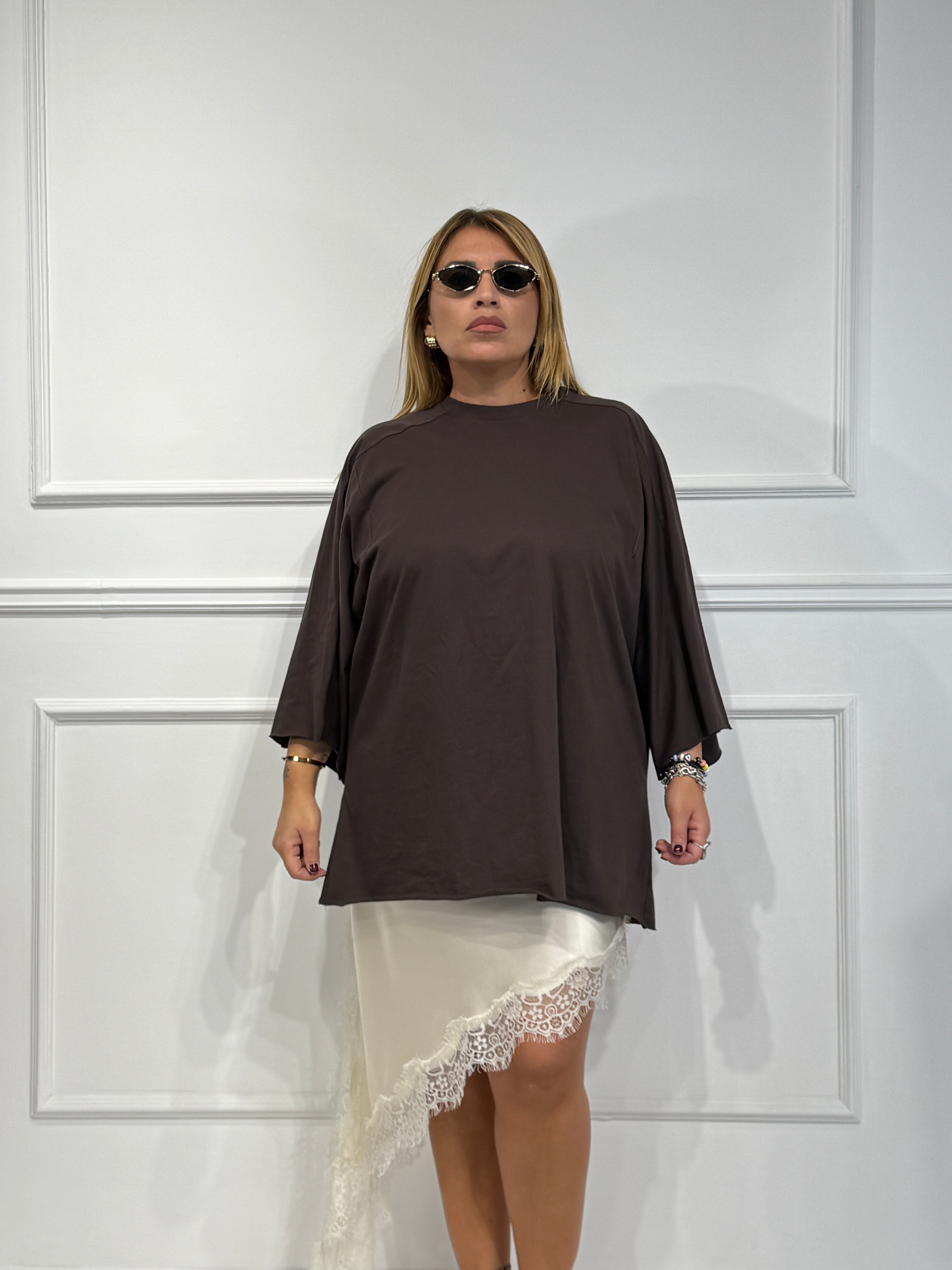 t-shirt maxi over size con manica a tre quarti in cotone taglia unica veste da una 42 ad una 50