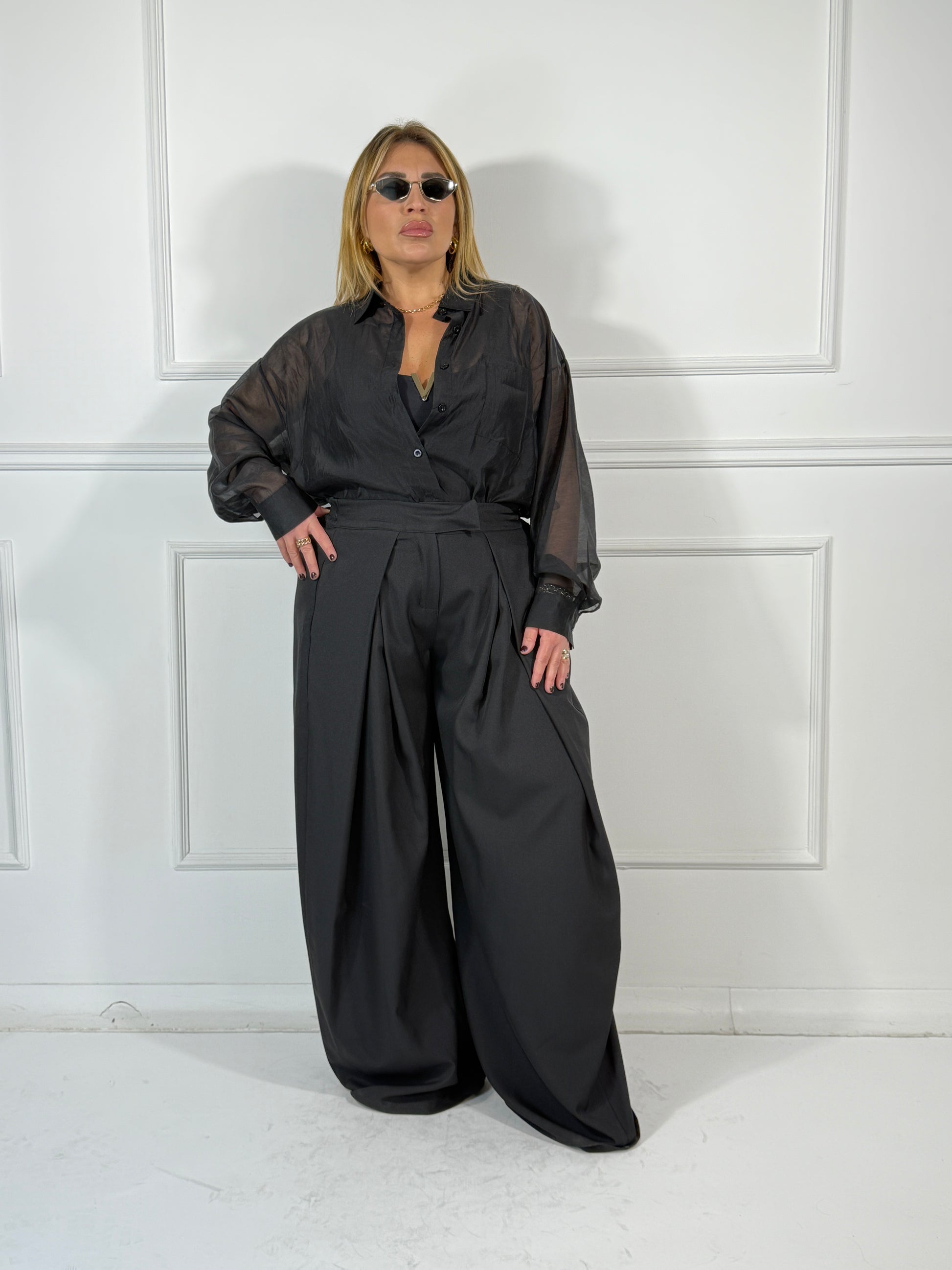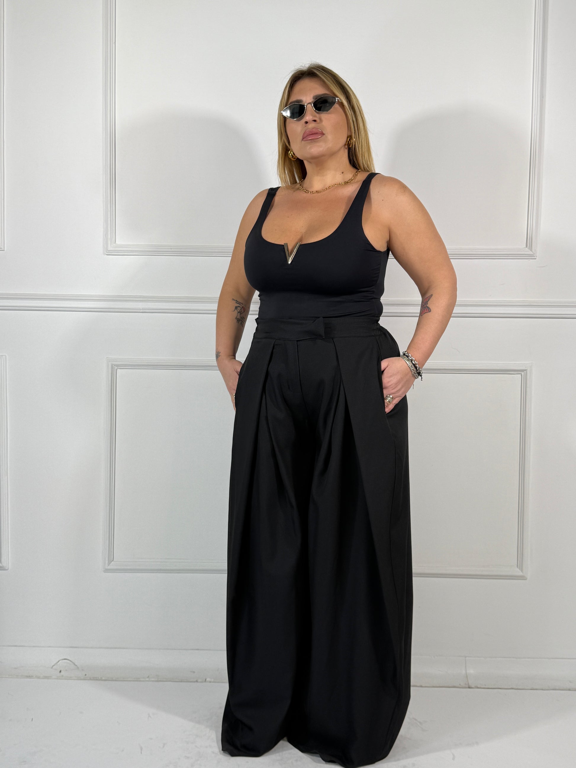 Pantalone con bustino semi elastico fondo ampio taglia unica veste fino a 50