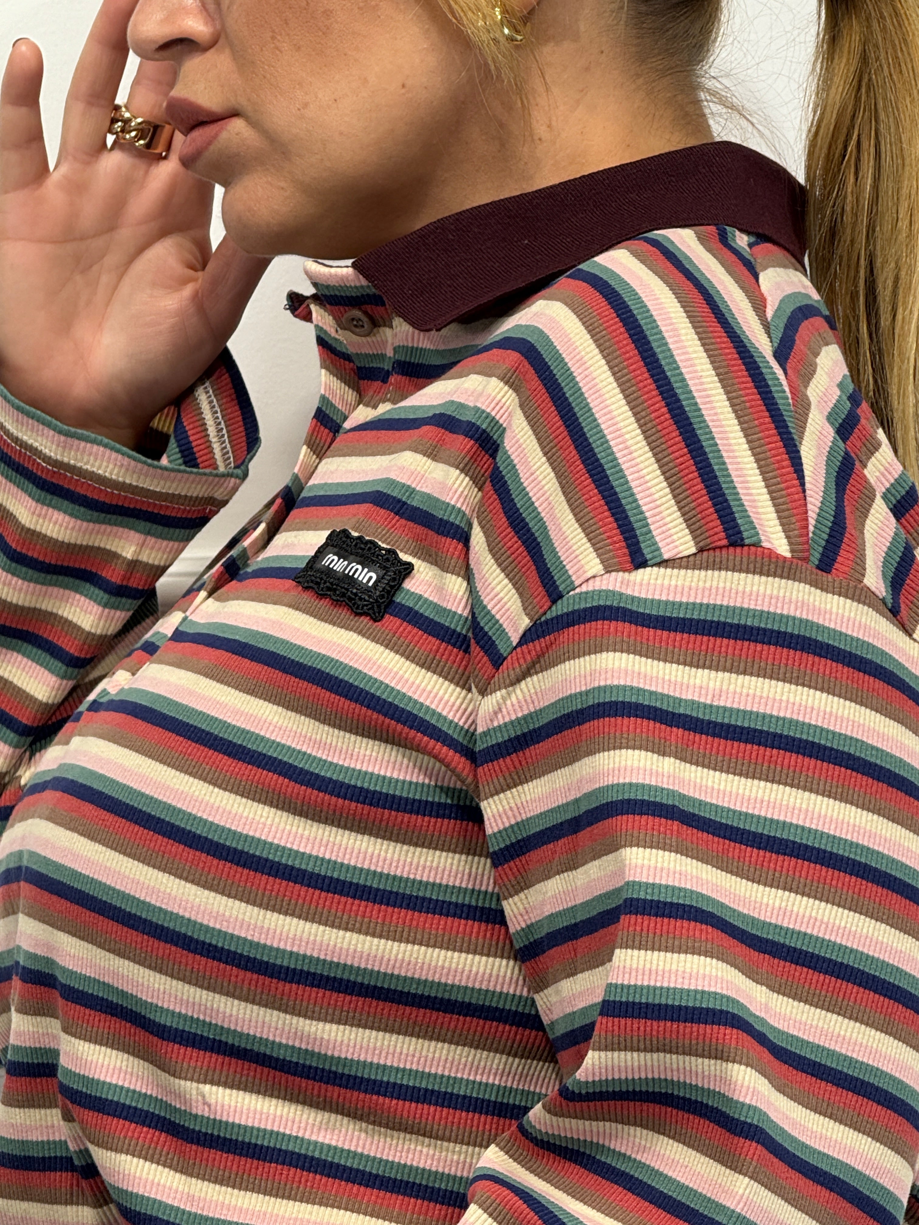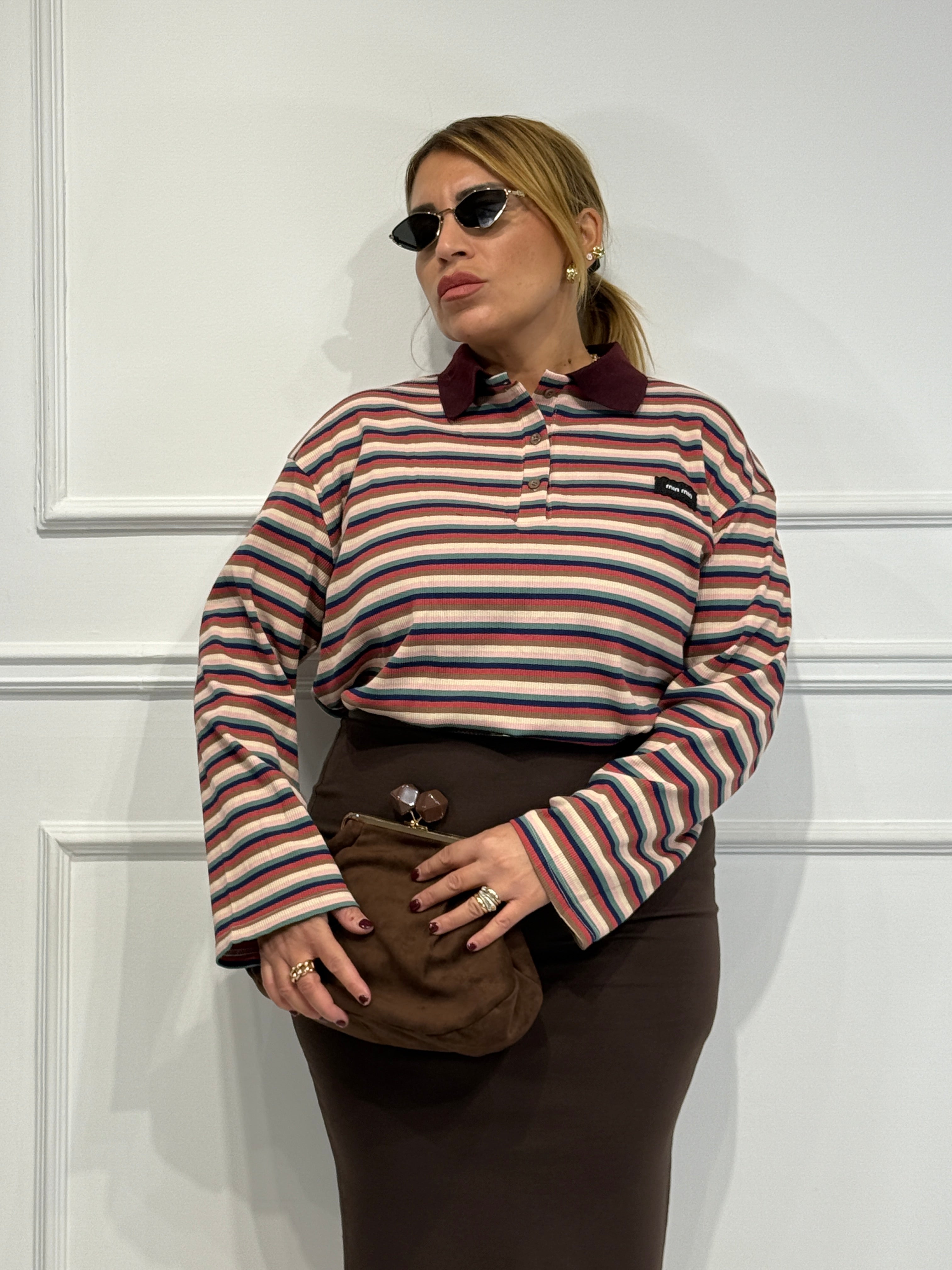 Polo a righe con colletto a contrasto taglia unica veste fino ad una 48.